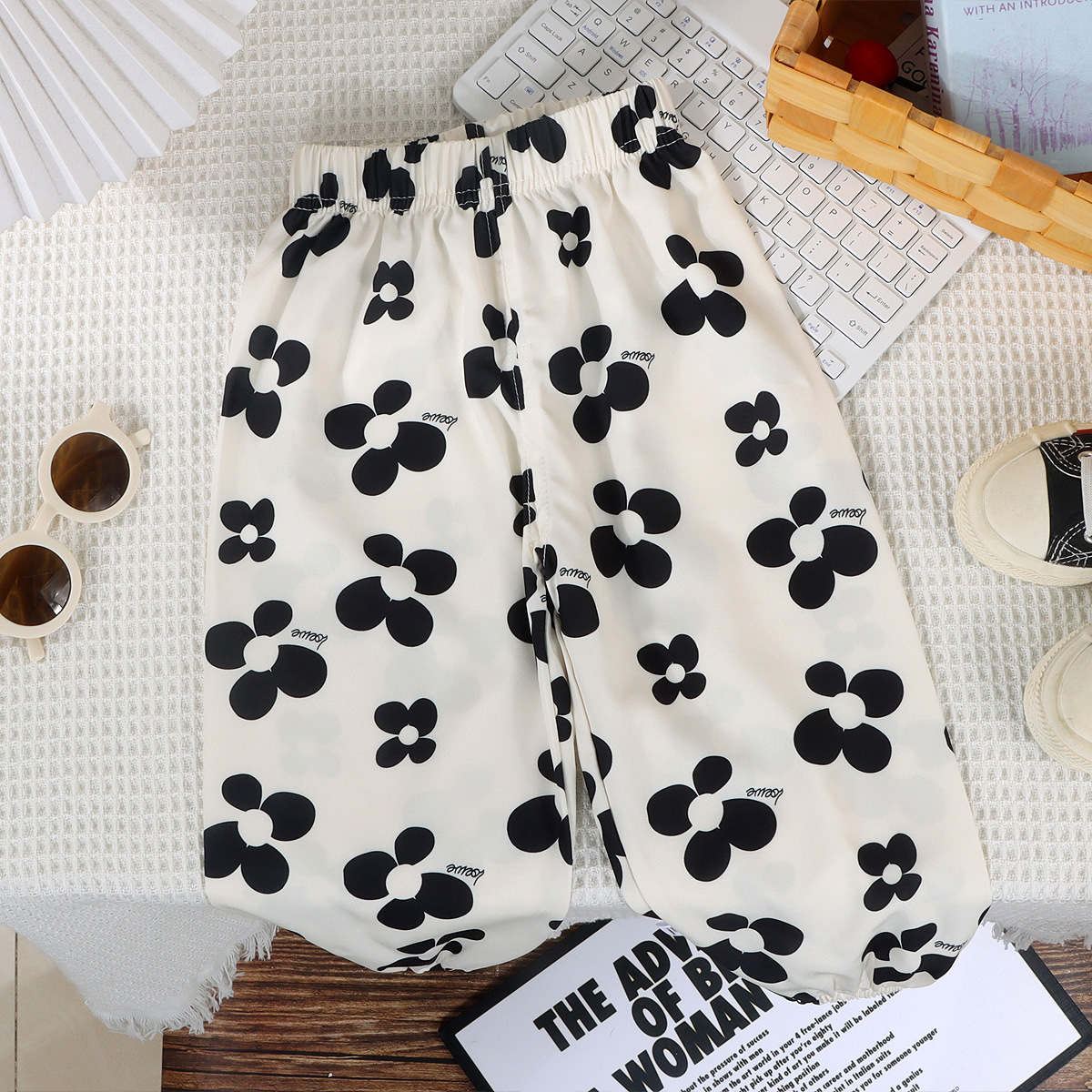 儿童夏季束脚防蚊裤宝宝工装裤女童宽松居家裤韩版印花潮可外穿裤