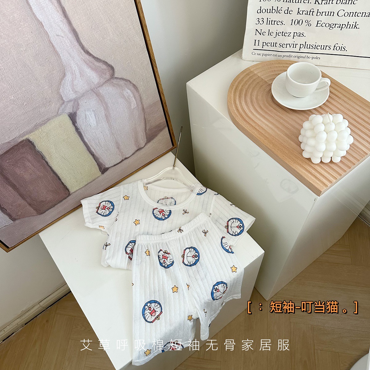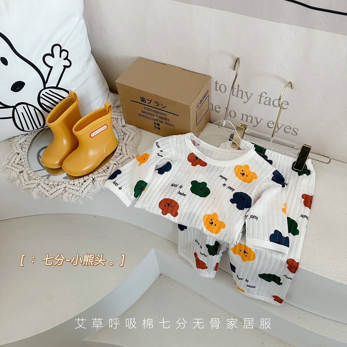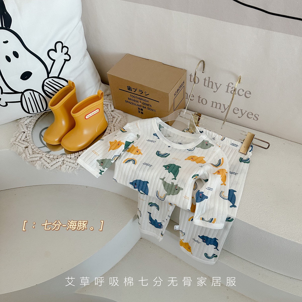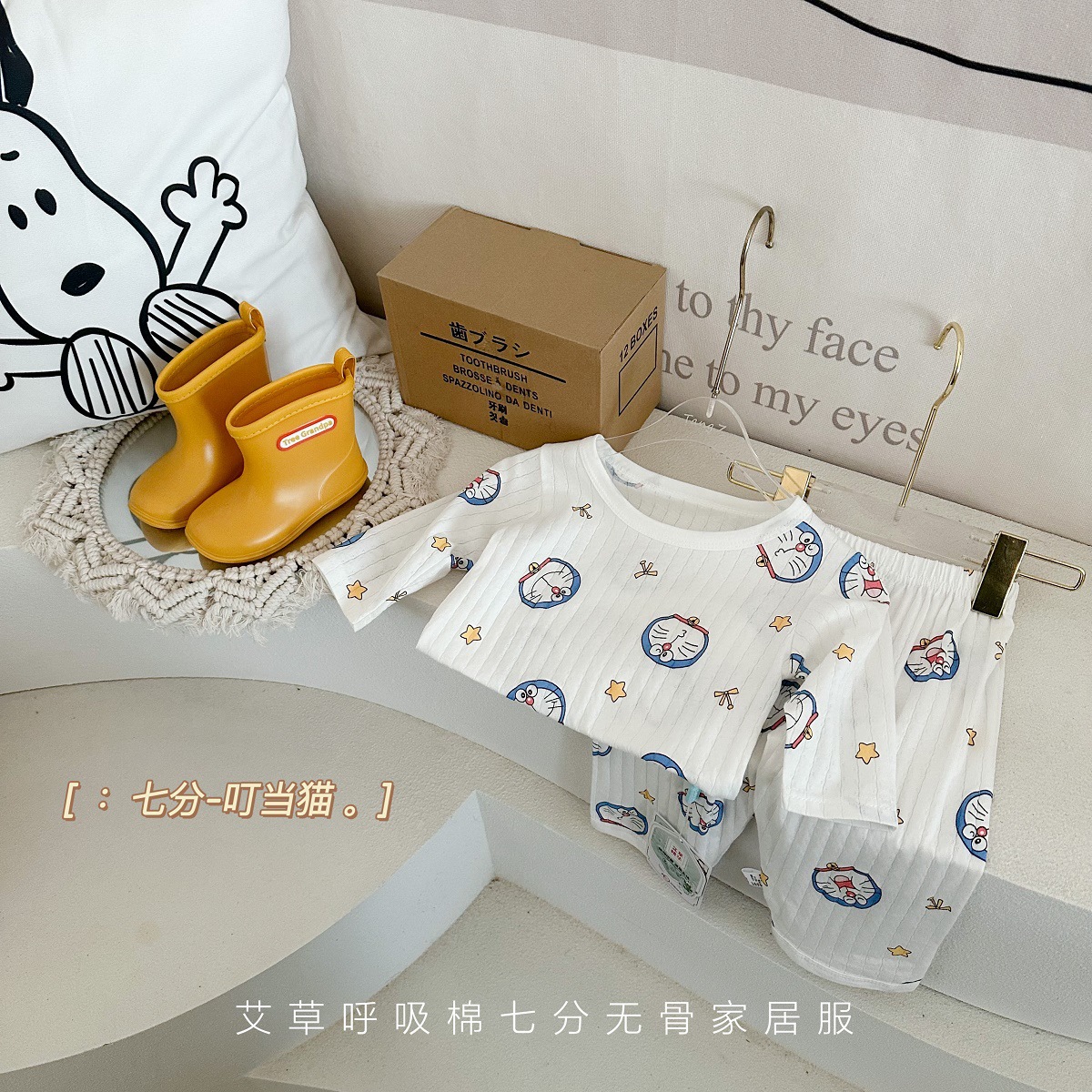 宝宝夏季纯棉无骨薄款儿童睡衣套装卡通短袖童家居服七分袖空调服