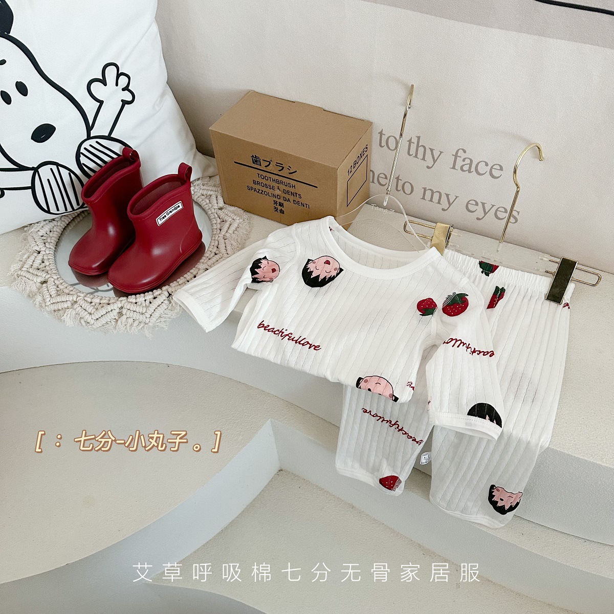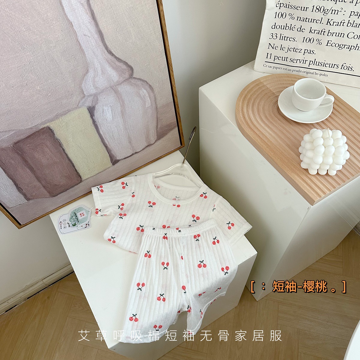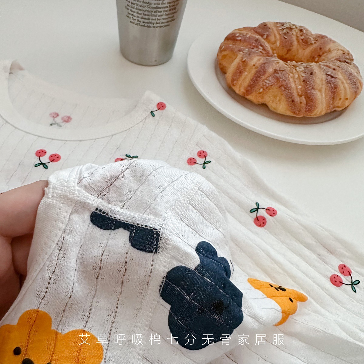 宝宝夏季纯棉无骨薄款儿童睡衣套装卡通短袖童家居服七分袖空调服