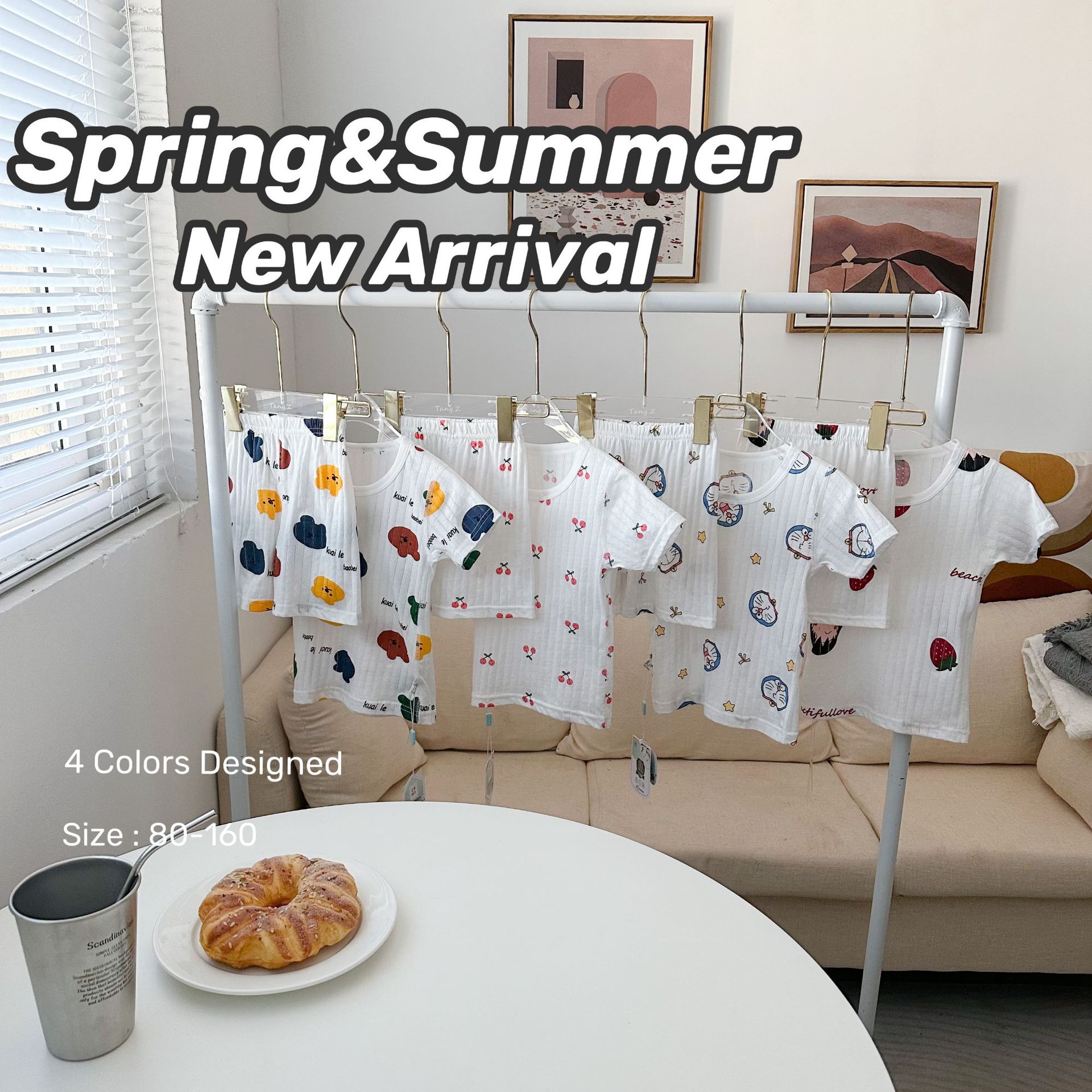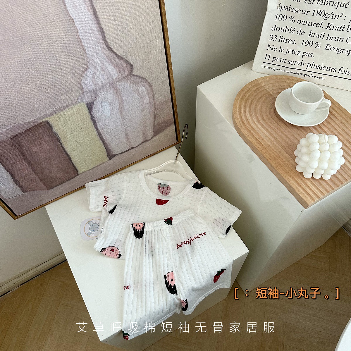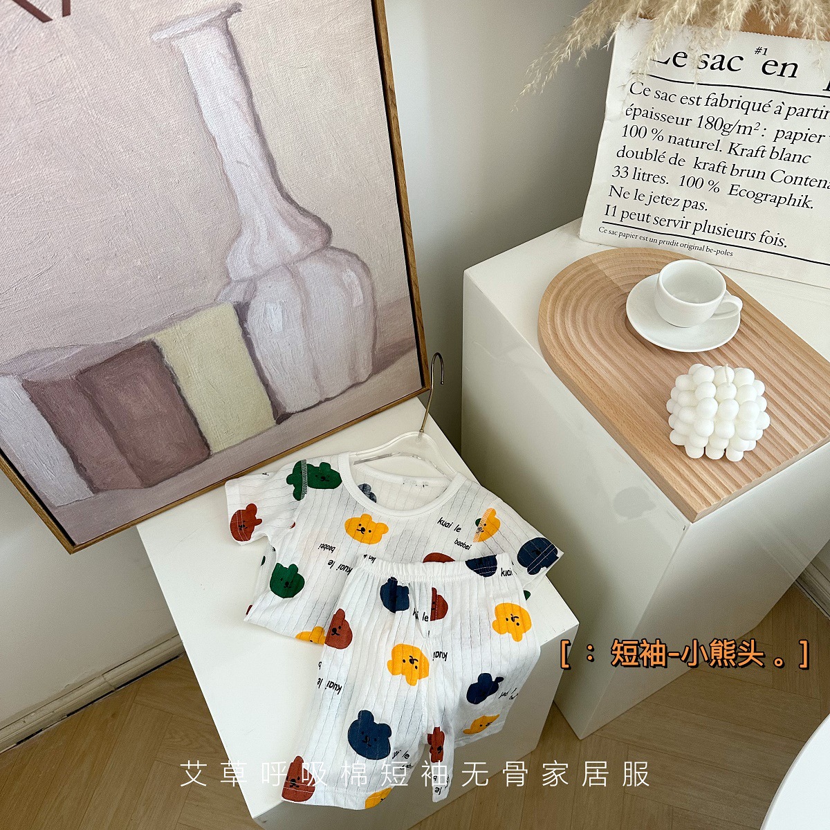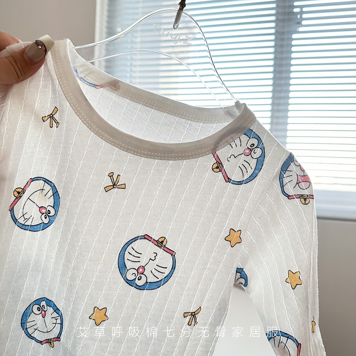 宝宝夏季纯棉无骨薄款儿童睡衣套装卡通短袖童家居服七分袖空调服