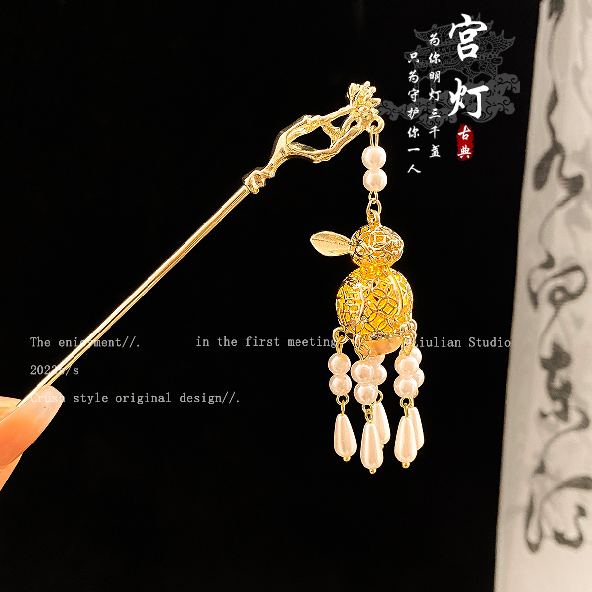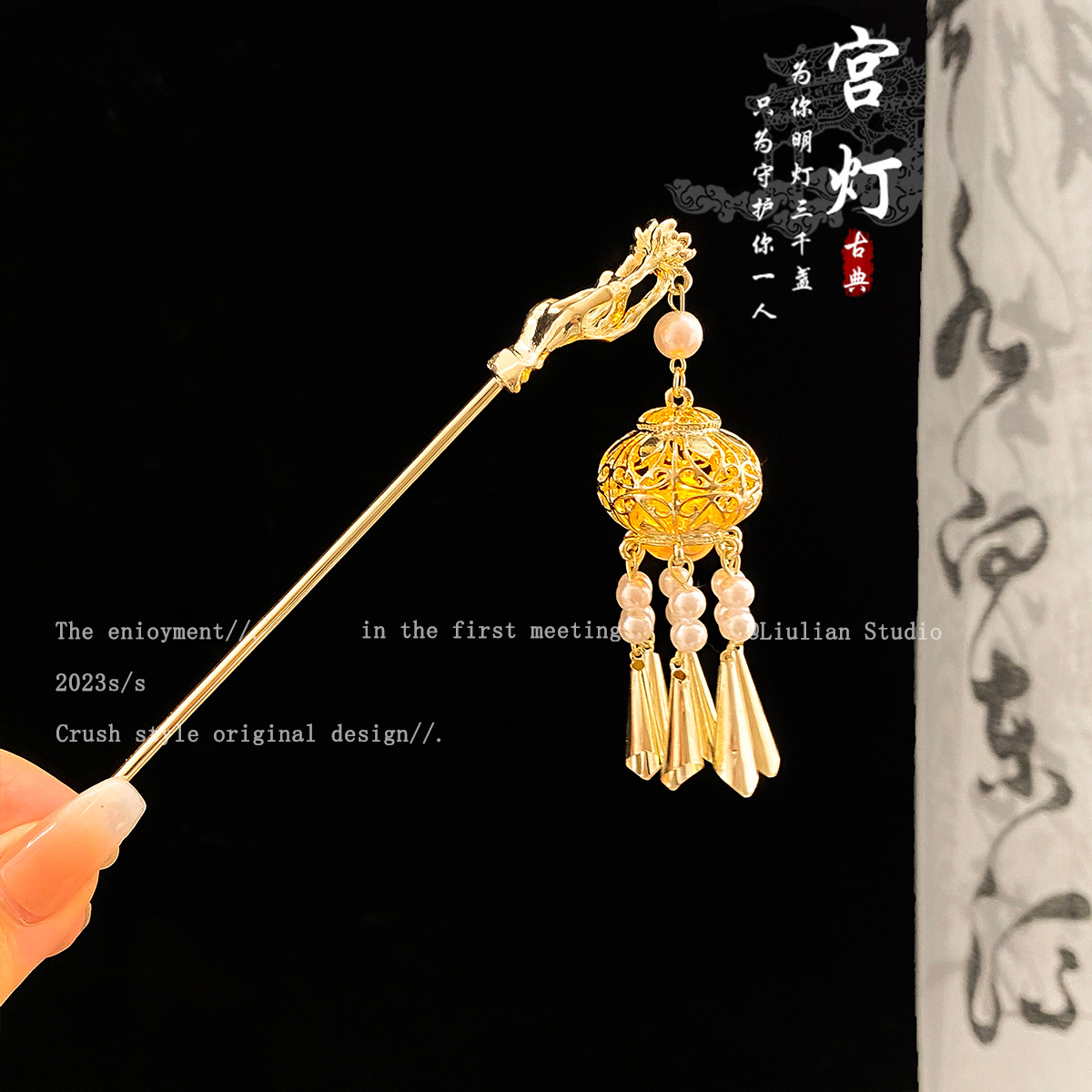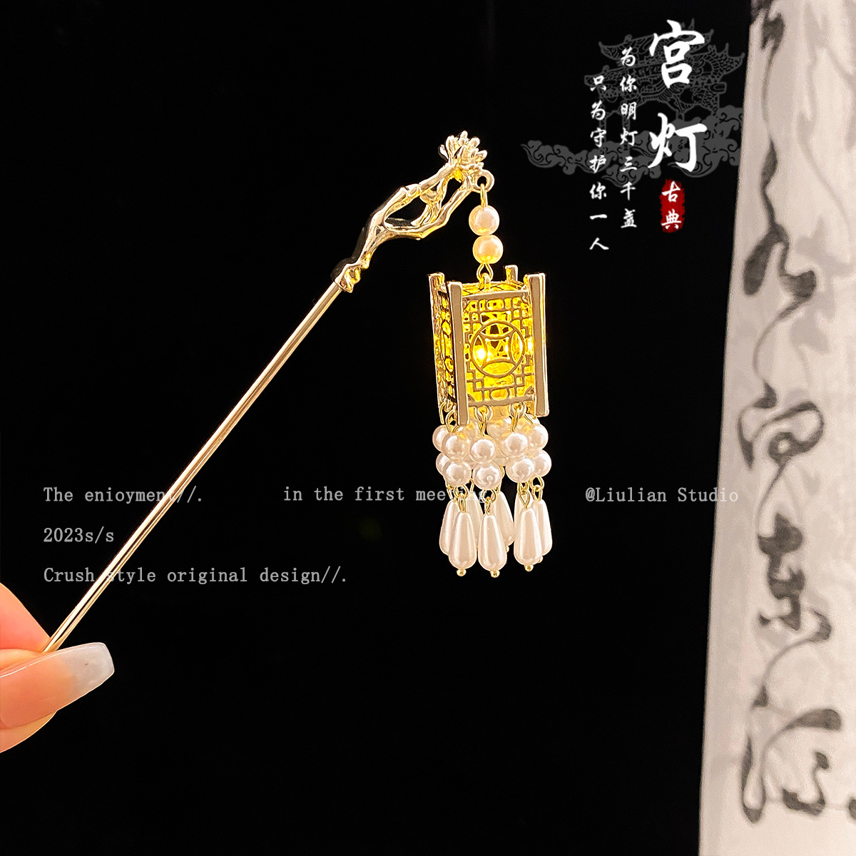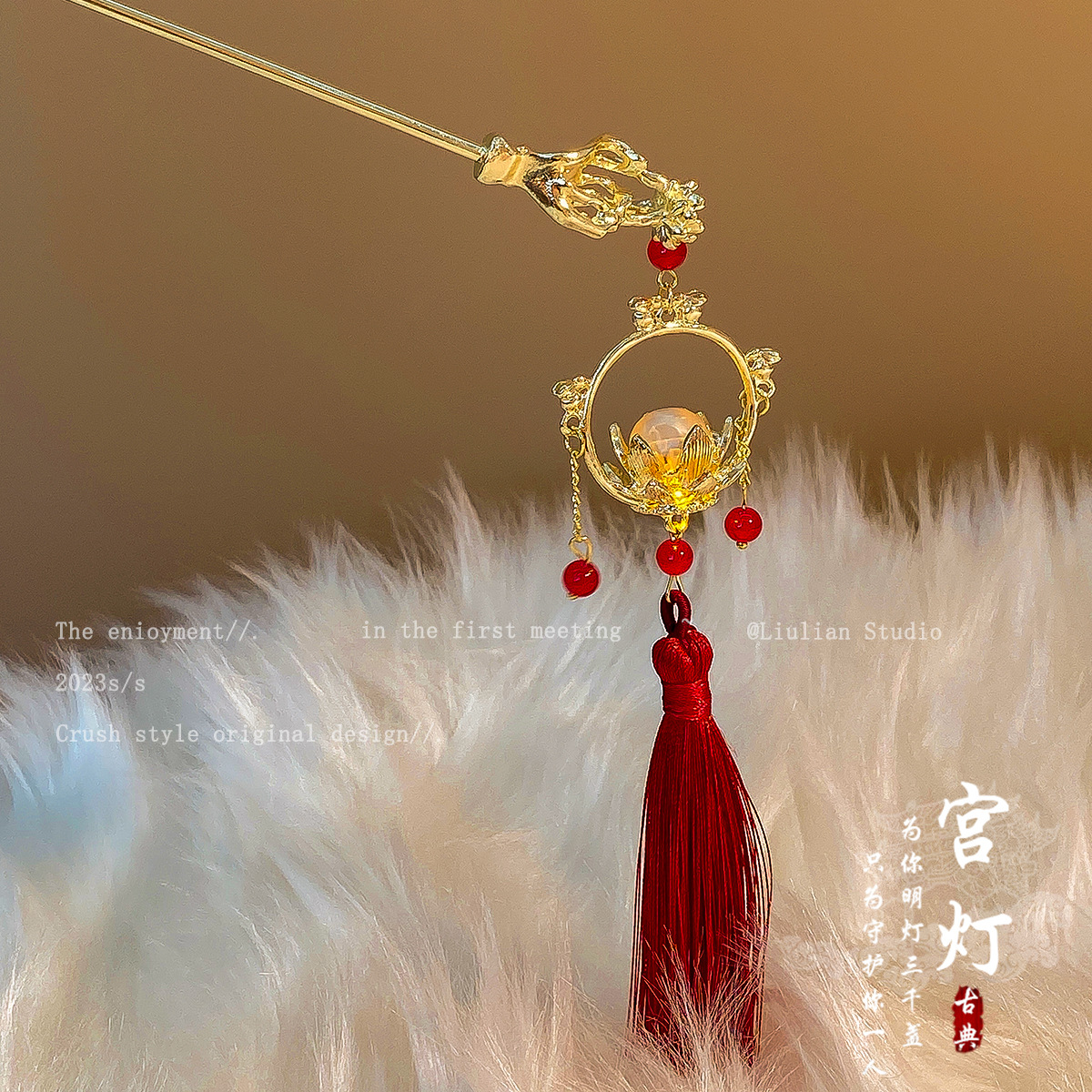 会发光的莲花宫灯发簪女古风汉服旗袍步摇荷花发钗子超仙盘发簪子