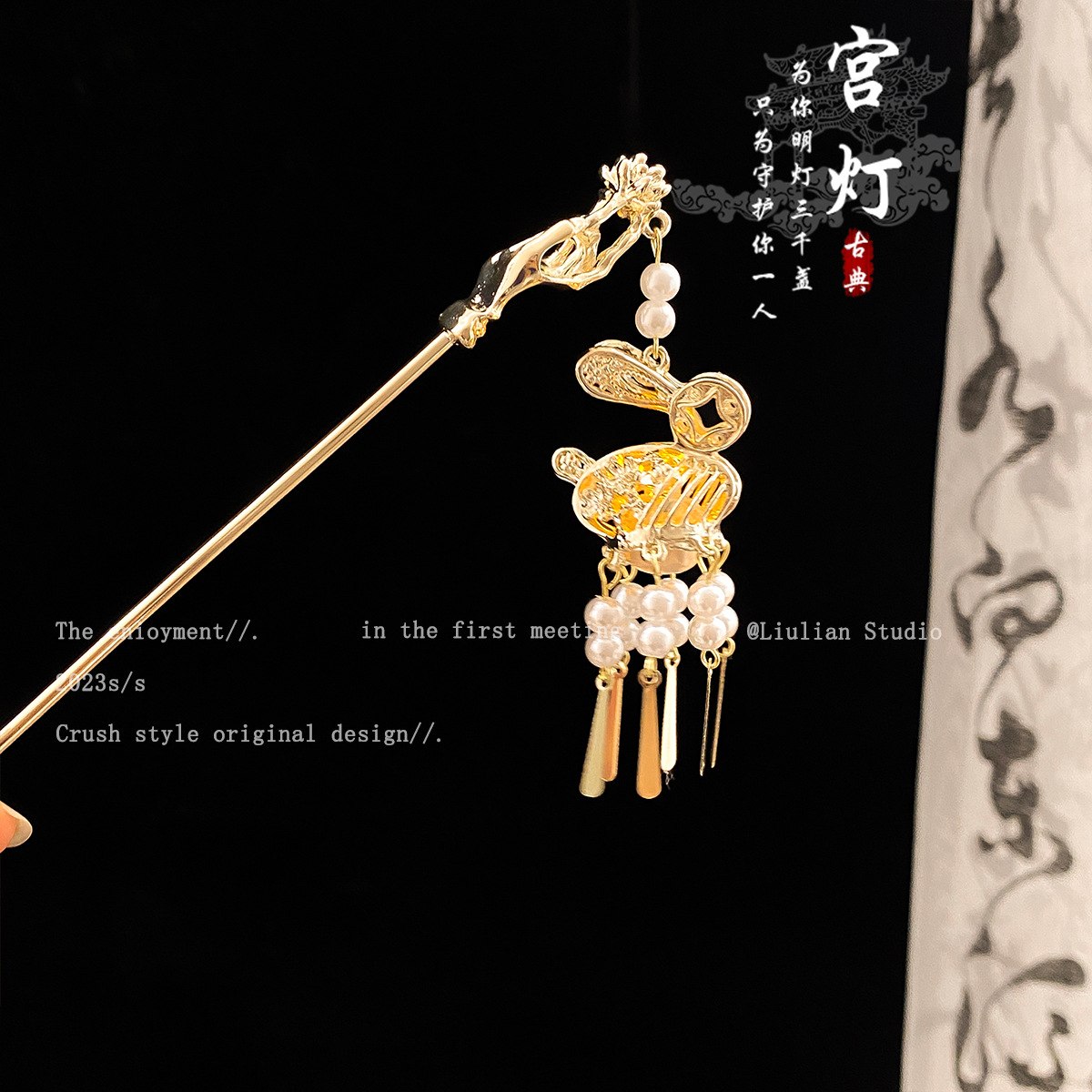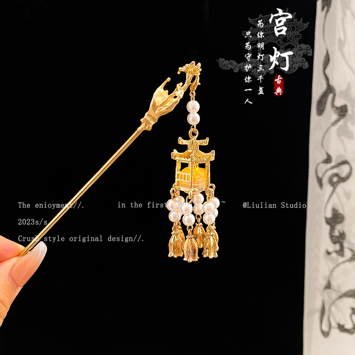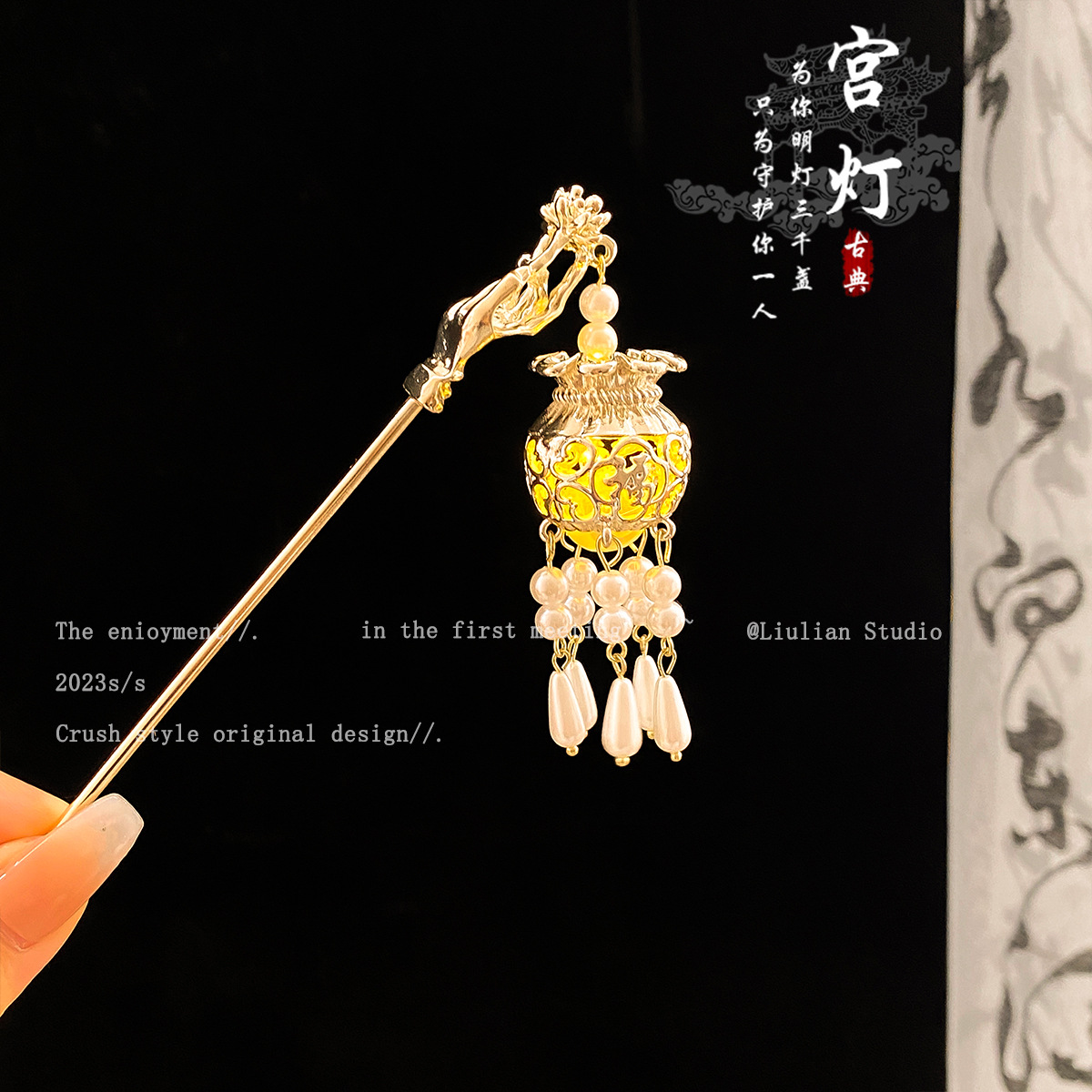 会发光的莲花宫灯发簪女古风汉服旗袍步摇荷花发钗子超仙盘发簪子