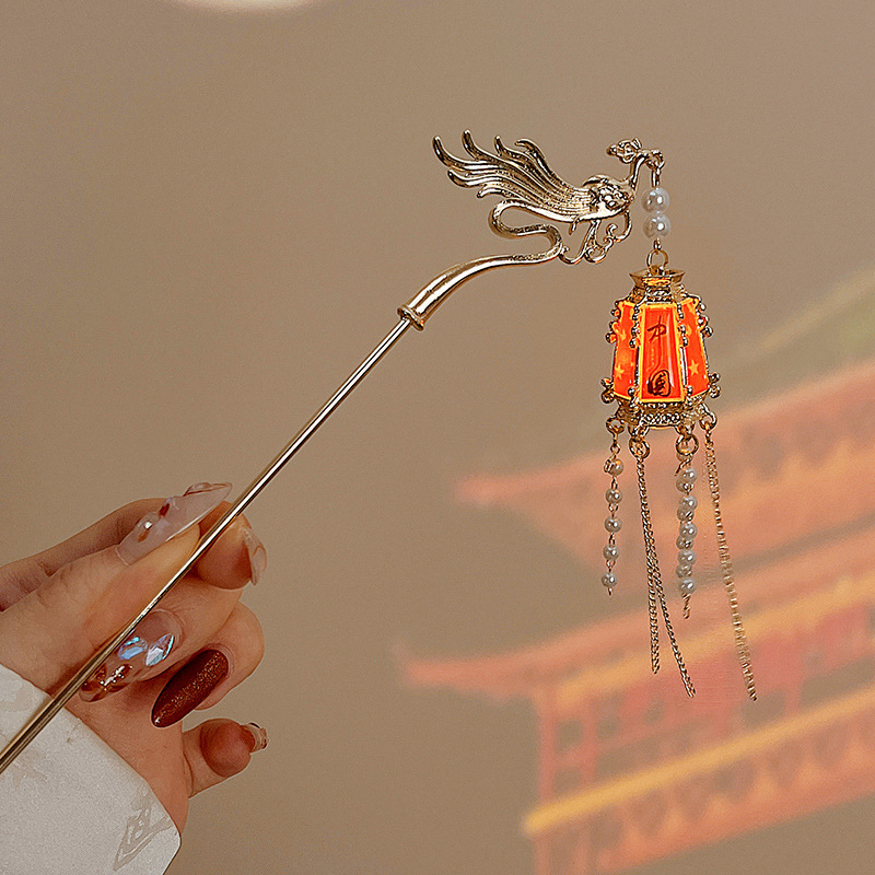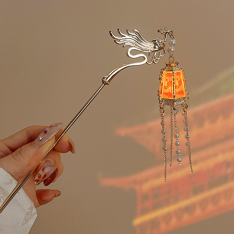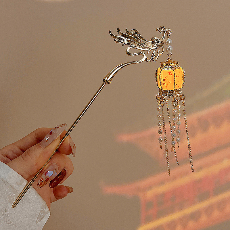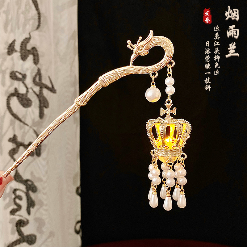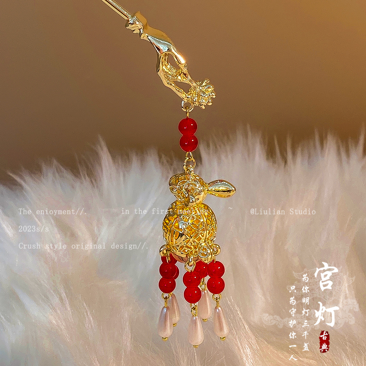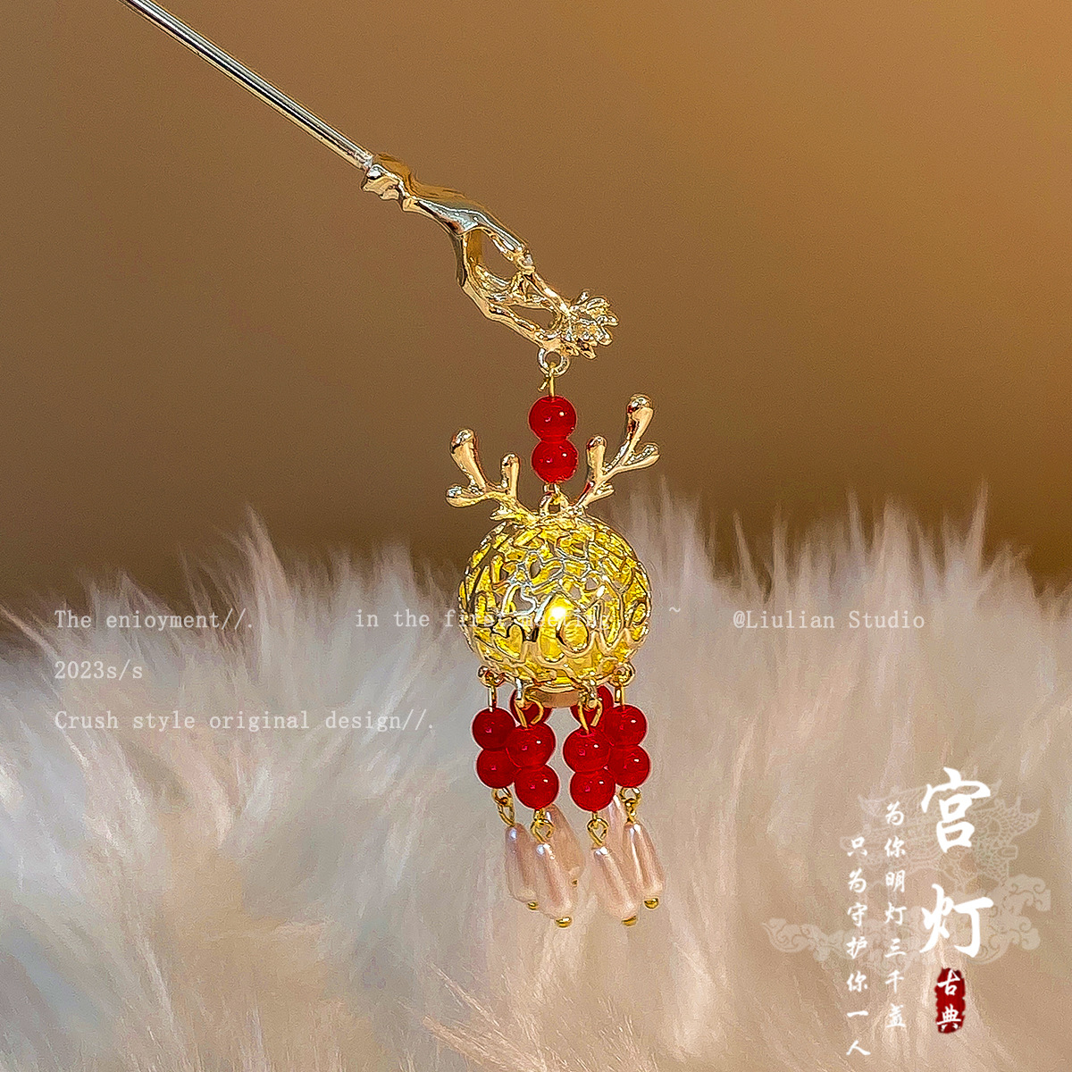 会发光的莲花宫灯发簪女古风汉服旗袍步摇荷花发钗子超仙盘发簪子