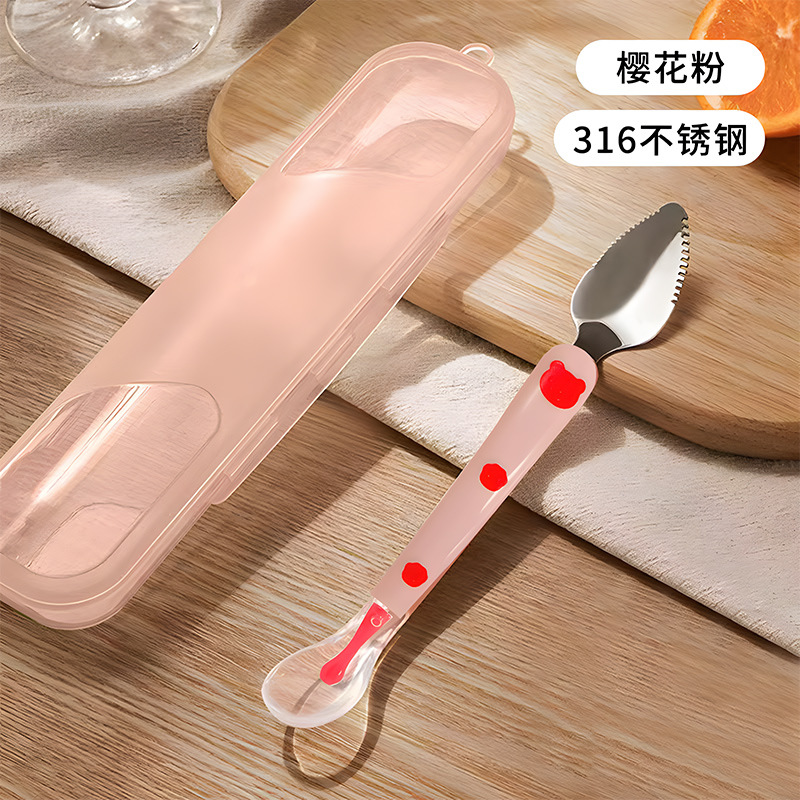 婴儿硅胶勺水果泥神器宝宝辅食勺 婴儿双头刮泥勺304不锈钢挖泥勺