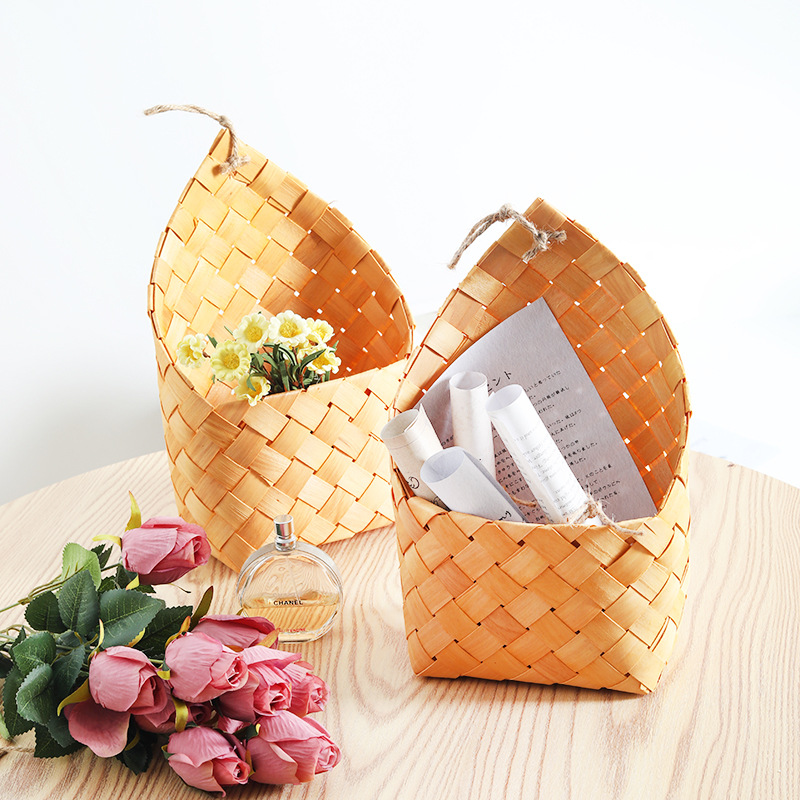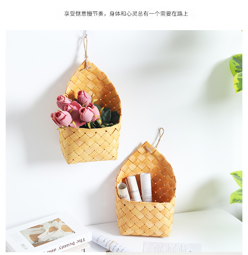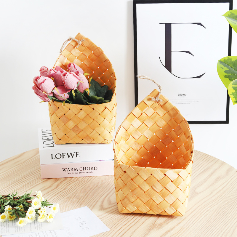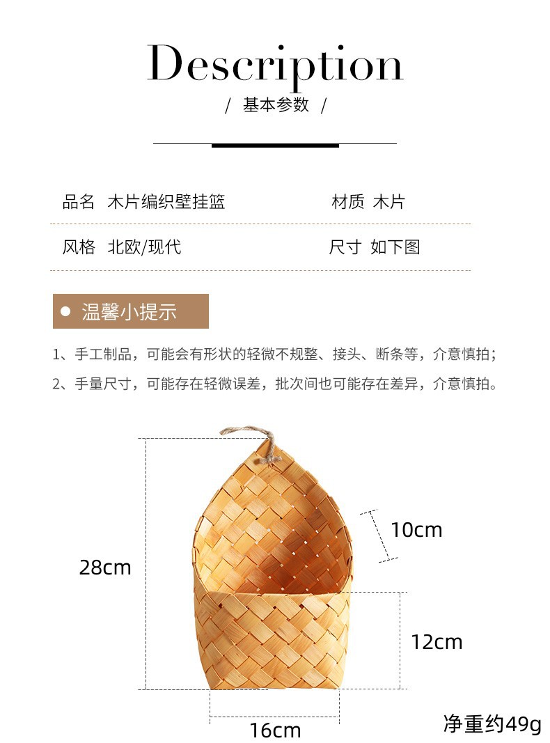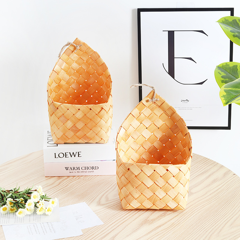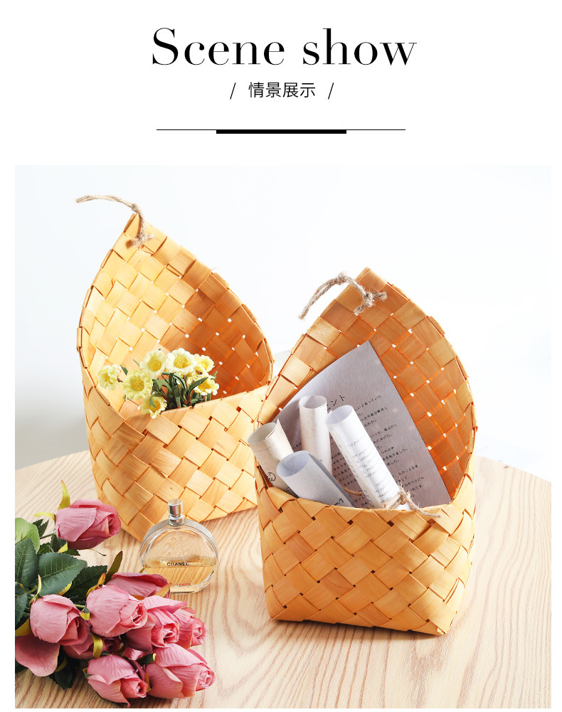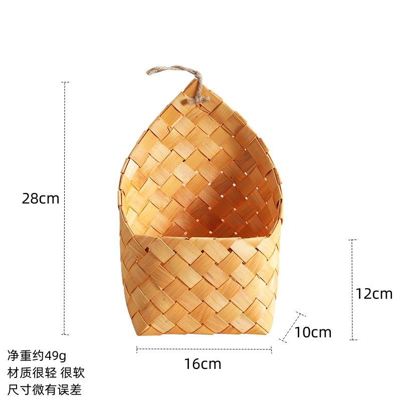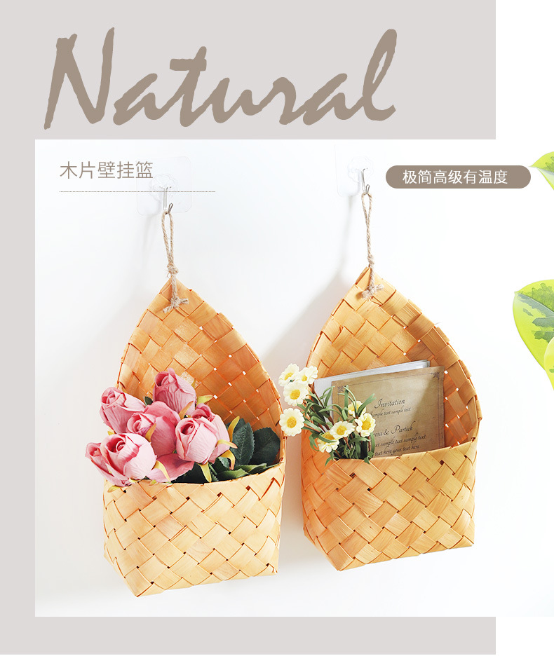 北欧田园编制木片壁挂花篮厨房家用收纳姜蒜厨具阳台壁挂收纳花篮