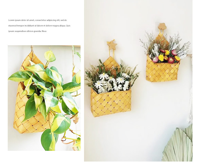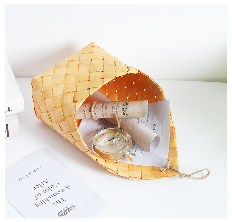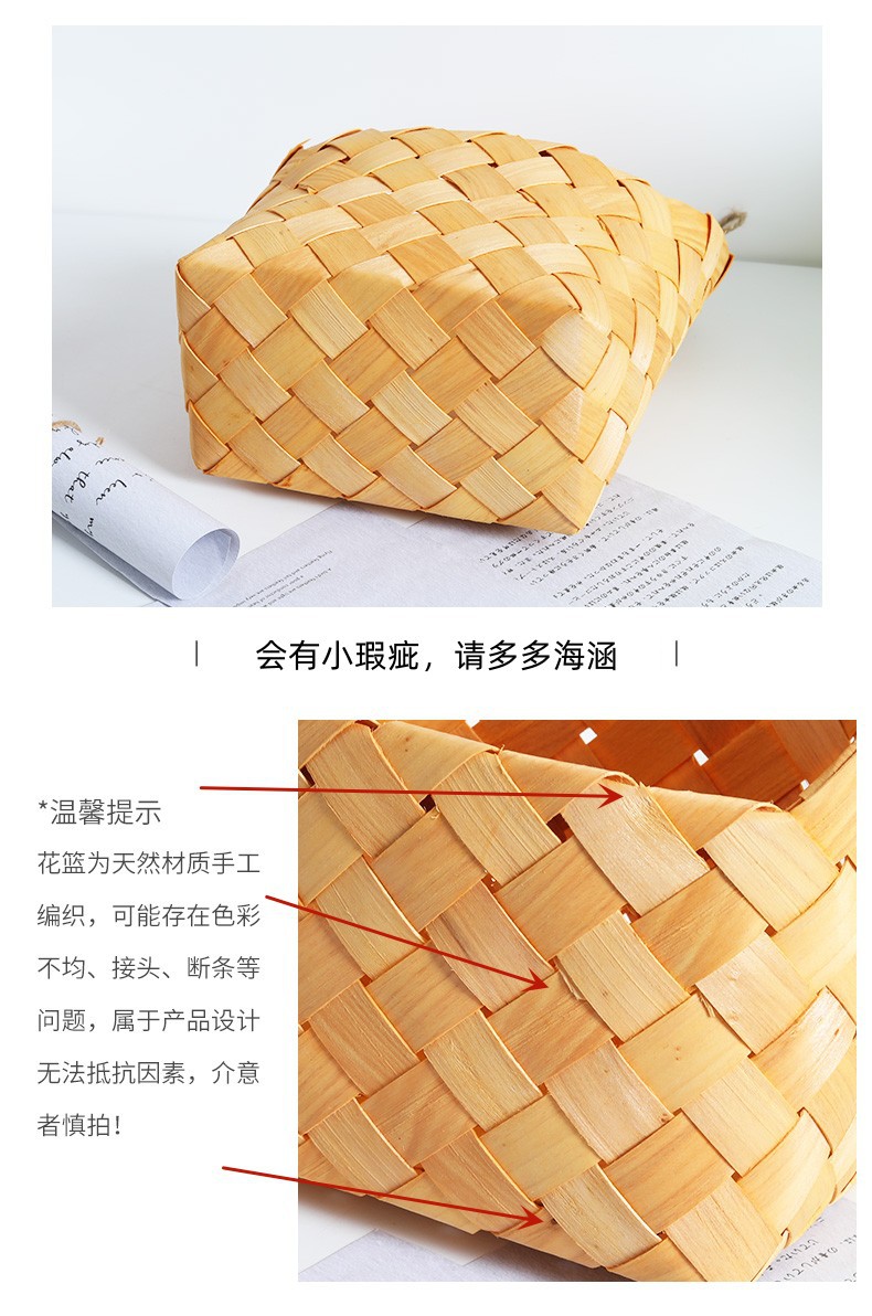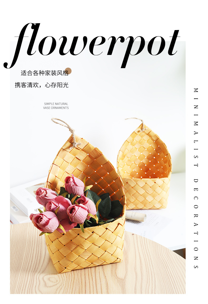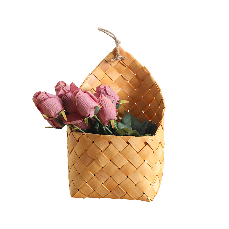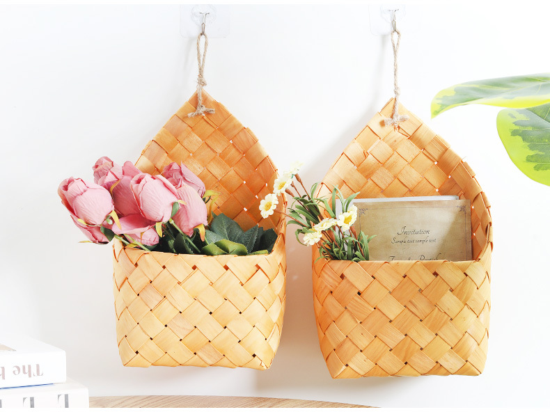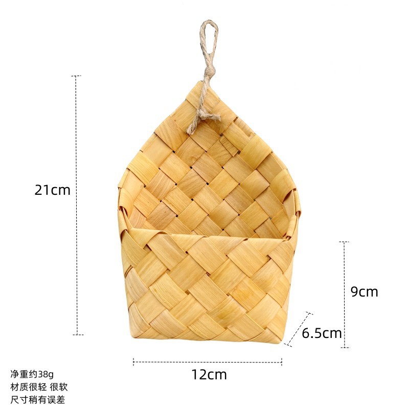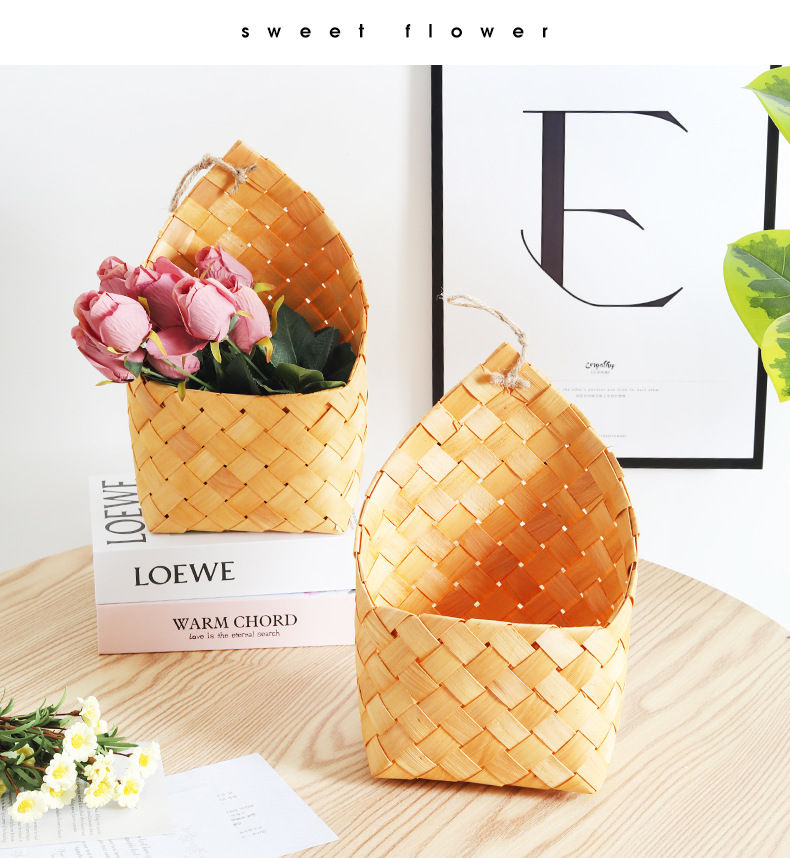 北欧田园编制木片壁挂花篮厨房家用收纳姜蒜厨具阳台壁挂收纳花篮