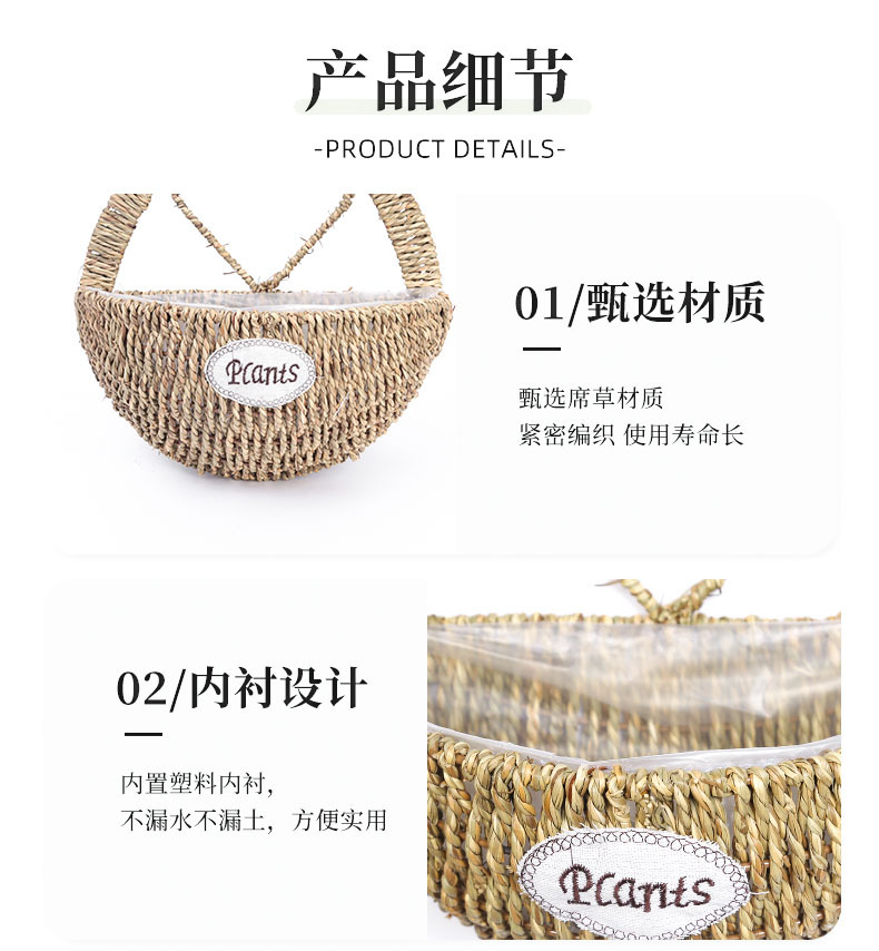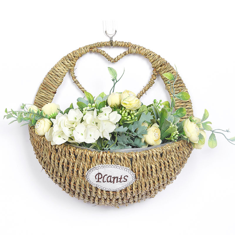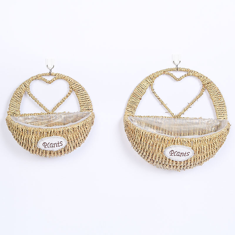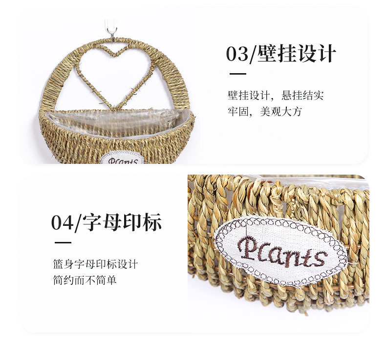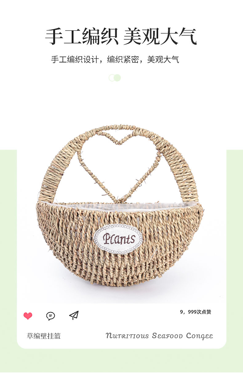 厂家草编壁挂花盆花篮藤编绿植多肉装饰收纳篮柳编草编挂墙花盆