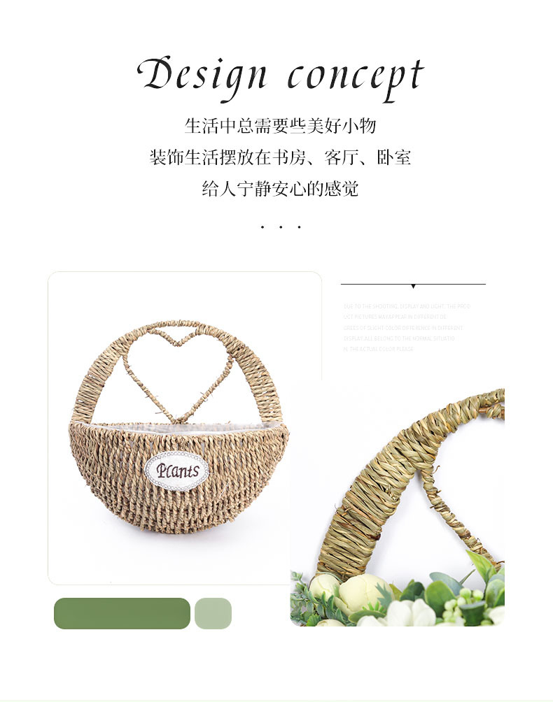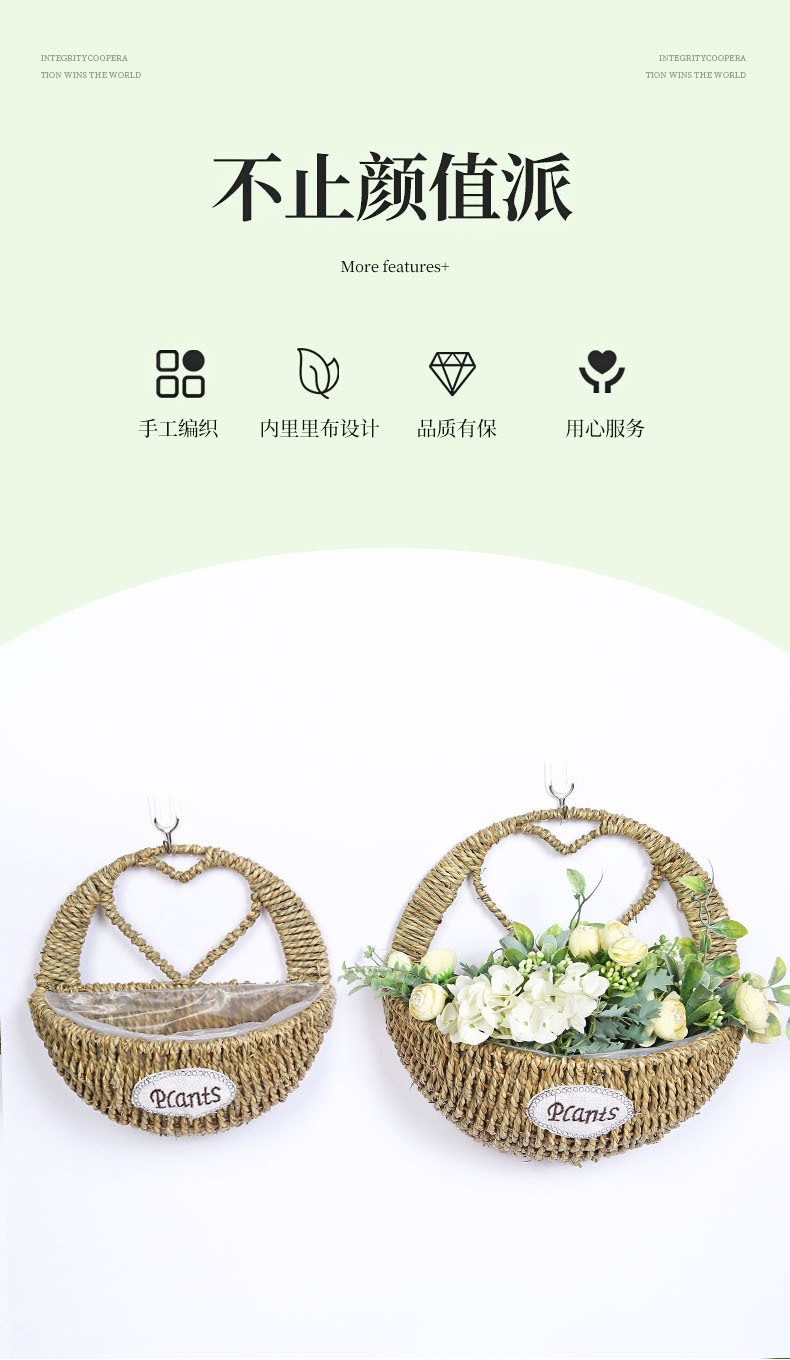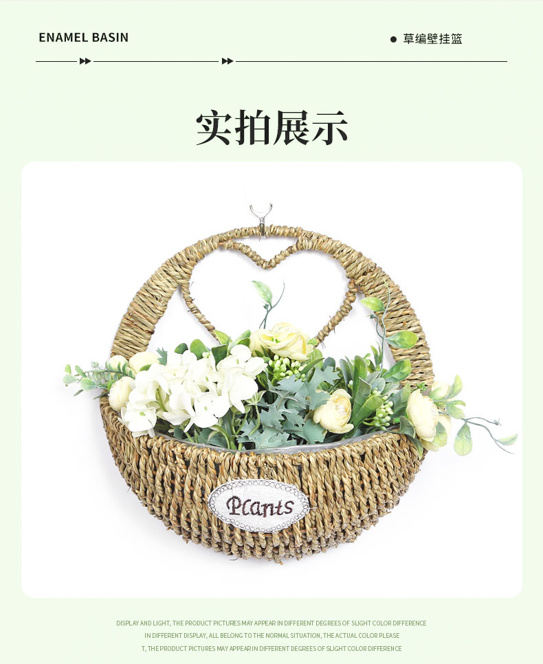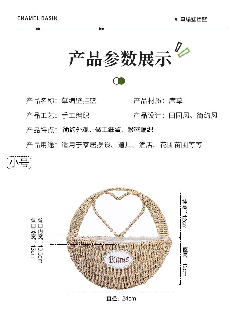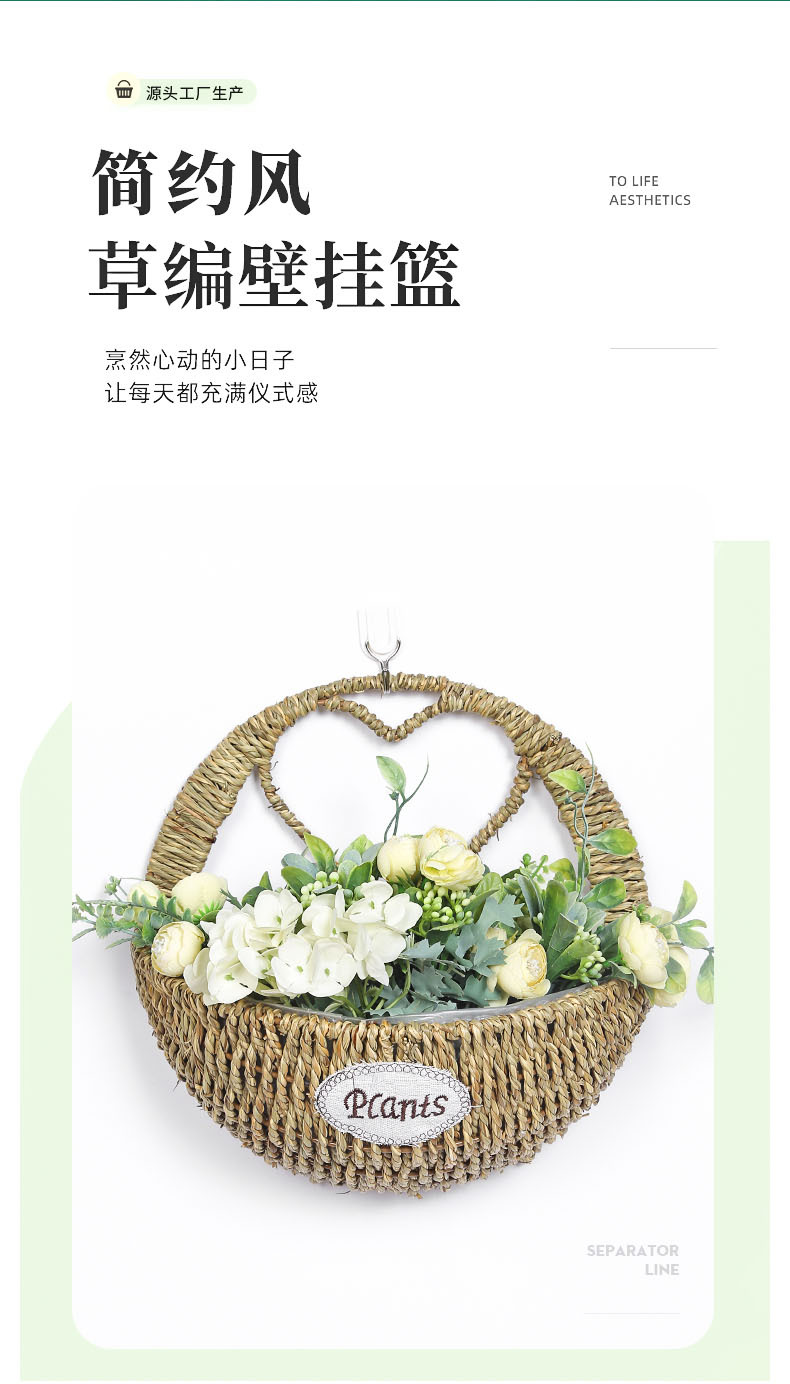 厂家草编壁挂花盆花篮藤编绿植多肉装饰收纳篮柳编草编挂墙花盆