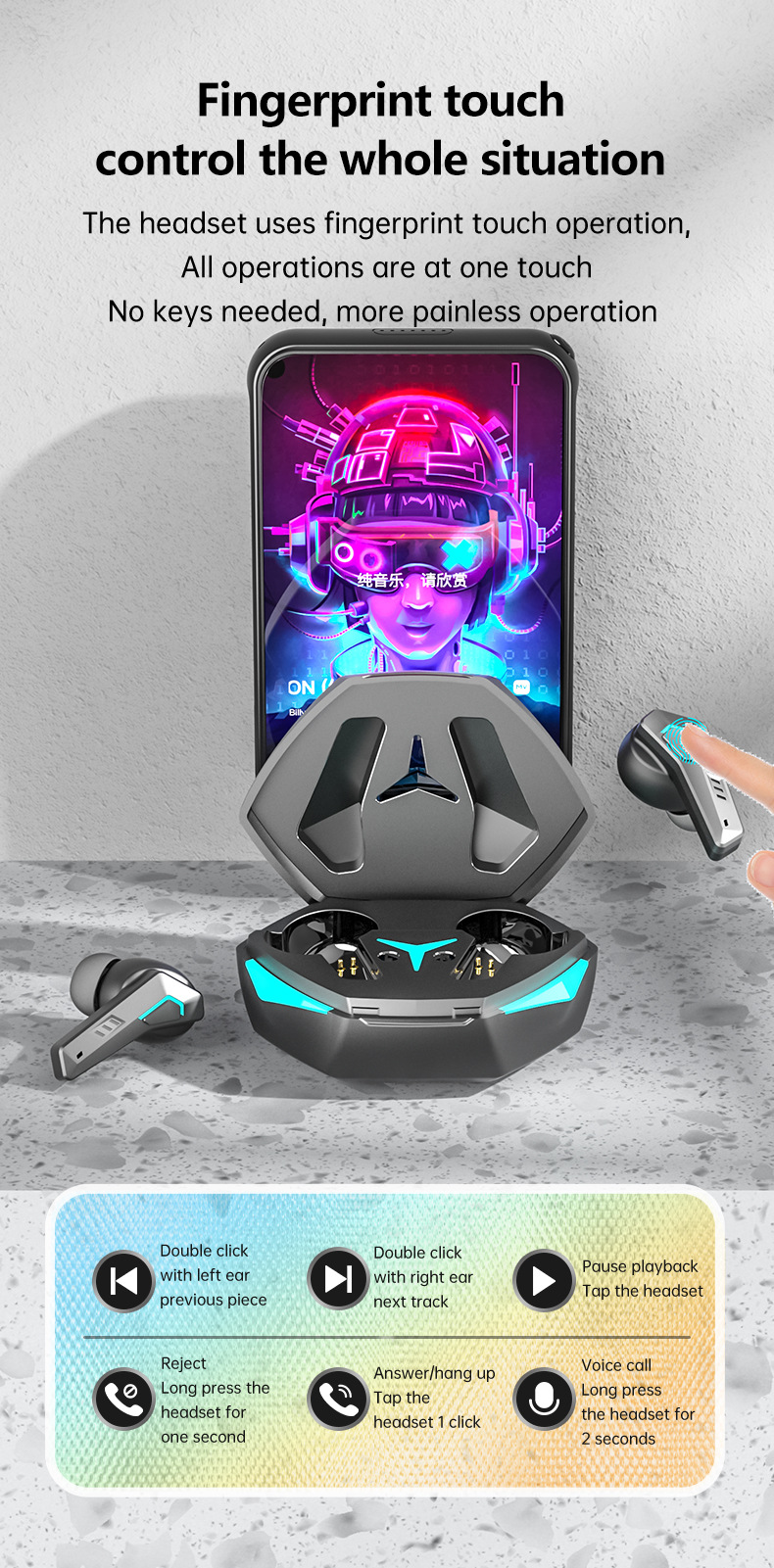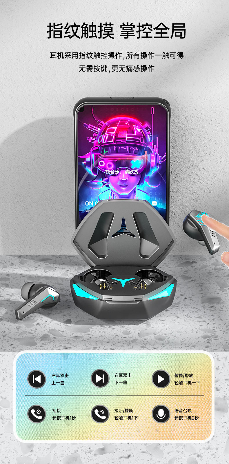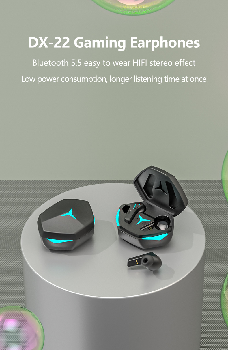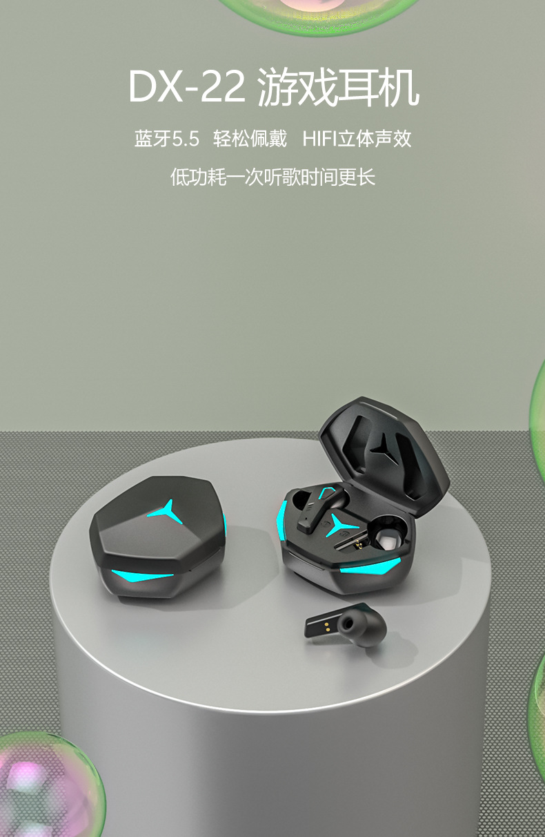 新款跨境私模DX-22蓝牙耳机无线双耳入耳塞式游戏运动降噪无延迟