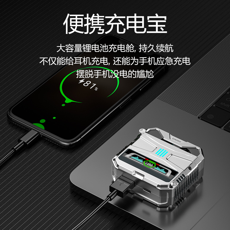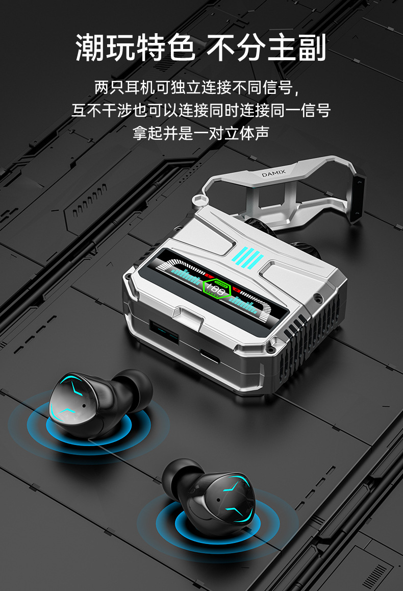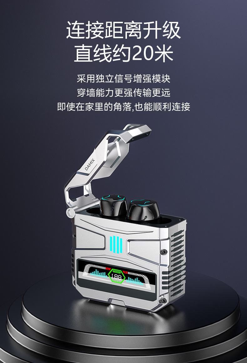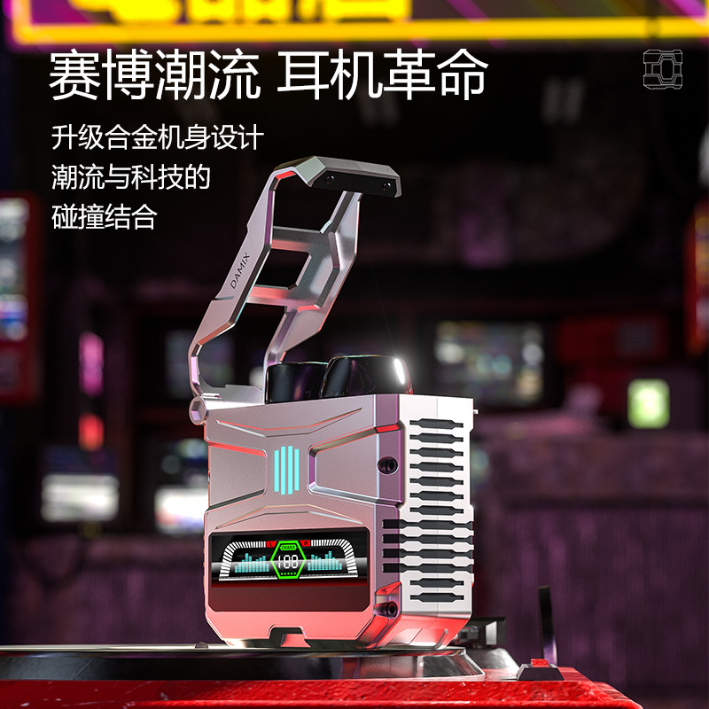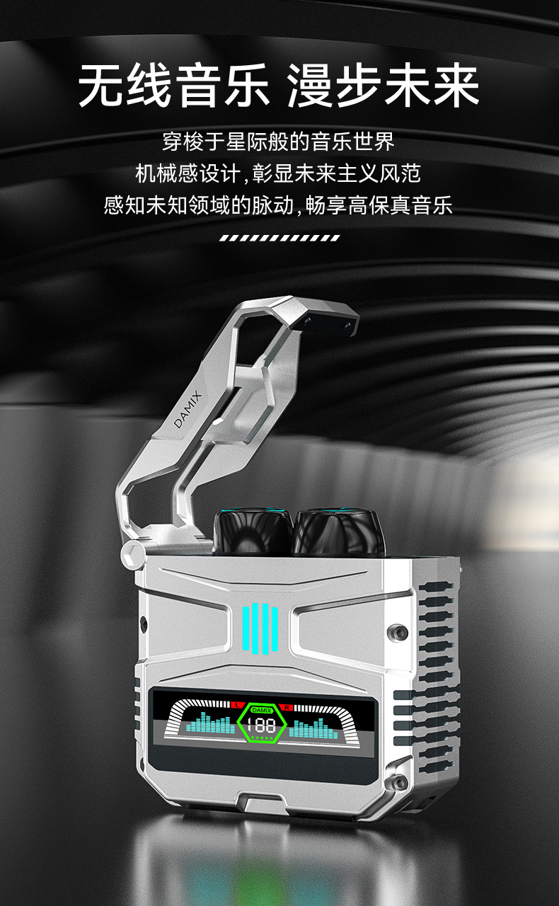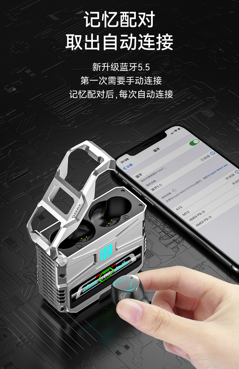 新款跨境私模GQ-13蓝牙耳机无线双耳金属机甲游戏运动降噪无延迟