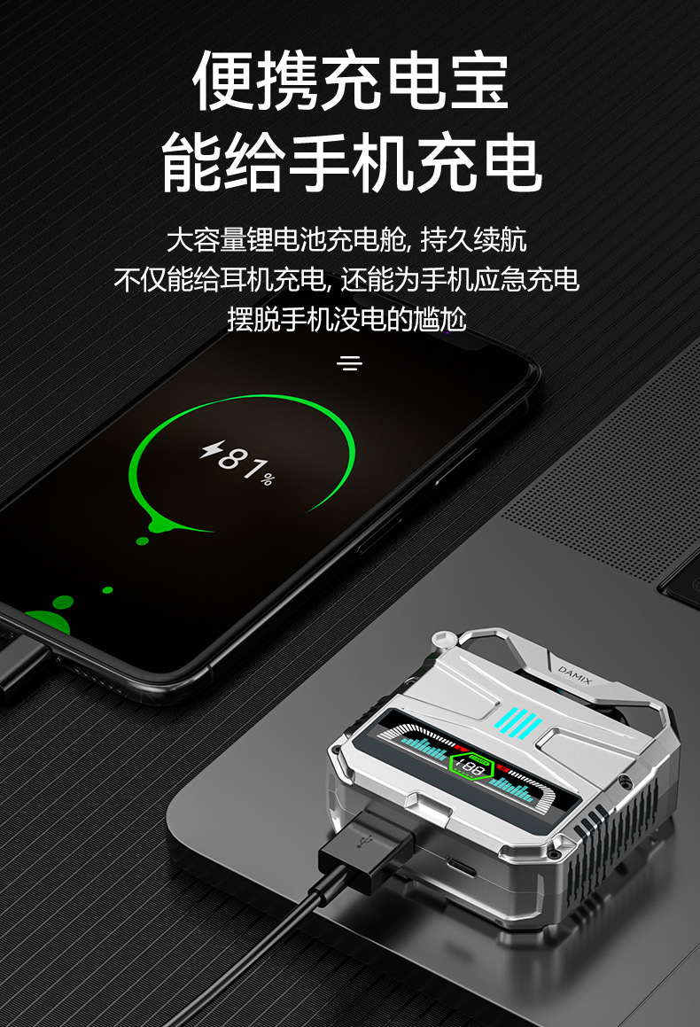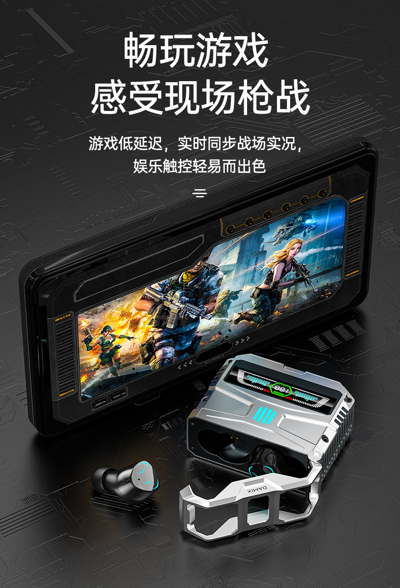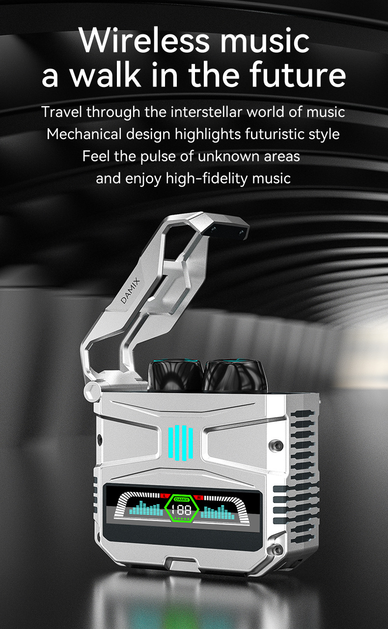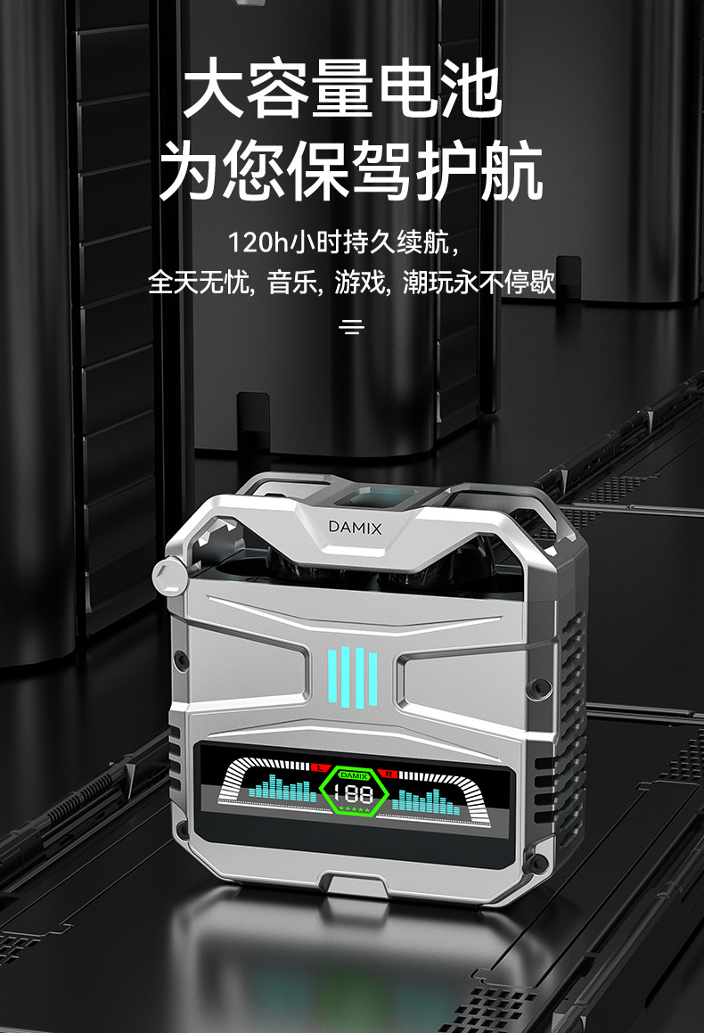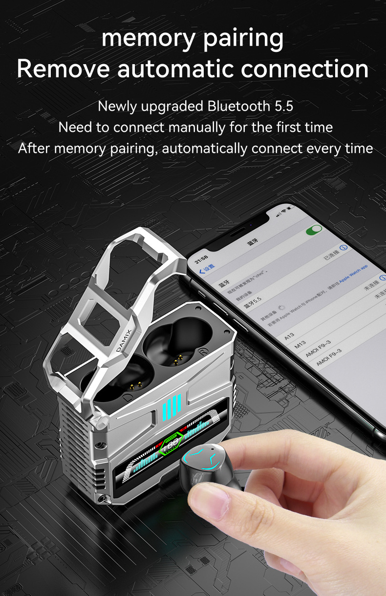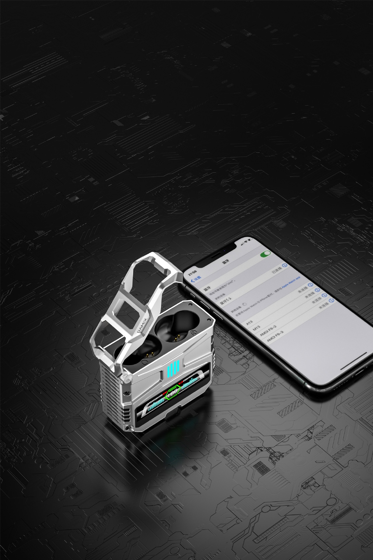 新款跨境私模GQ-13蓝牙耳机无线双耳金属机甲游戏运动降噪无延迟
