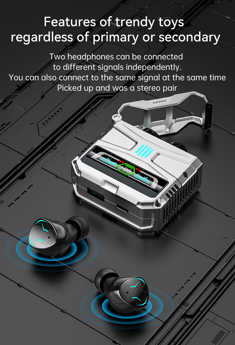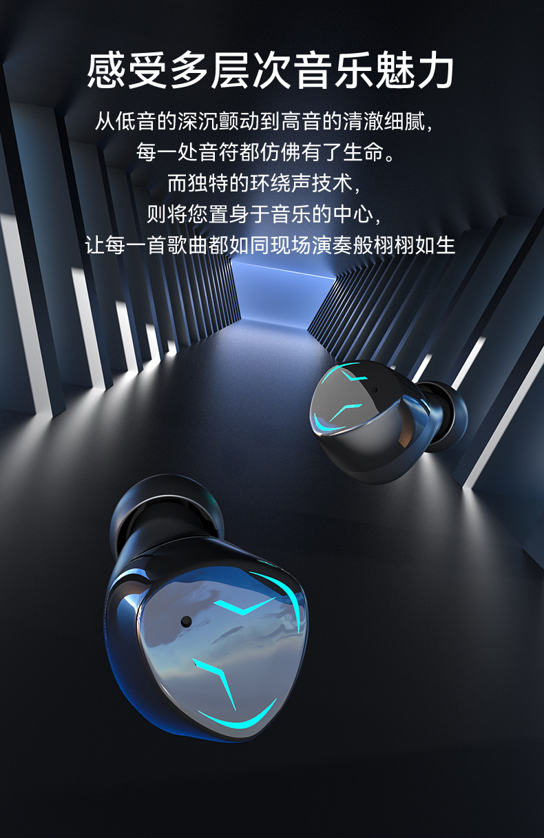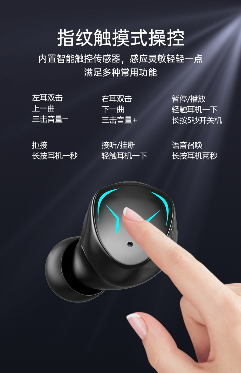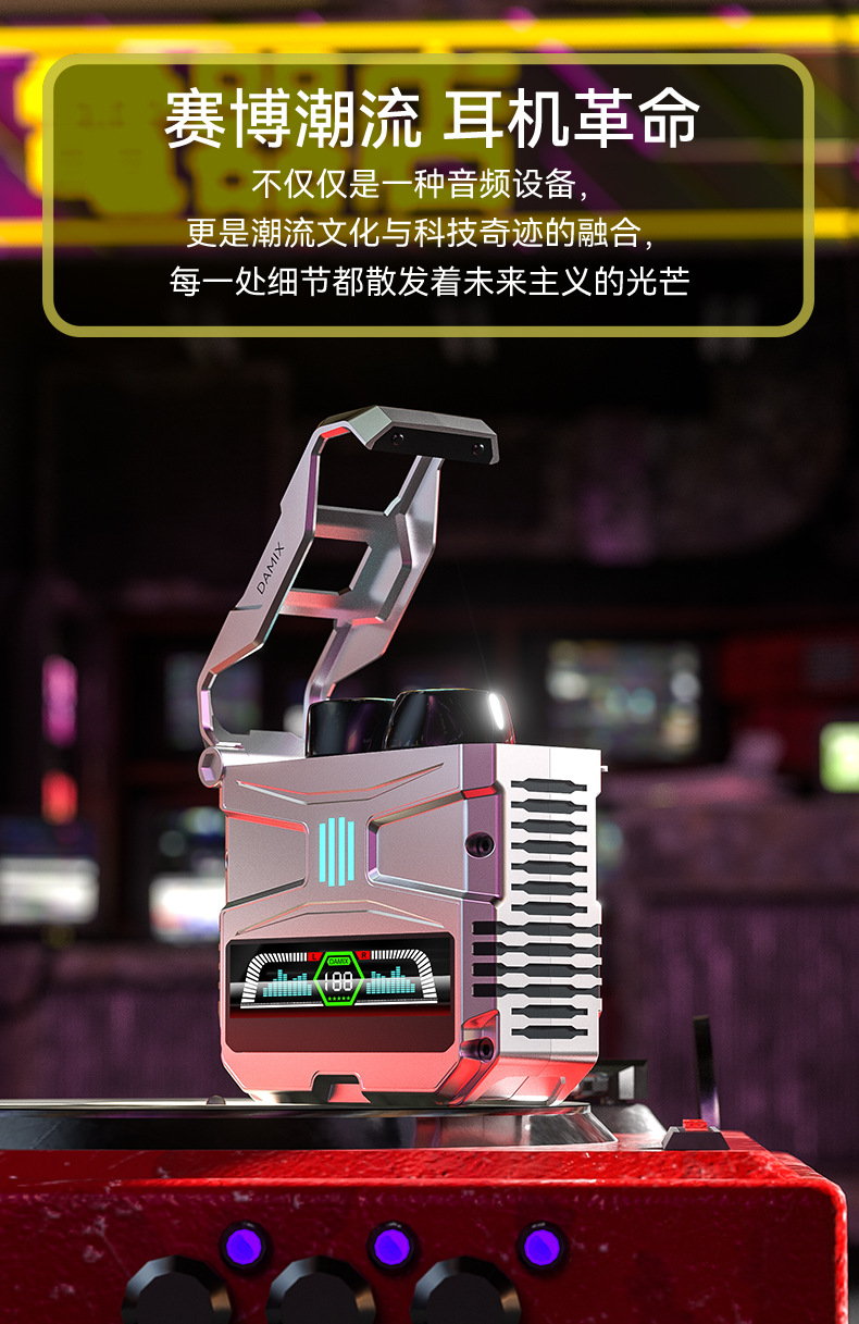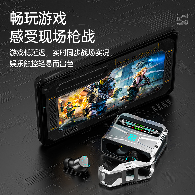 新款跨境私模GQ-13蓝牙耳机无线双耳金属机甲游戏运动降噪无延迟