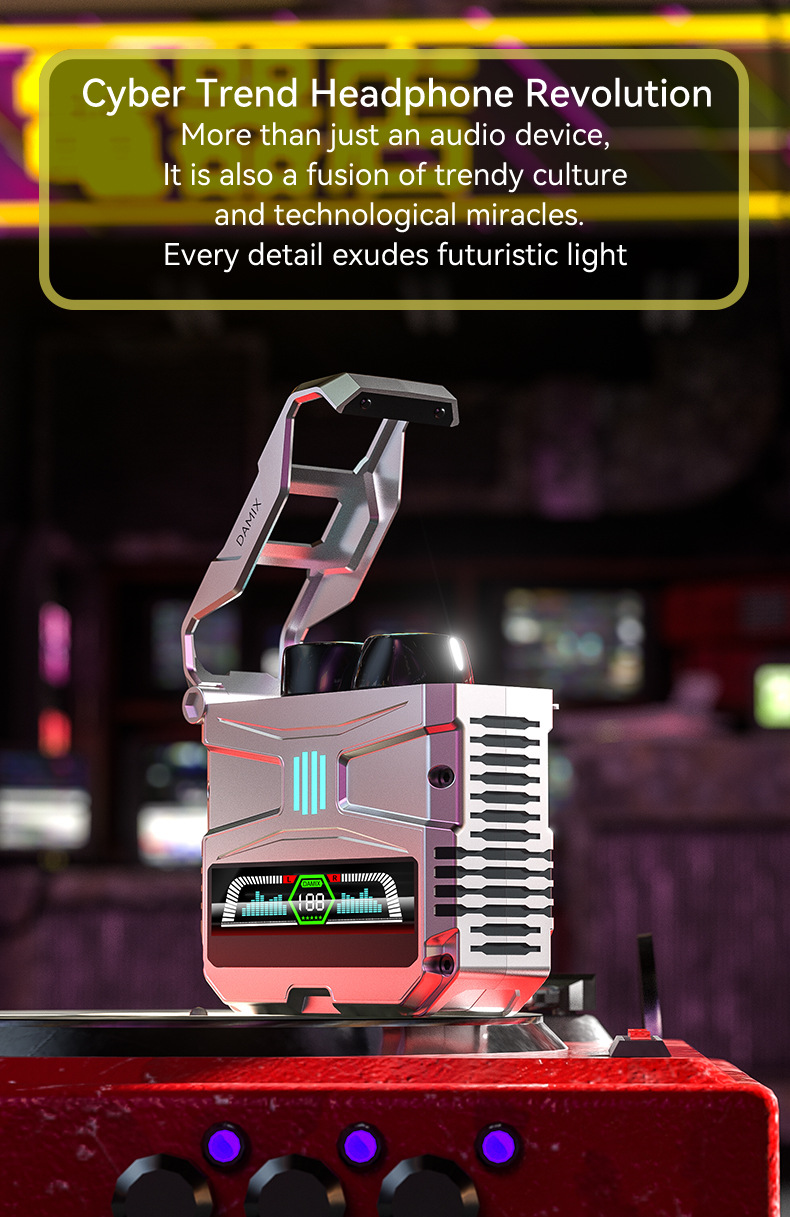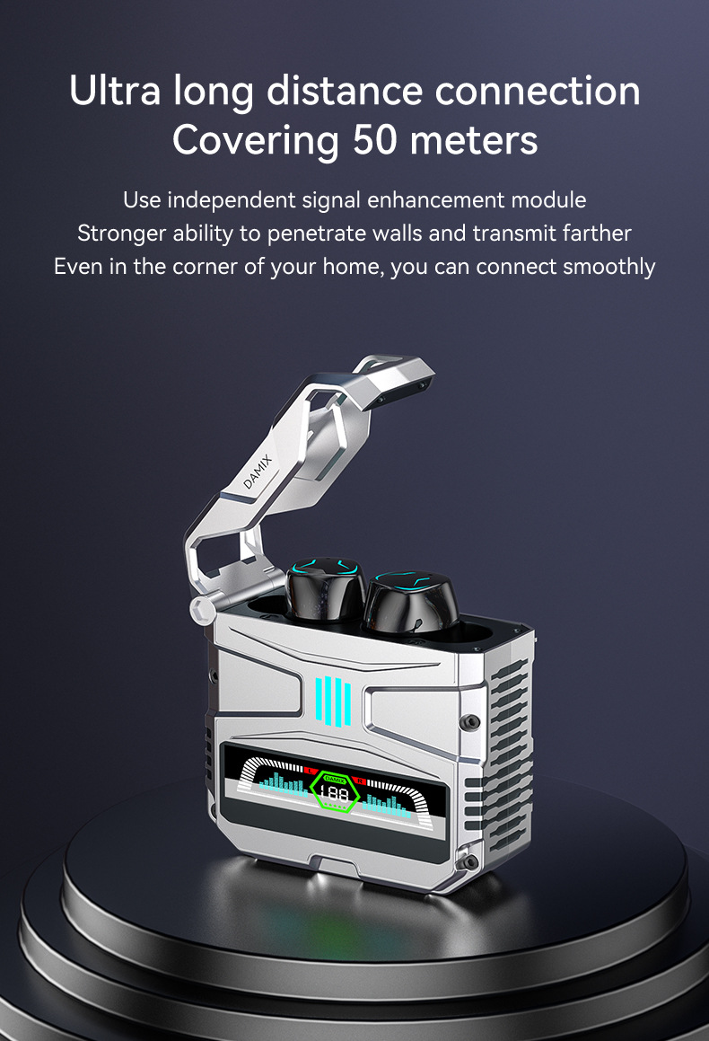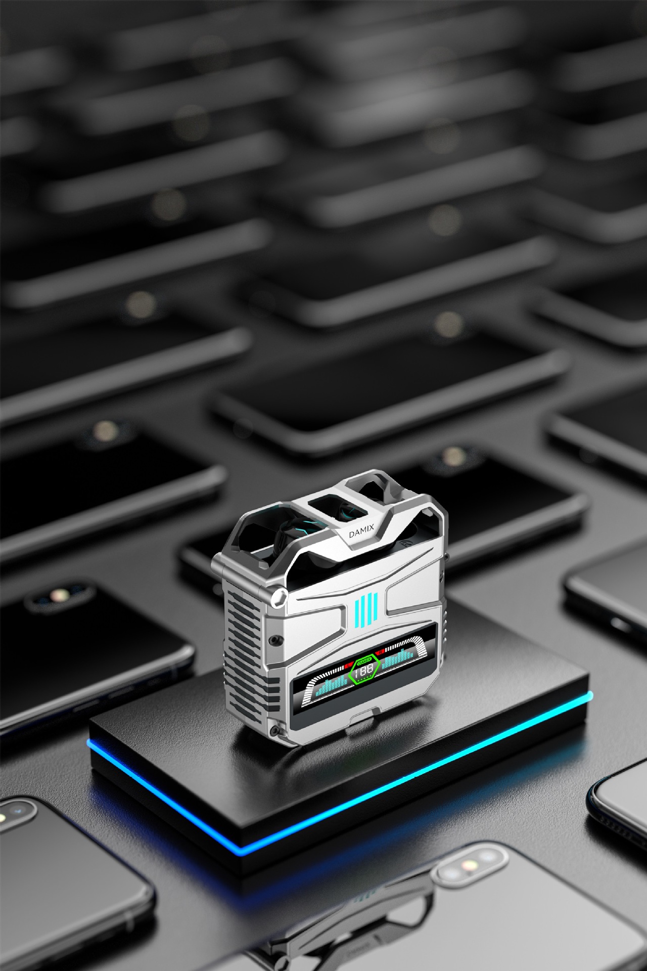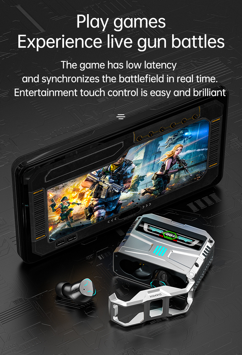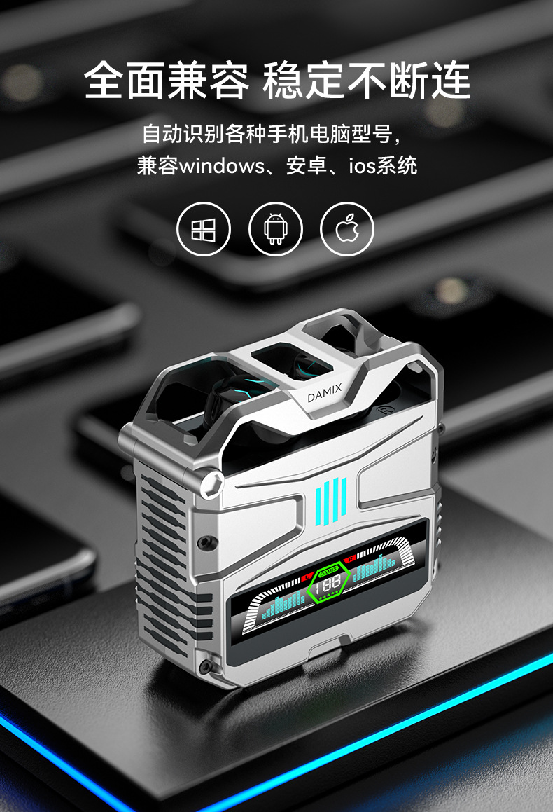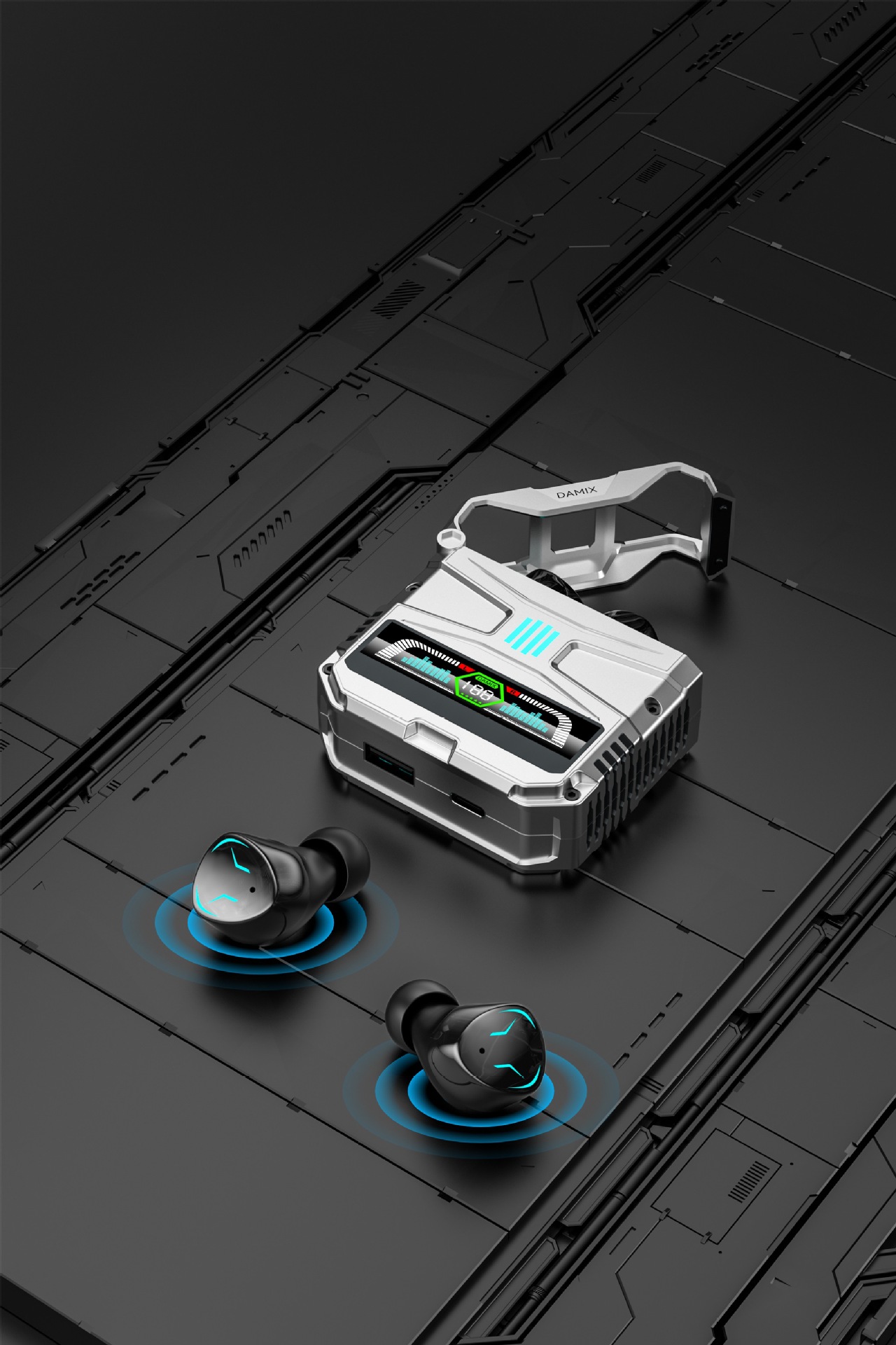 新款跨境私模GQ-13蓝牙耳机无线双耳金属机甲游戏运动降噪无延迟