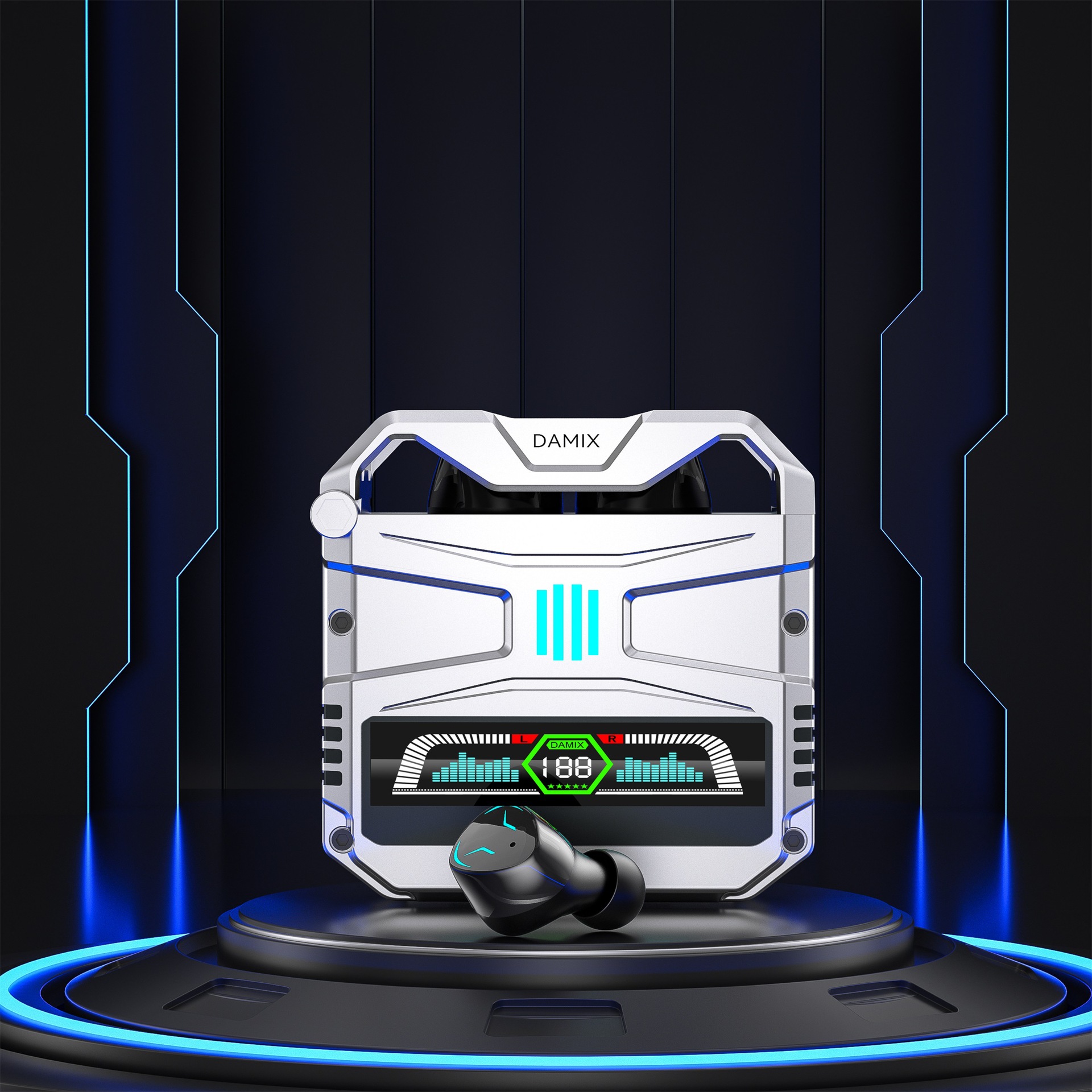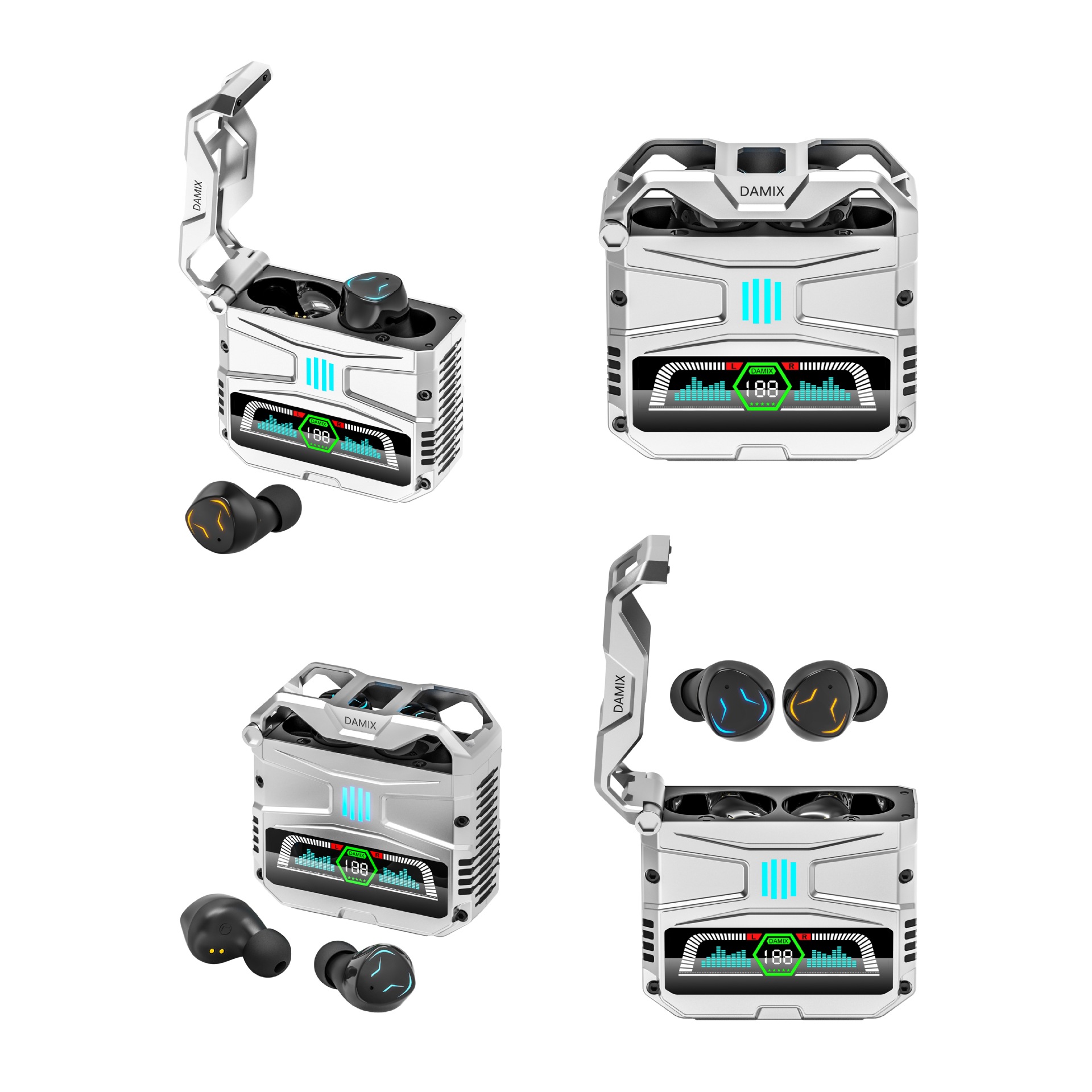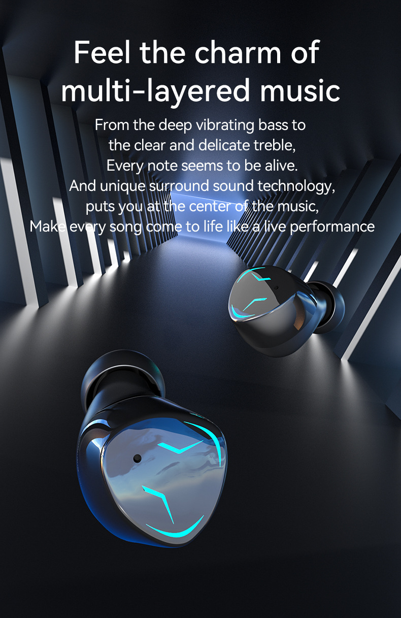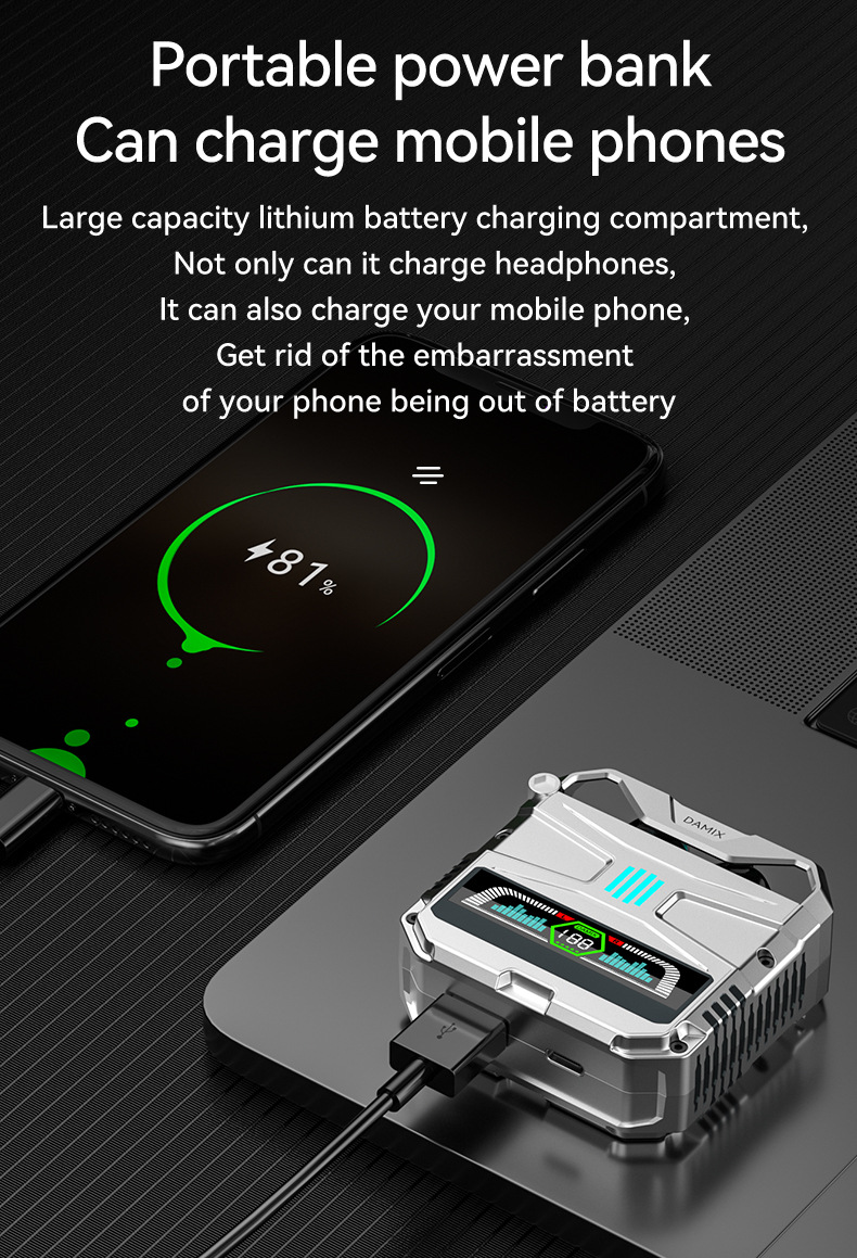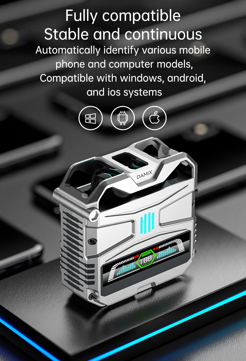 新款跨境私模GQ-13蓝牙耳机无线双耳金属机甲游戏运动降噪无延迟