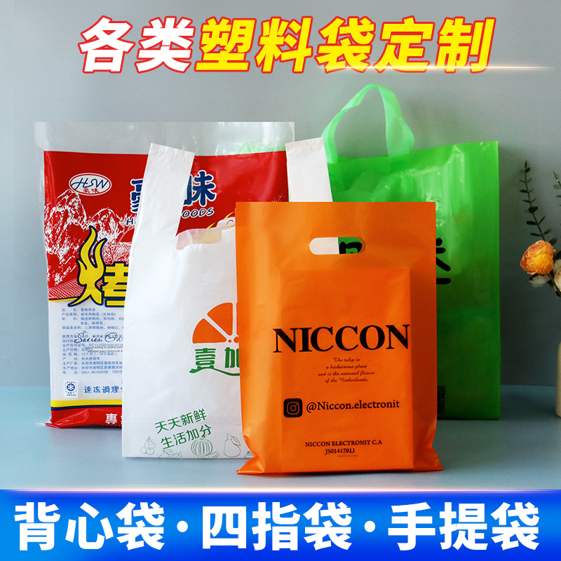 可降解塑料袋定制外卖打包背心袋图文礼品服装手提扣手四指袋定做