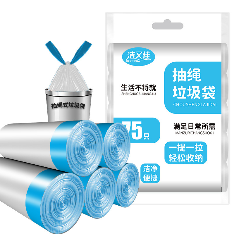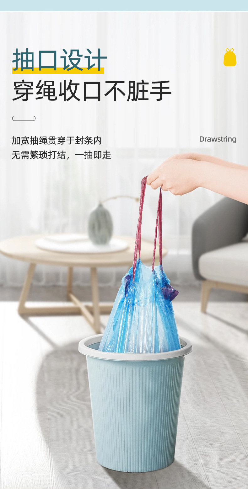 抽绳垃圾袋家用加厚手提一次性黑色塑料袋自动收口穿绳垃圾袋批发
