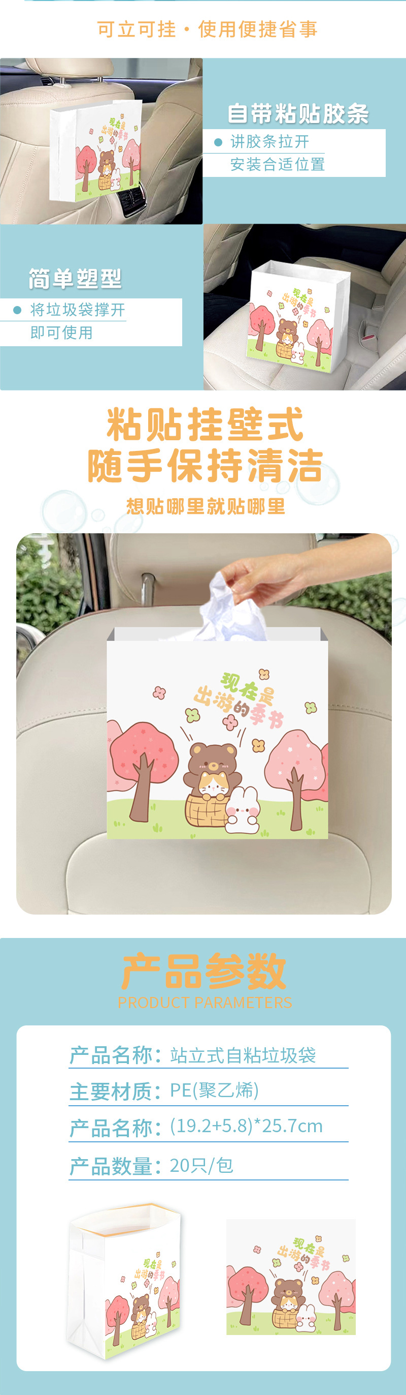车用自立式防水清洁袋便携桌面挂式收纳袋一次性粘贴式车载垃圾袋