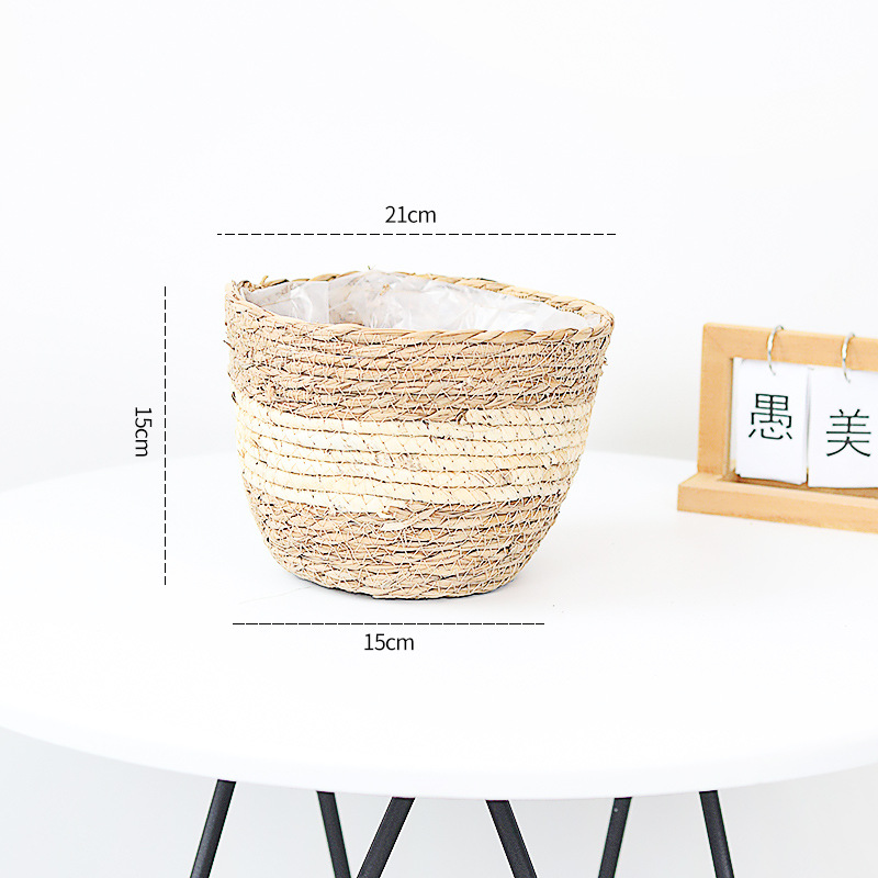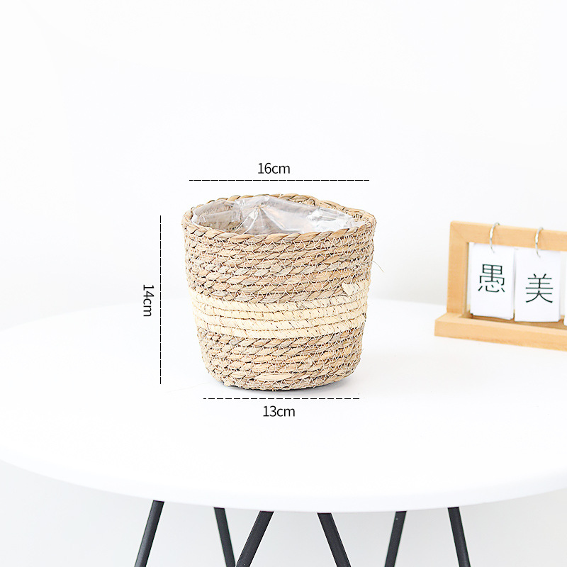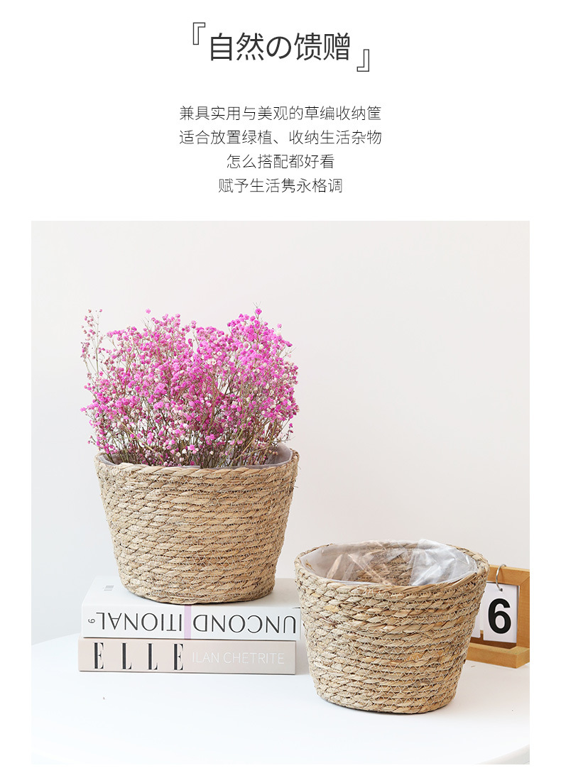 北欧草编花盆花器花艺鲜花插花编织竹编花篮家居客厅桌面收纳摆件