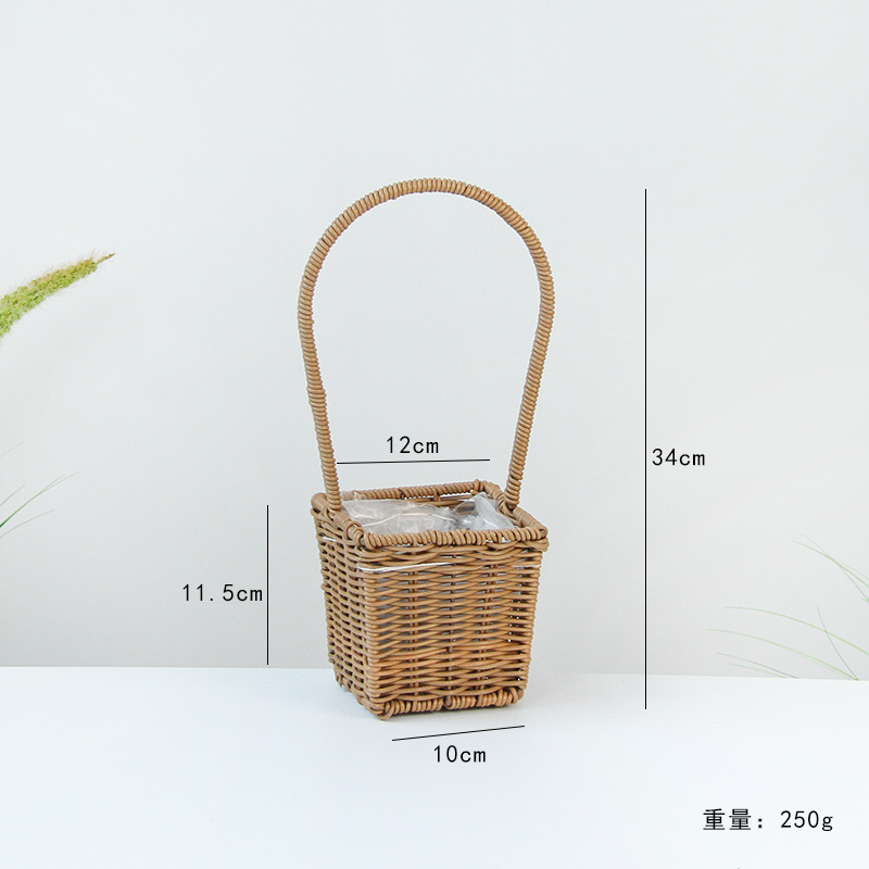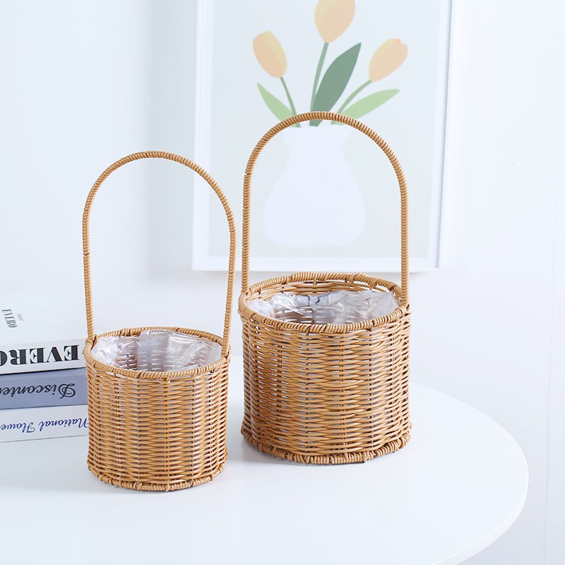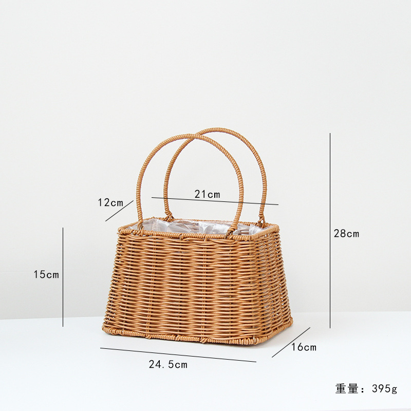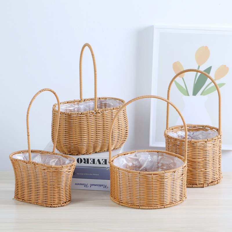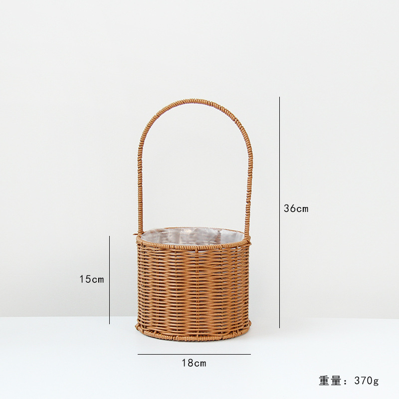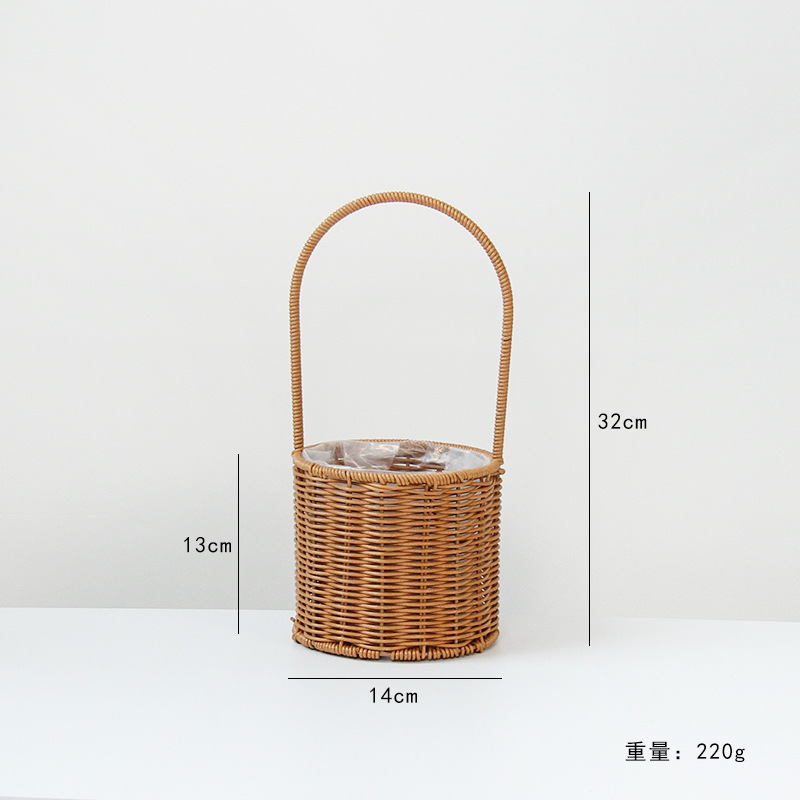 手提花篮仿藤编柳编户外野餐篮编织花盆伴手礼花篮家用装饰收纳篮