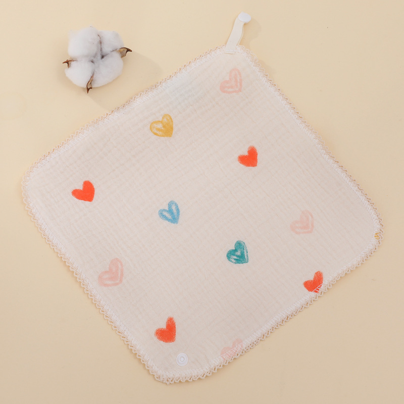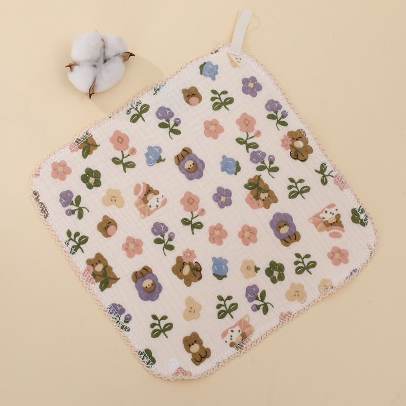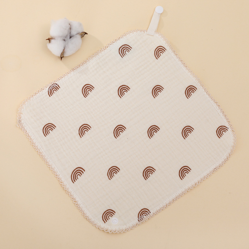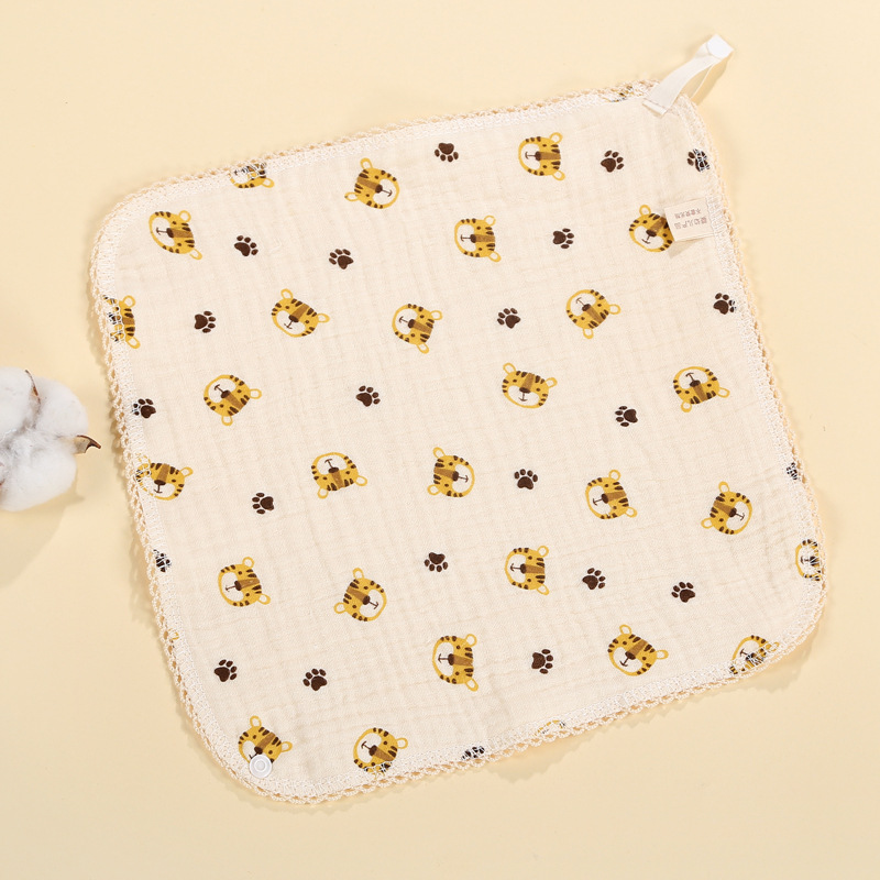4层纱布棉小方巾带扣多功能三角巾花边皱布婴儿口水巾宝宝擦手巾