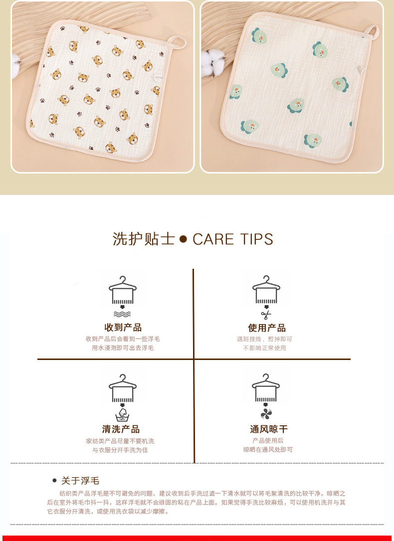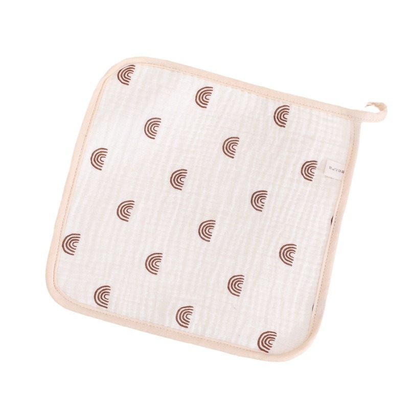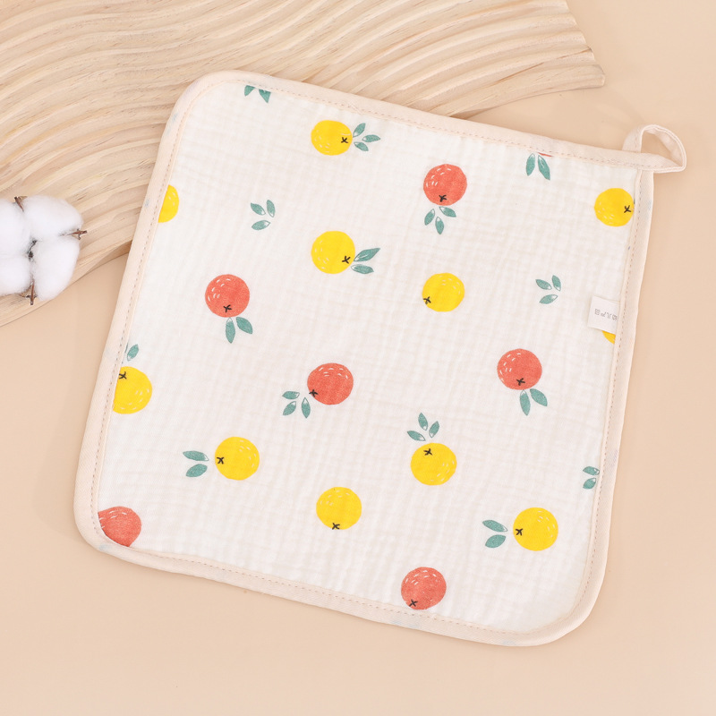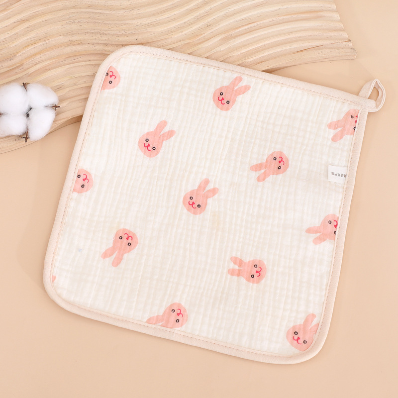 六层口水巾纱布印花小方巾儿童擦嘴全棉手帕新生婴儿褶皱水洗脸巾