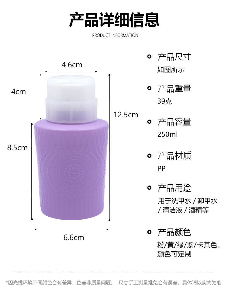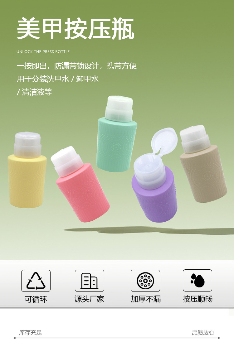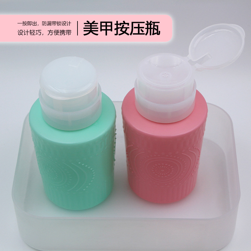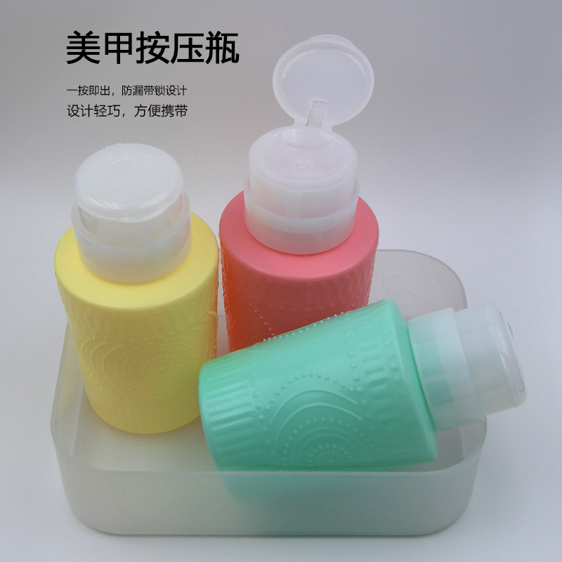 彩色压瓶6按压式空瓶洗甲水清洁卸甲液按压瓶防漏酒精消毒压瓶