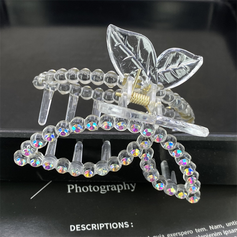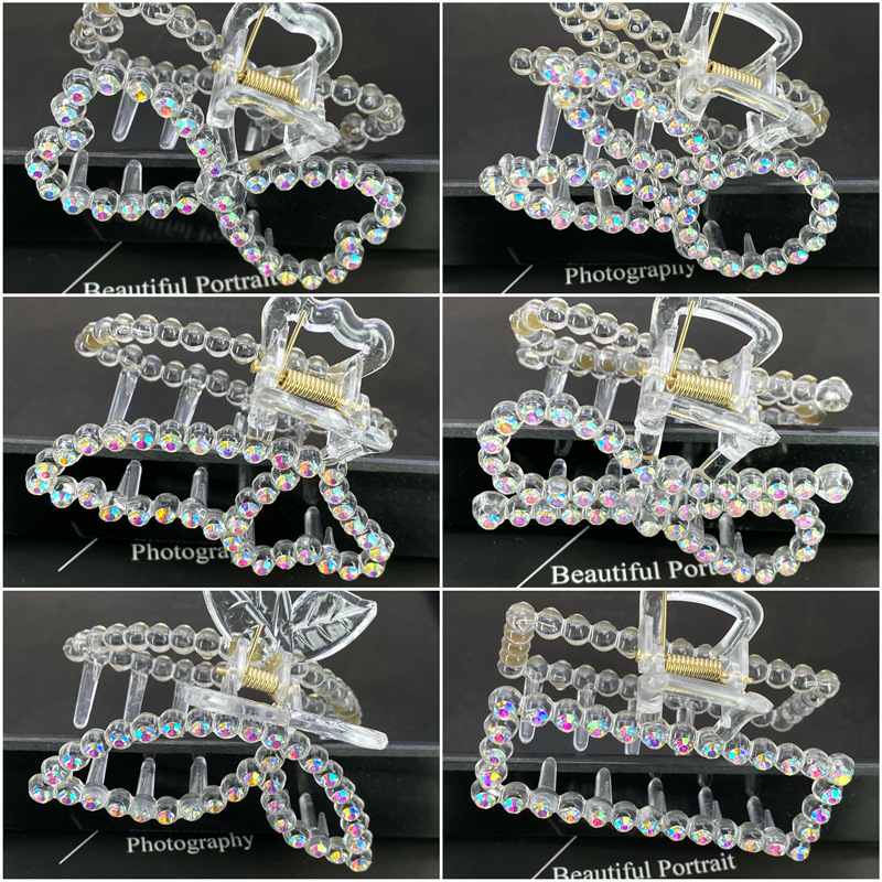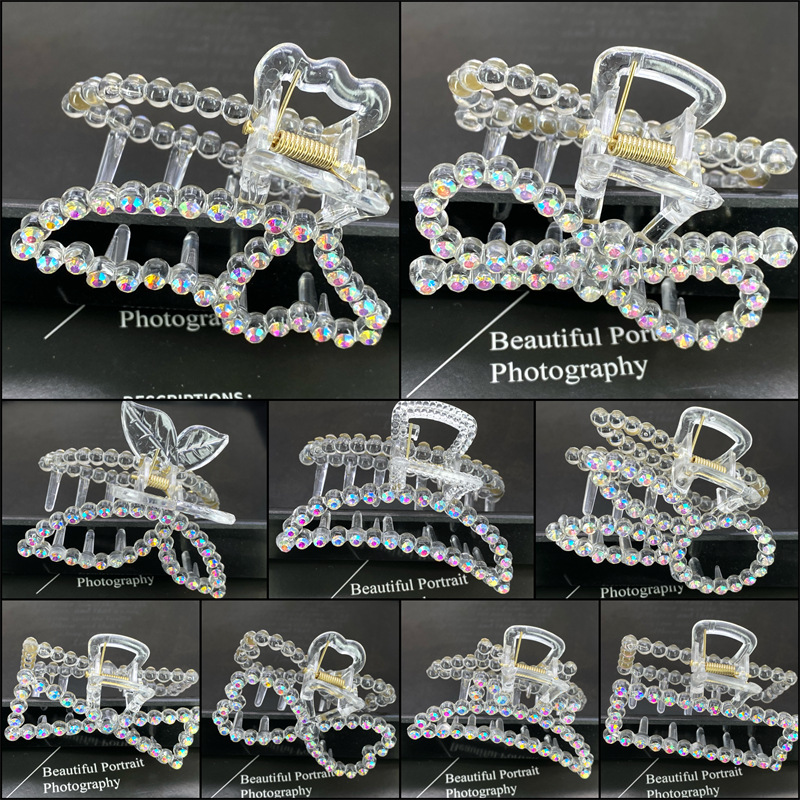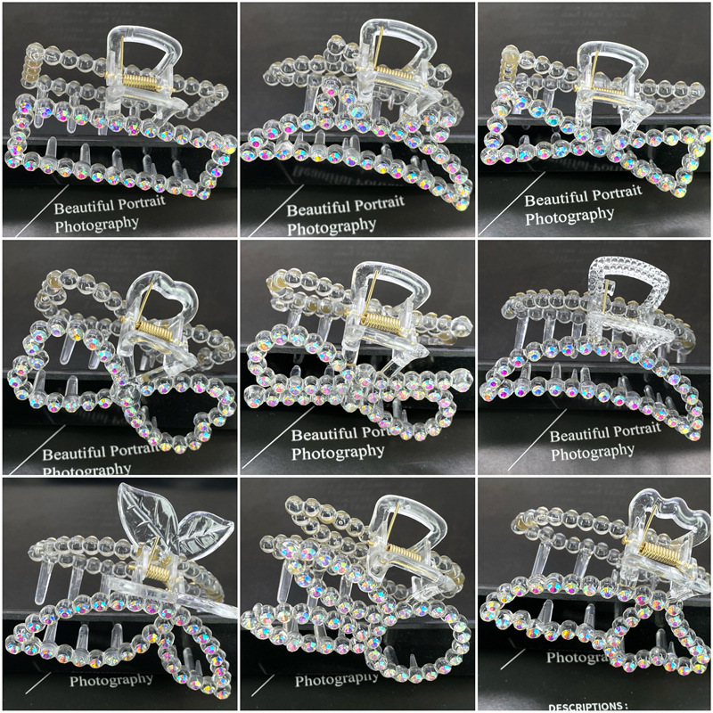8cm透明AB钻发夹镶钻月亮方块抓夹后脑勺夹 超市2元店发饰 头饰品