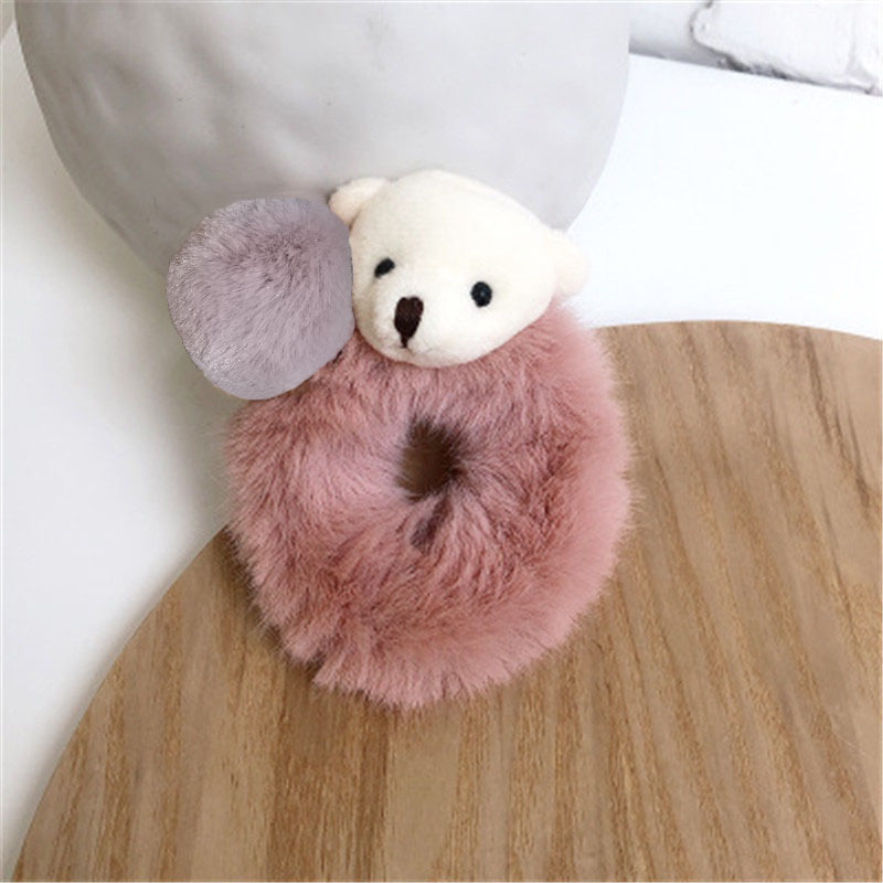 秋冬新款时尚发绳可爱小熊毛绒发圈森系成人扎头发橡皮筋批发