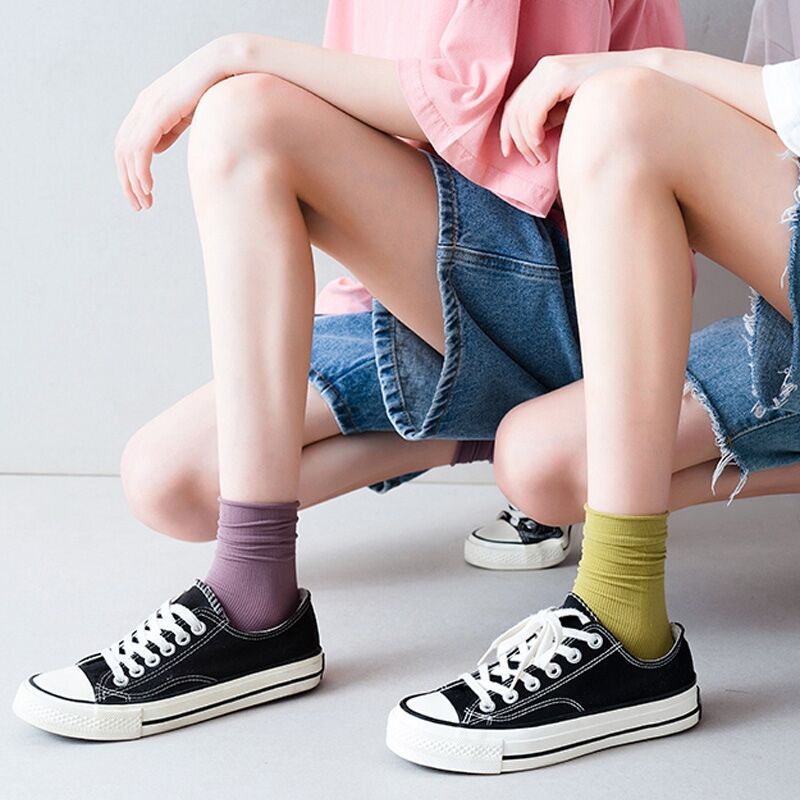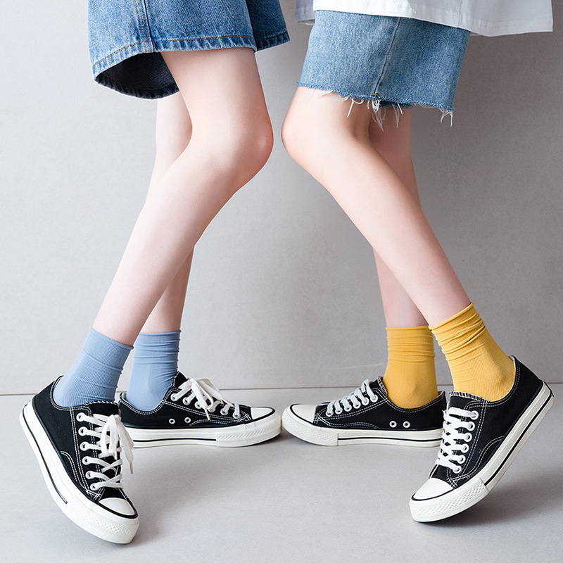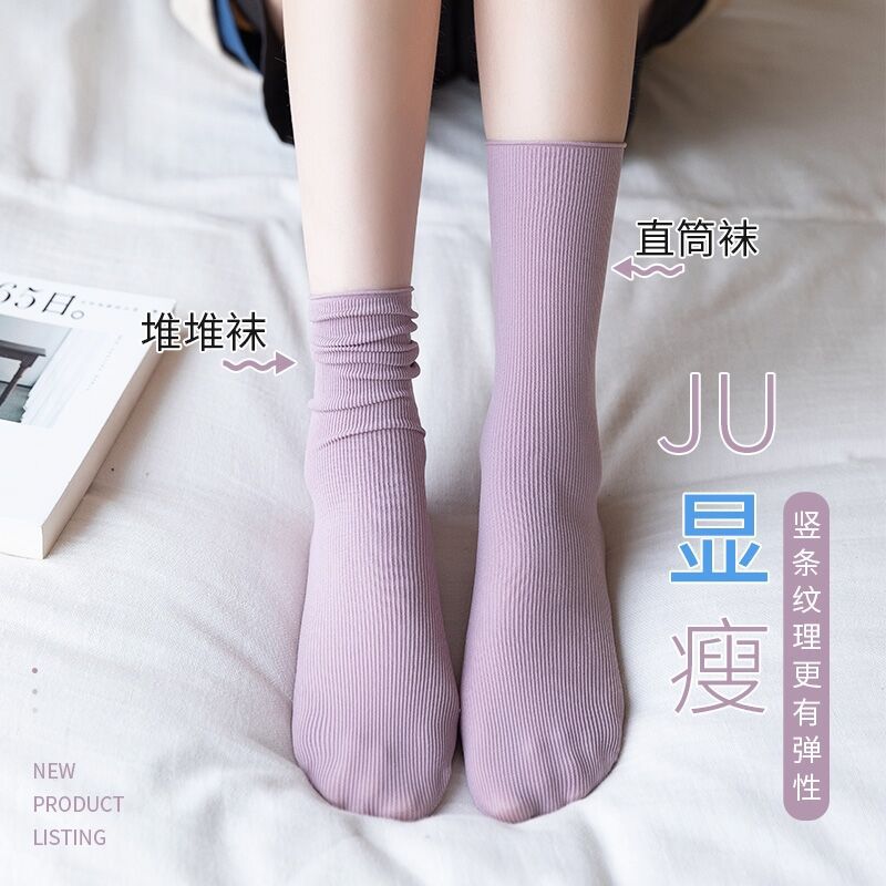 诸暨袜业冰冰袜春夏季天鹅绒女士薄款女袜纯色中筒冰丝袜jk堆堆袜