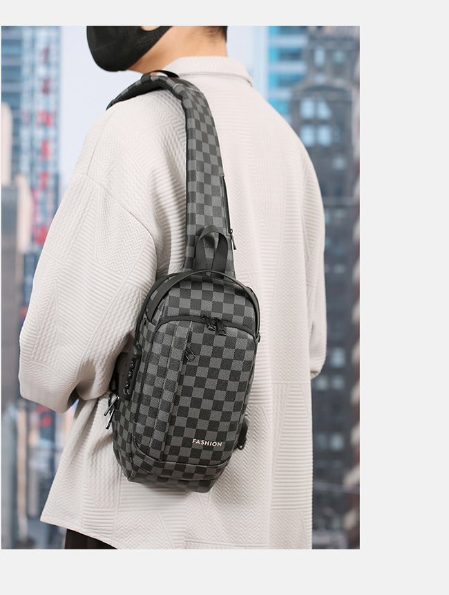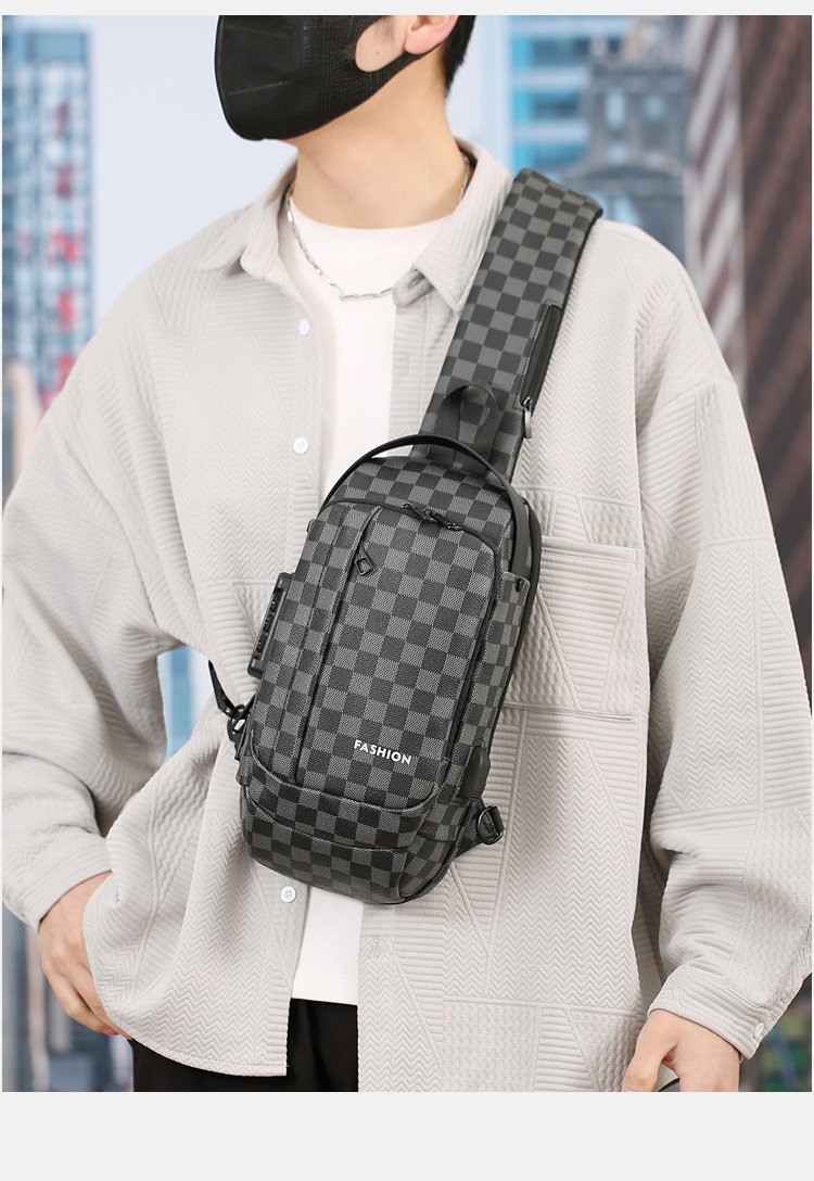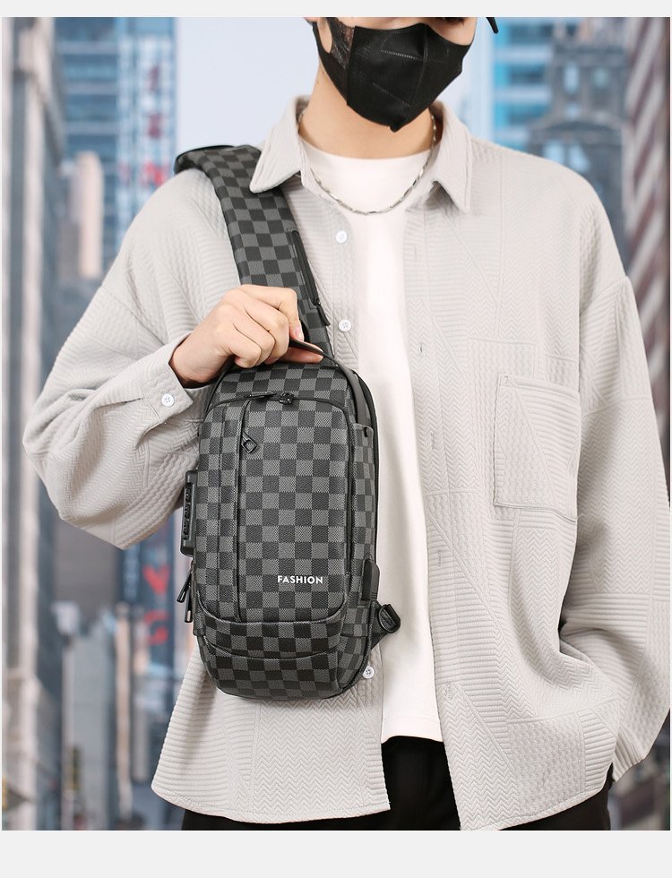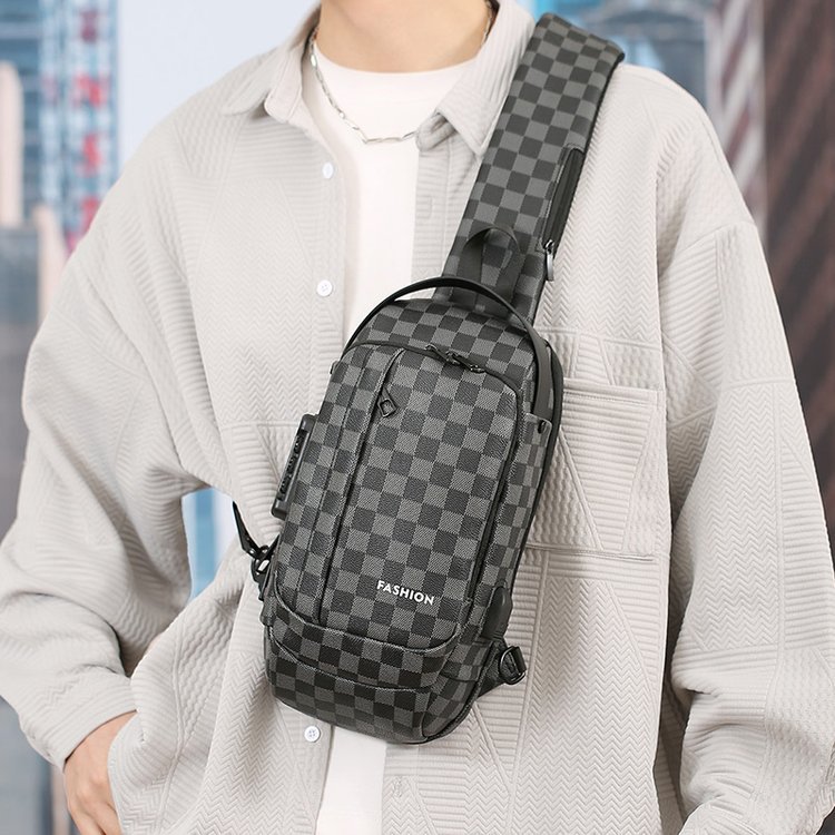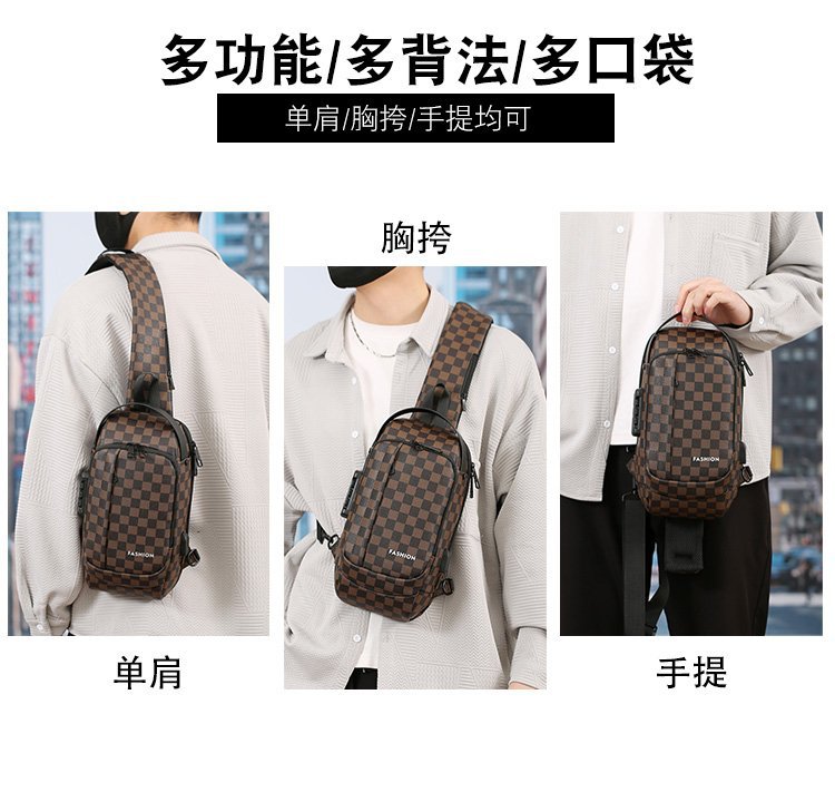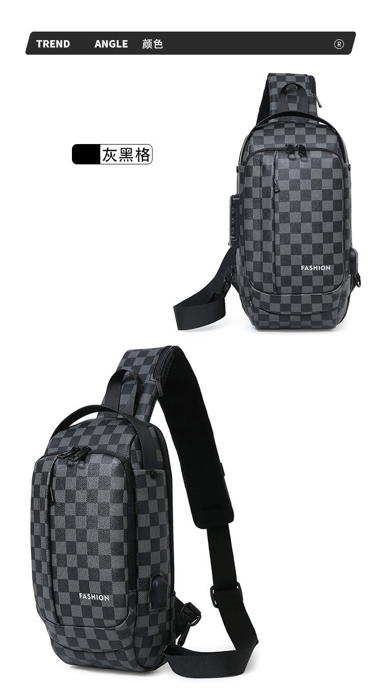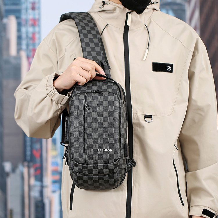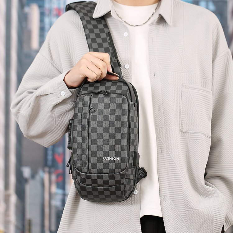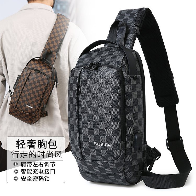 包包潮男跨境2024新款时尚格子胸包肩斜挎包小挎包