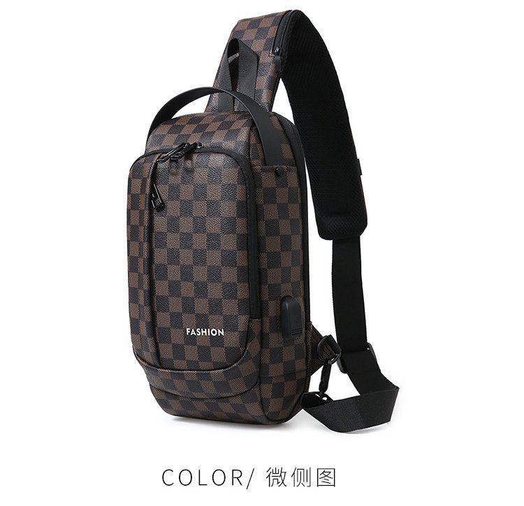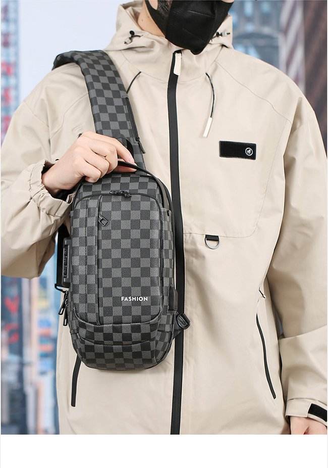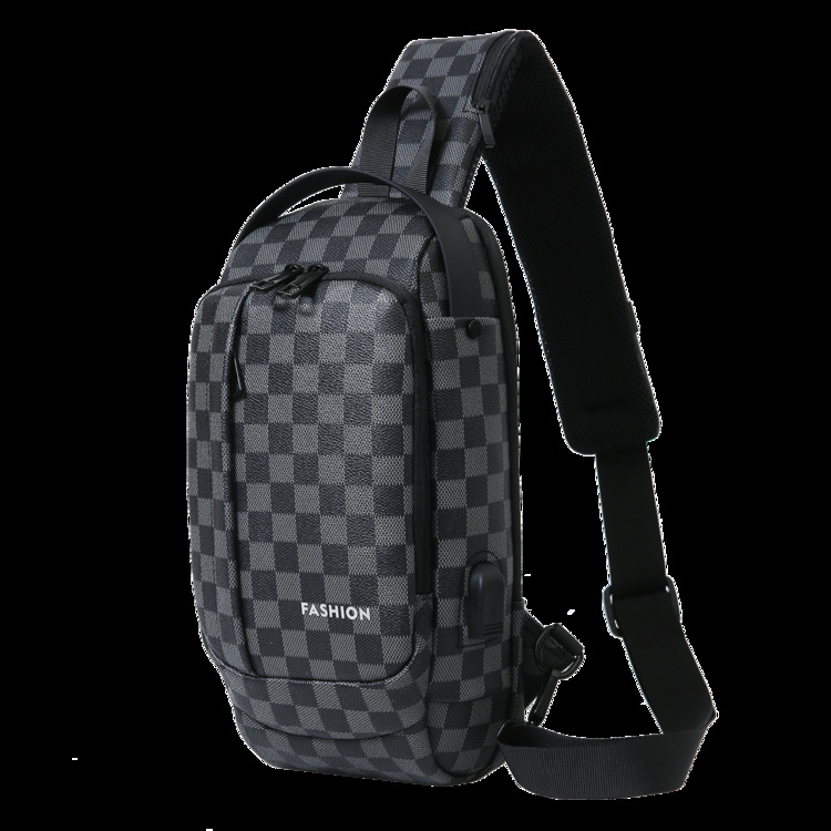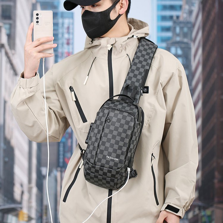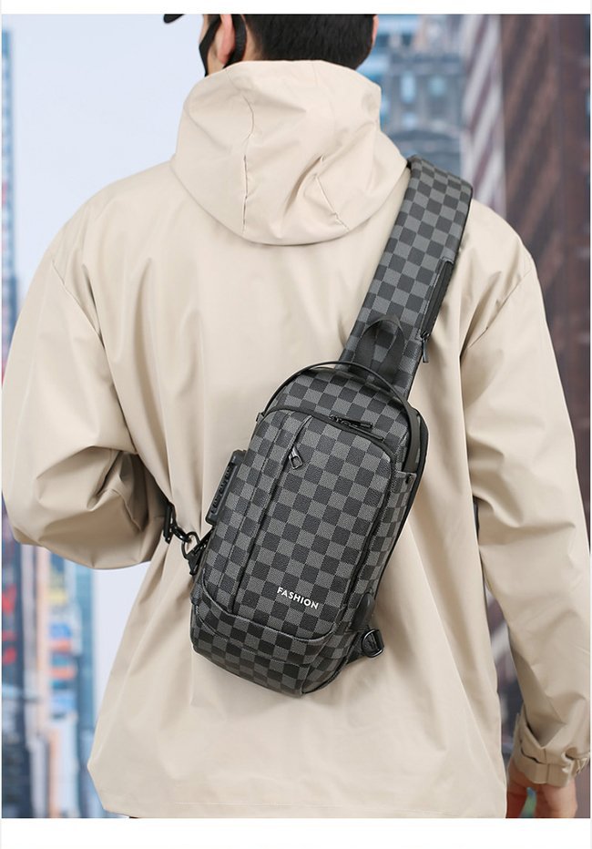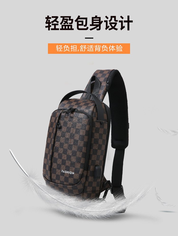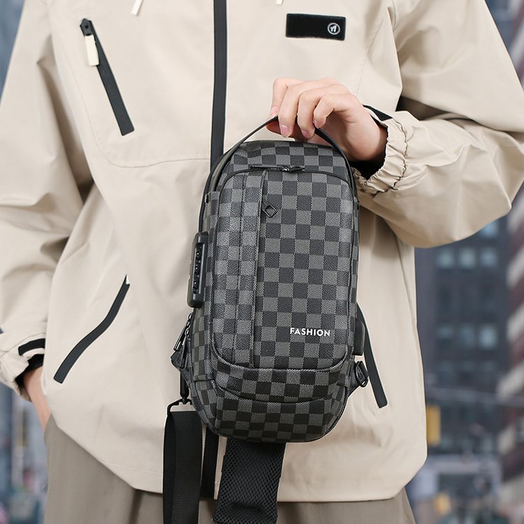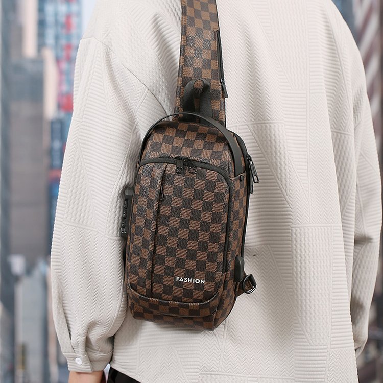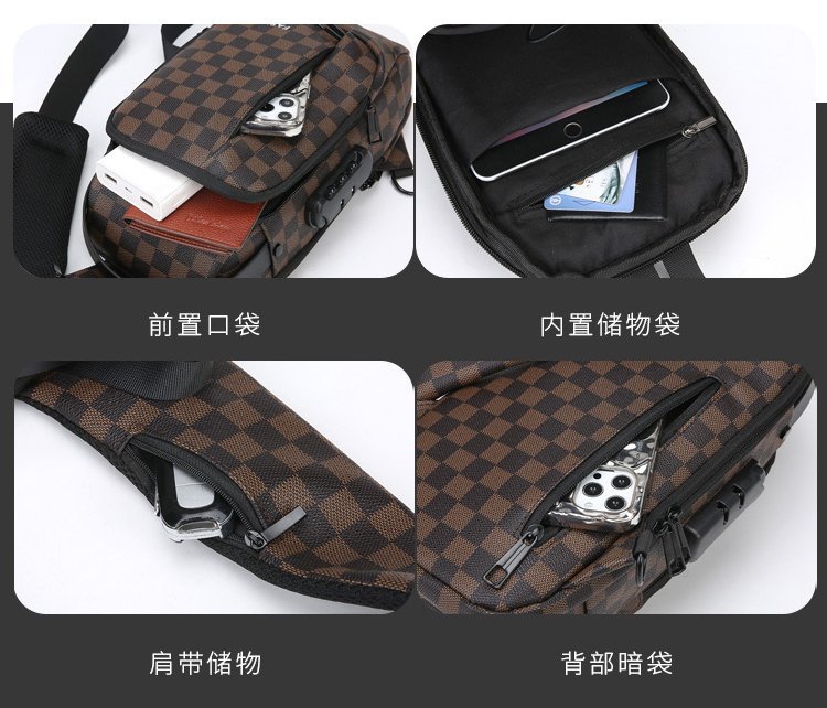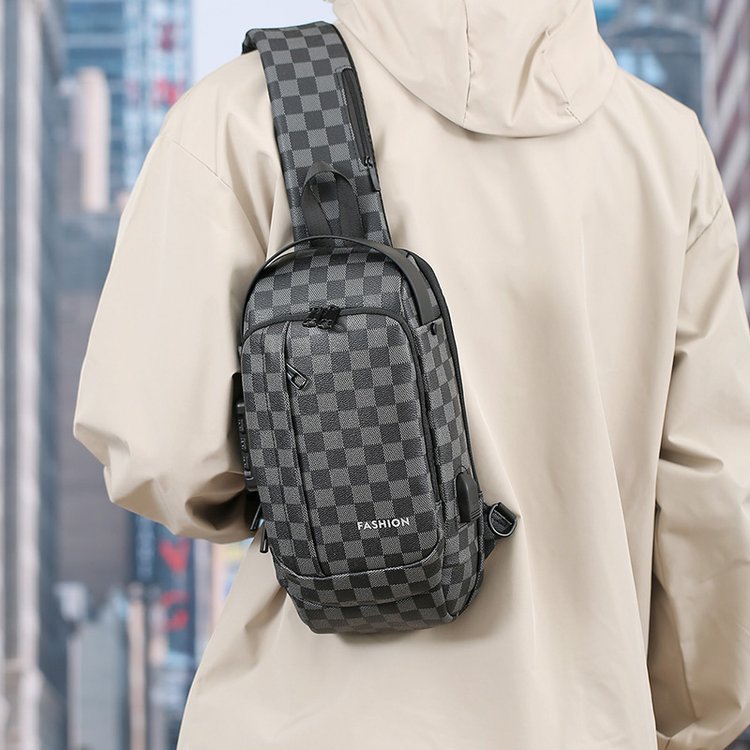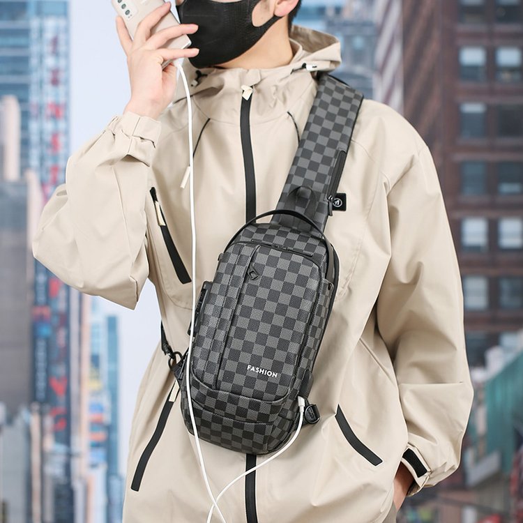 包包潮男跨境2024新款时尚格子胸包肩斜挎包小挎包