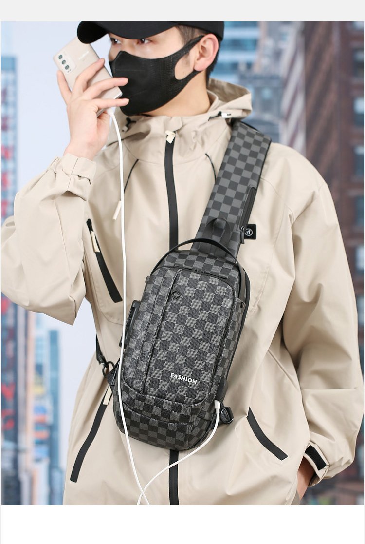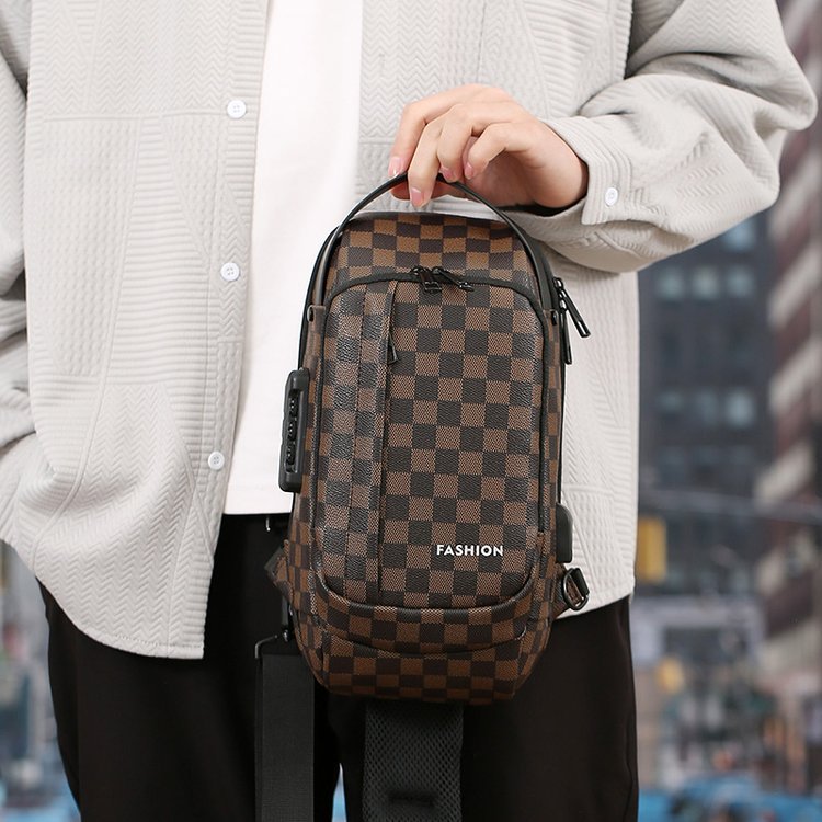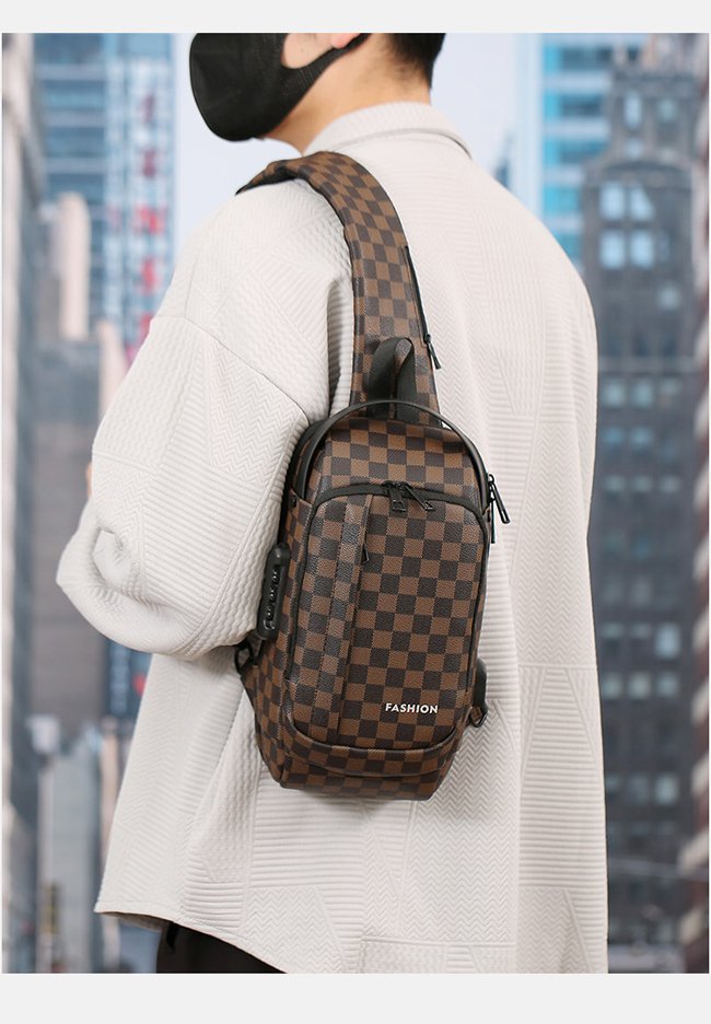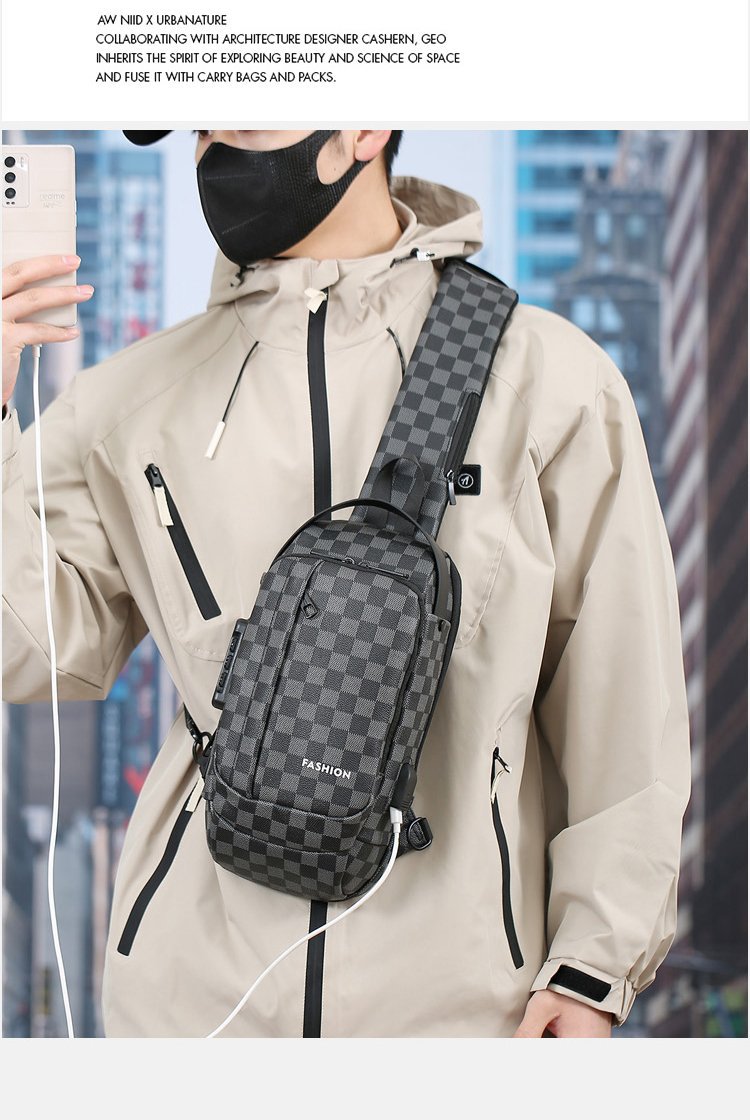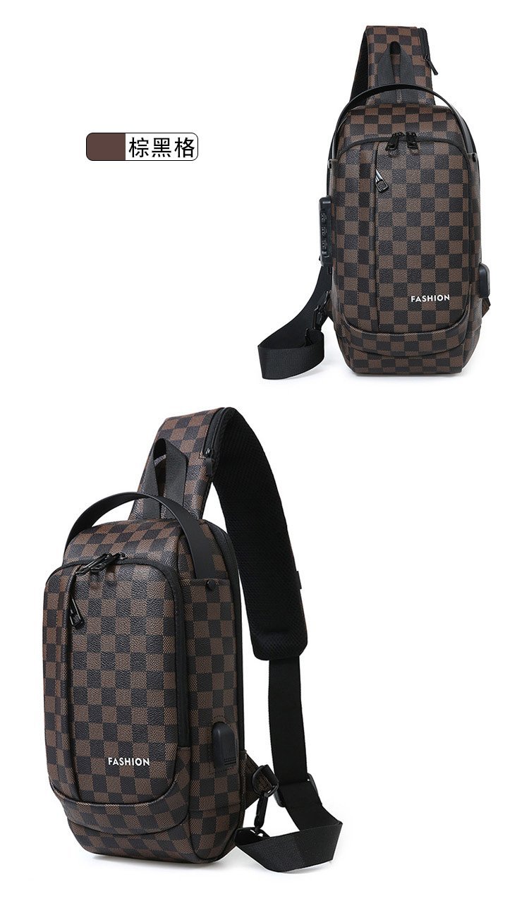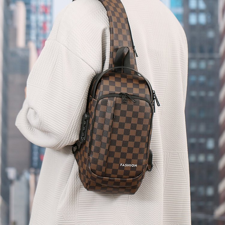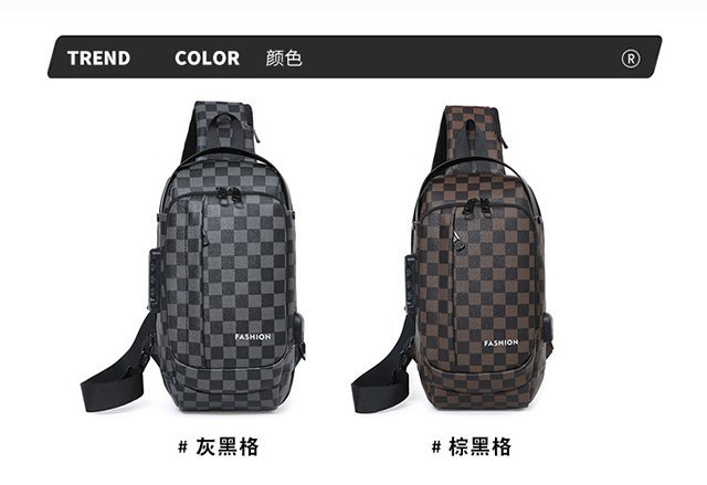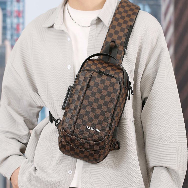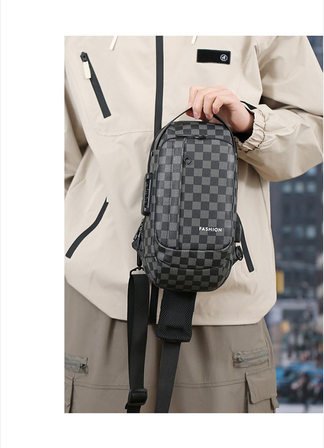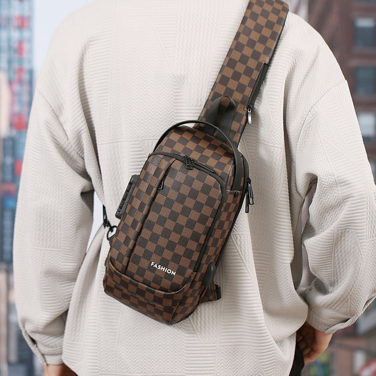 包包潮男跨境2024新款时尚格子胸包肩斜挎包小挎包