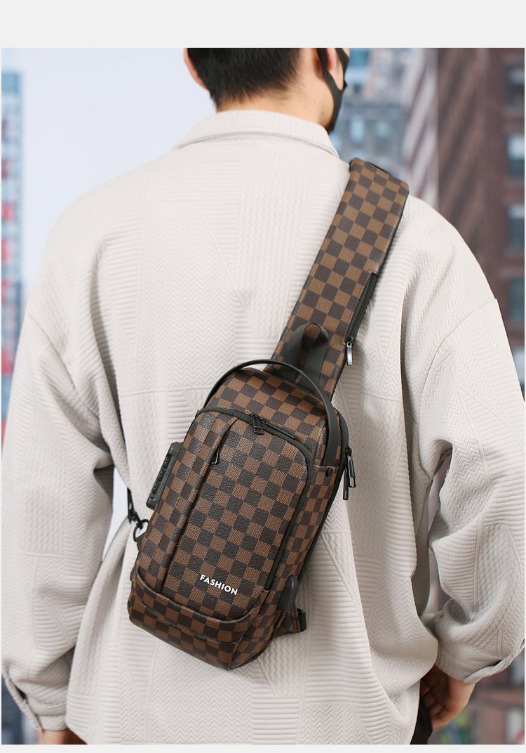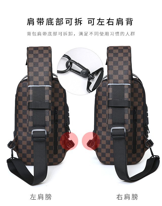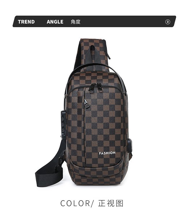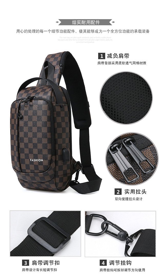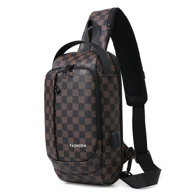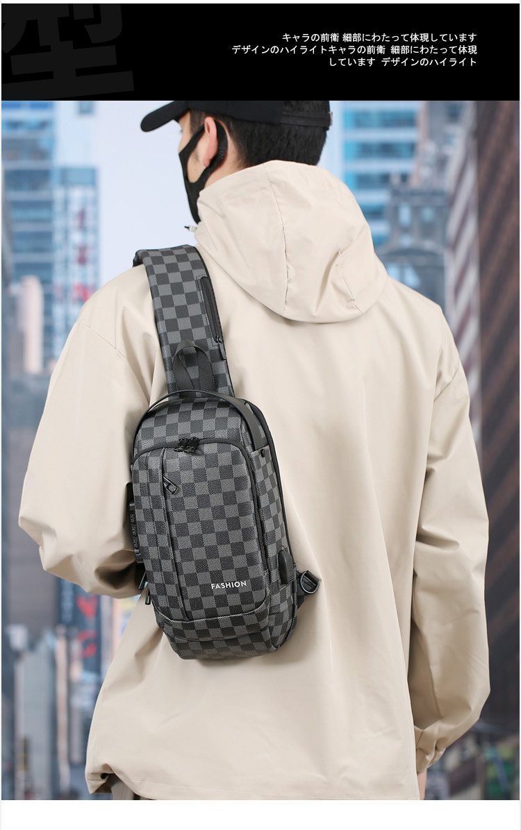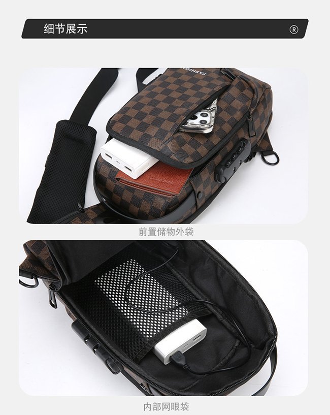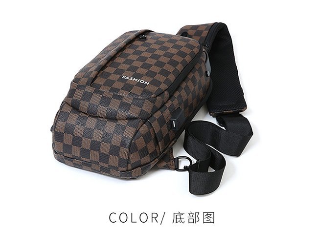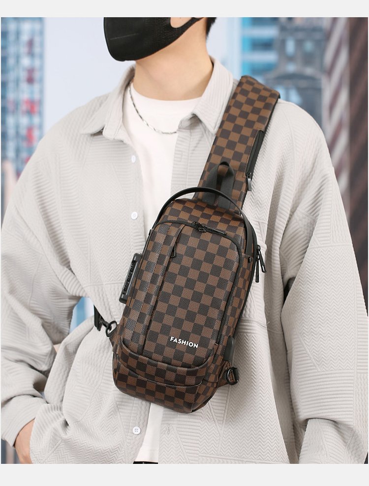 包包潮男跨境2024新款时尚格子胸包肩斜挎包小挎包