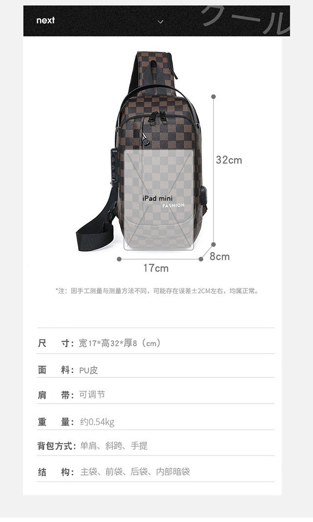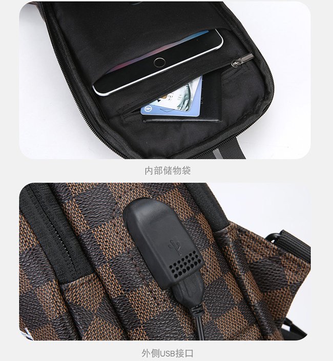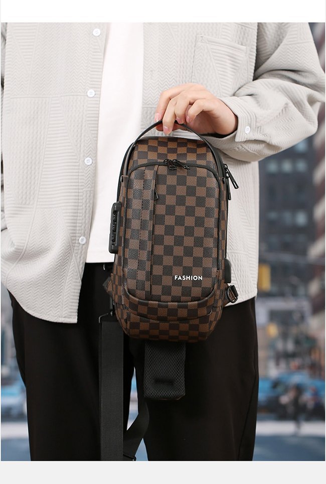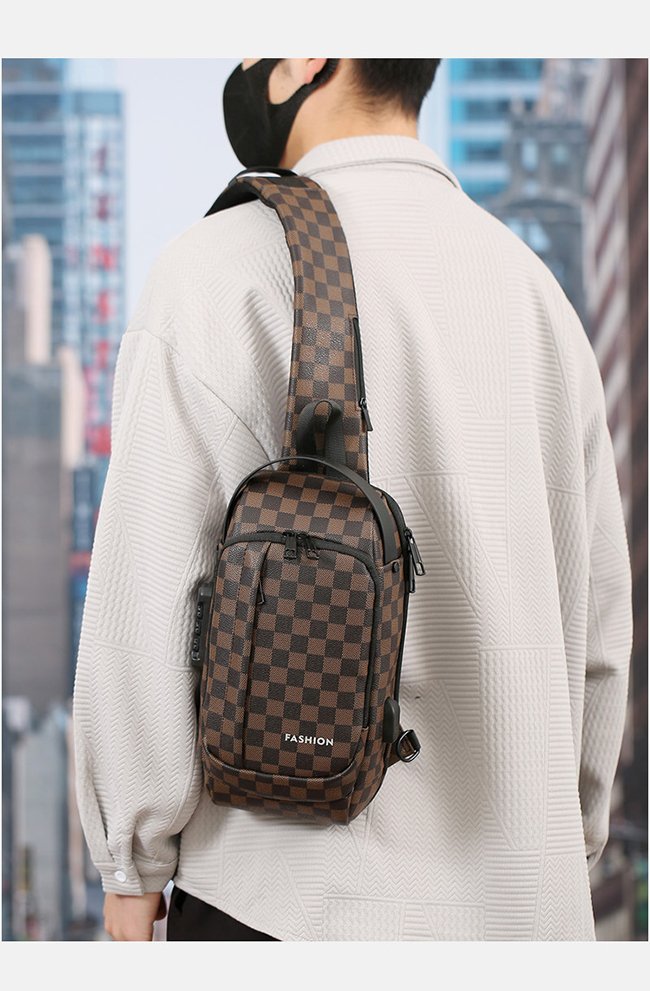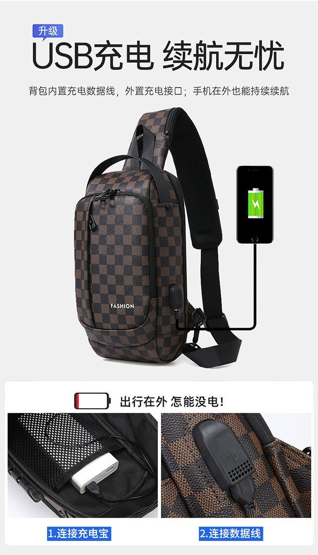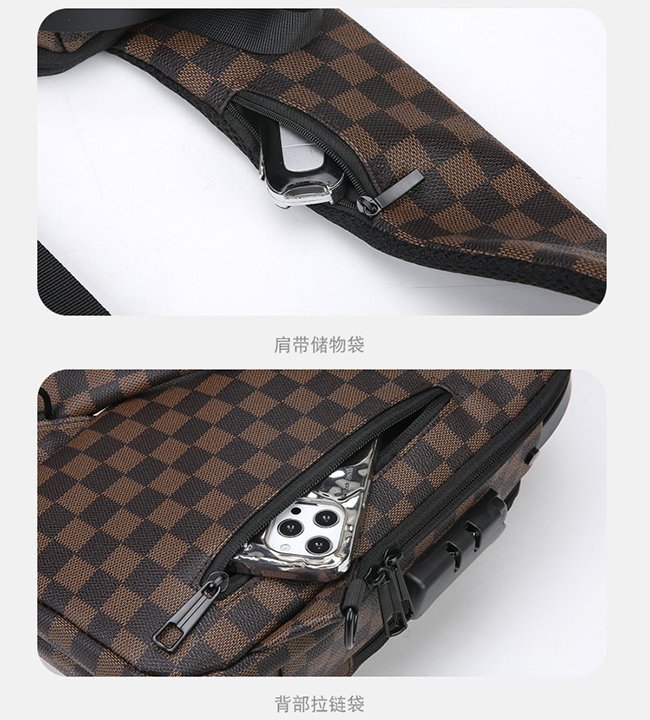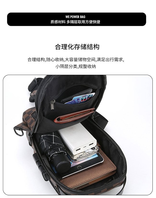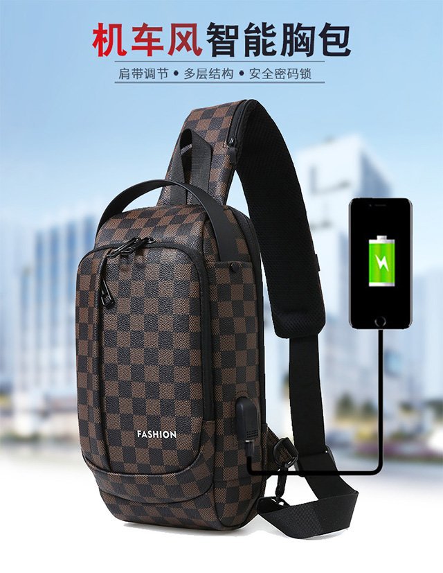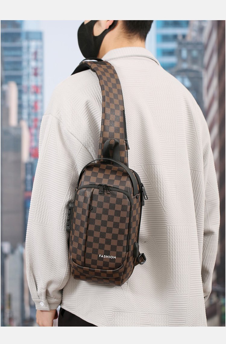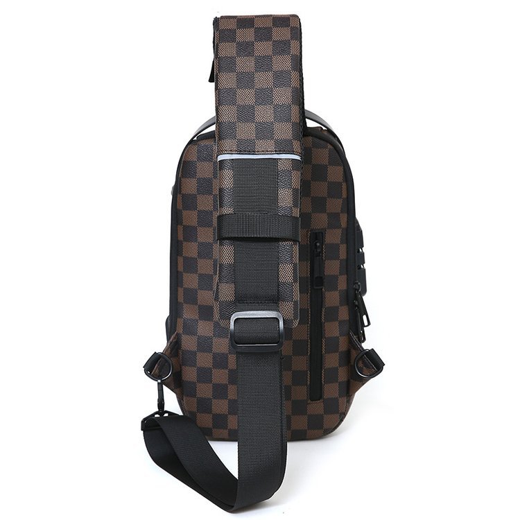 包包潮男跨境2024新款时尚格子胸包肩斜挎包小挎包