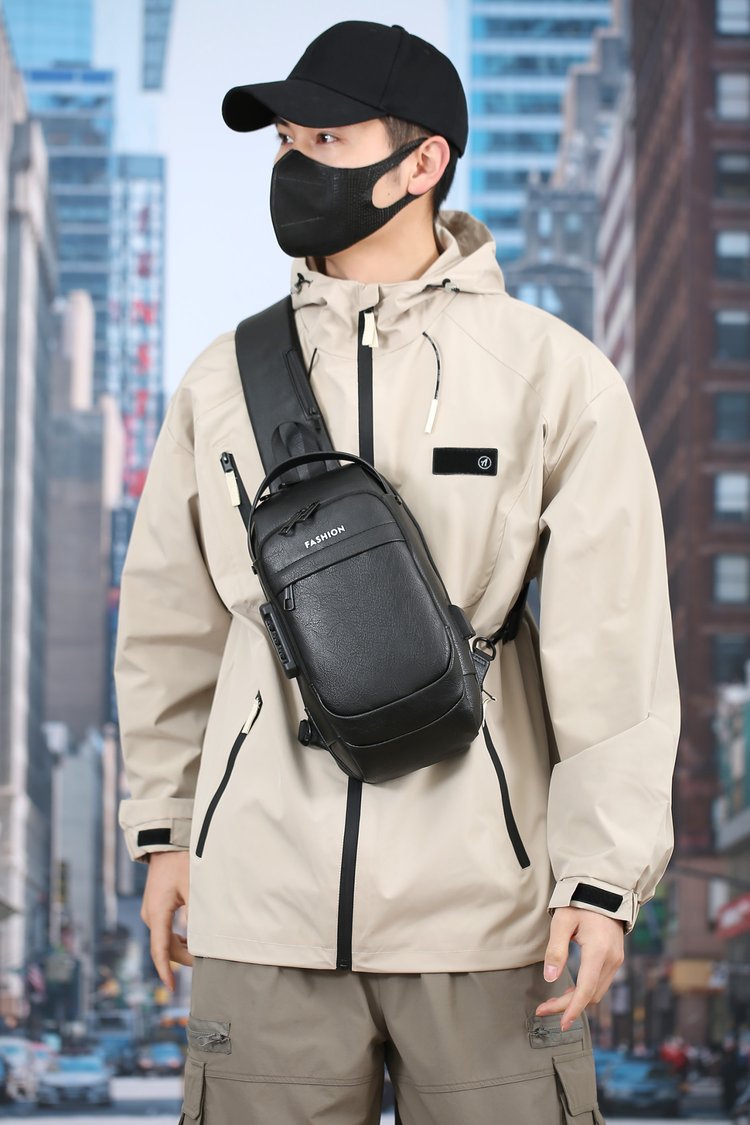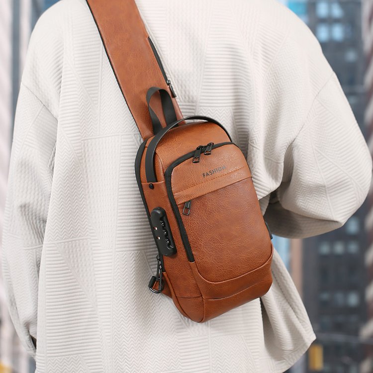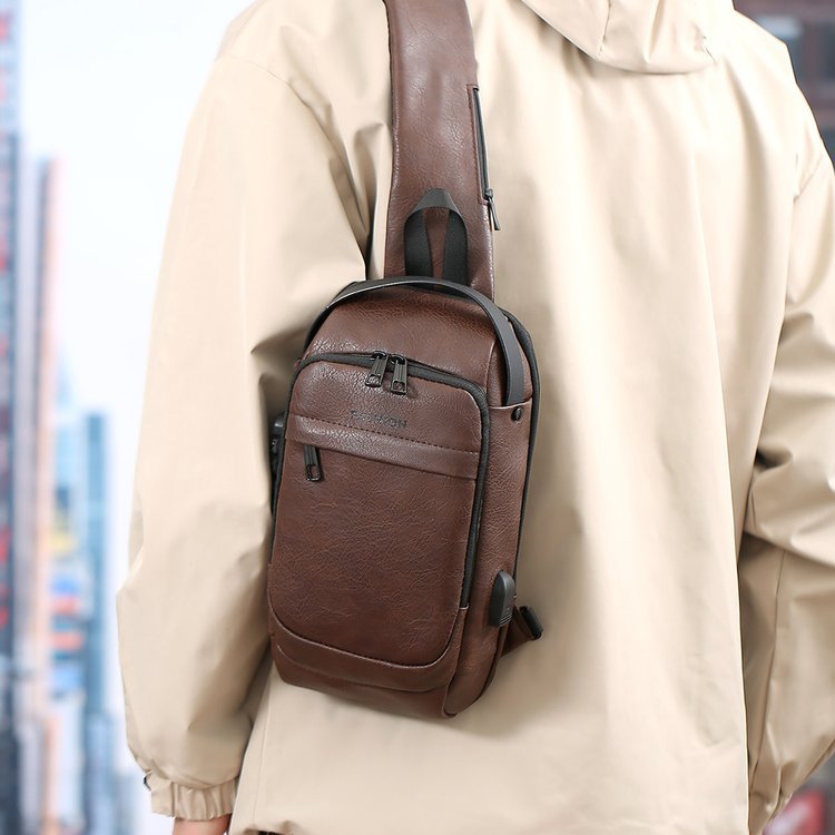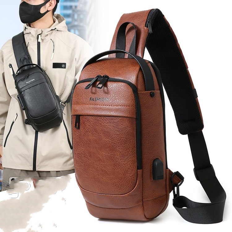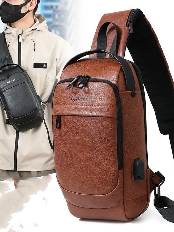 跨境男包高品质时尚PU胸包2024新款商务休闲斜挎包批发