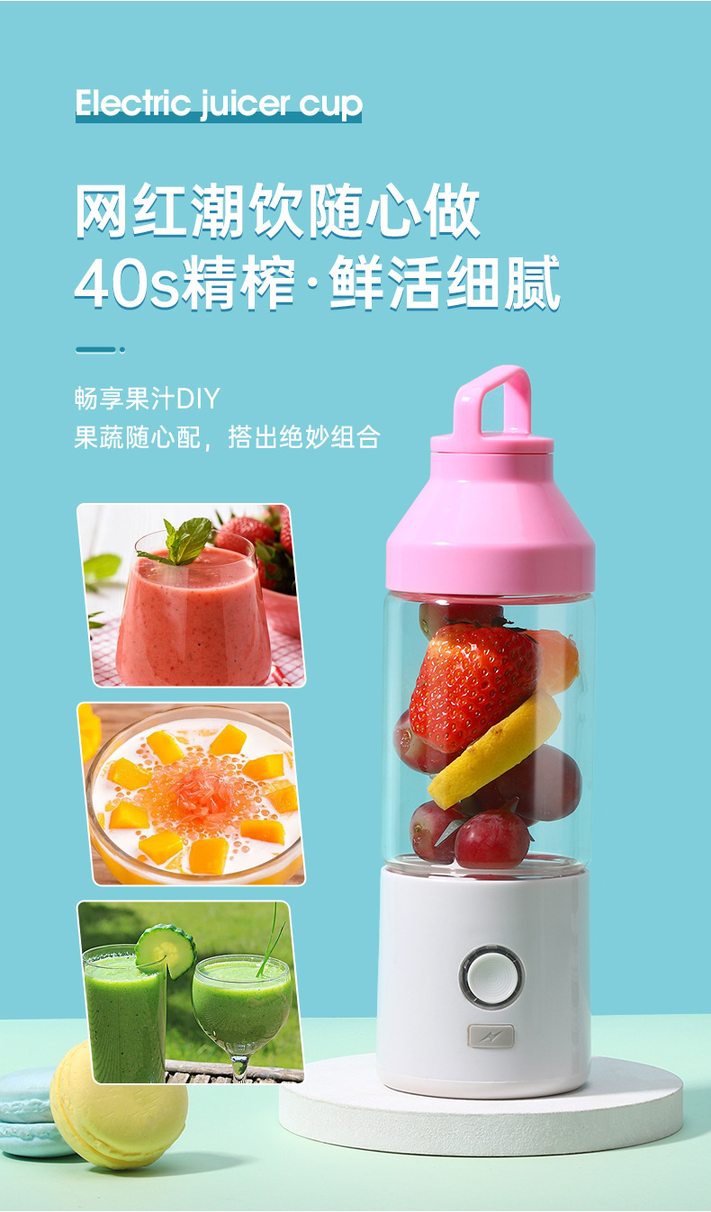 家用多功能果汁机小型便携式无线充电果蔬搅拌机随行榨汁杯送礼品