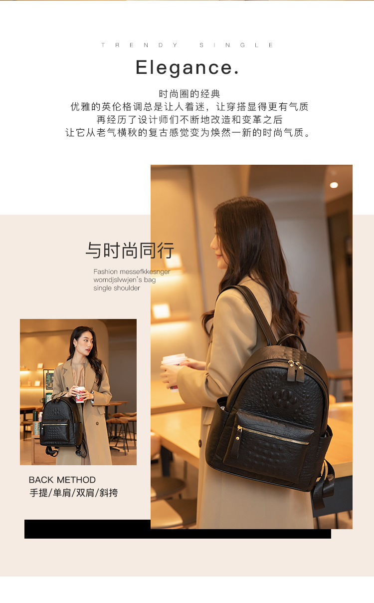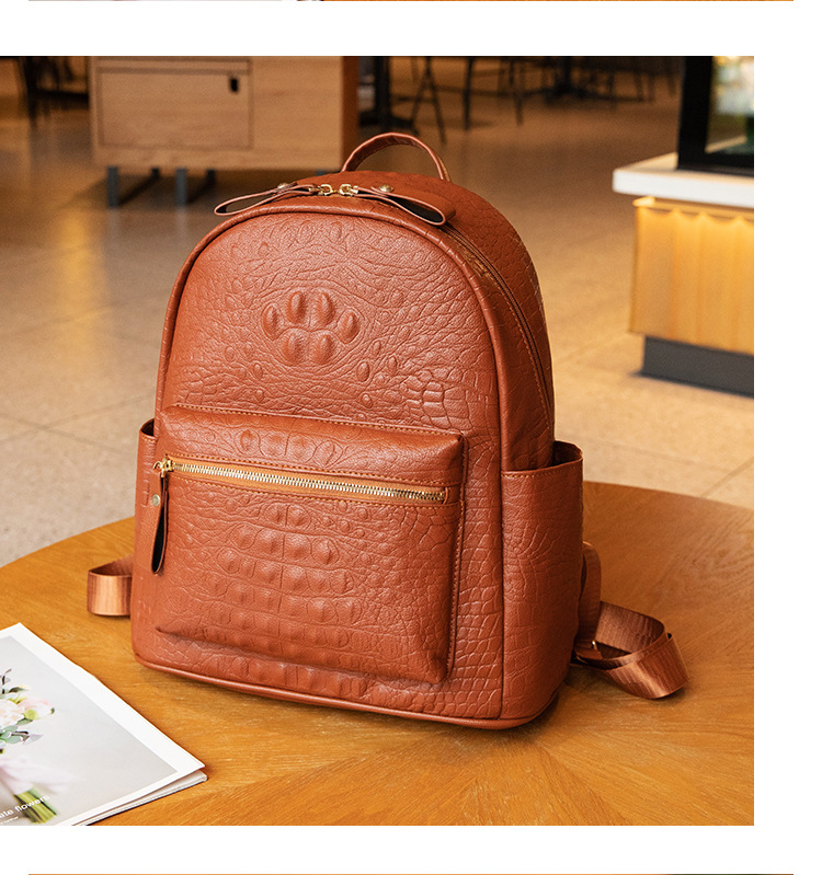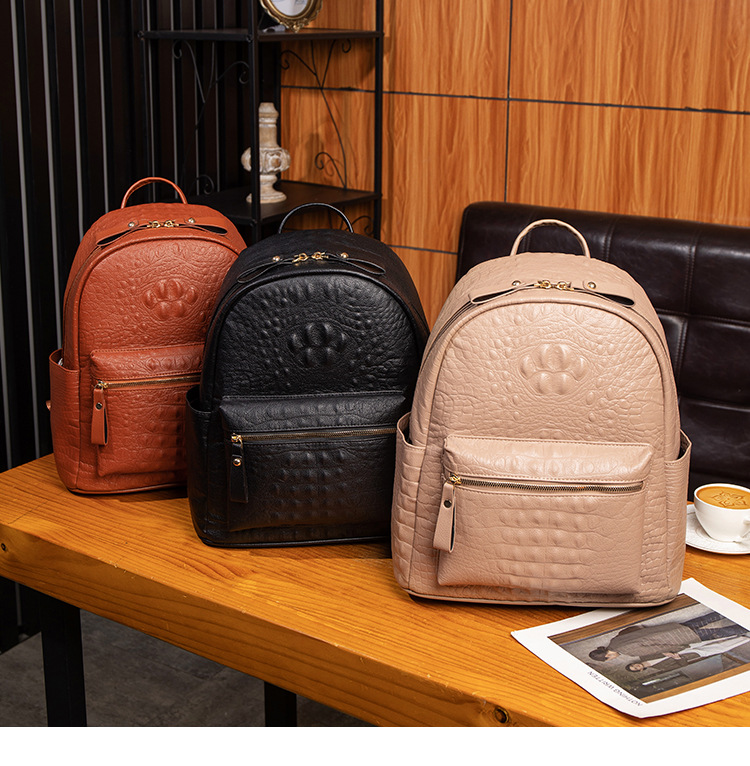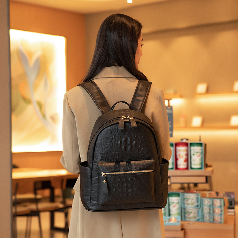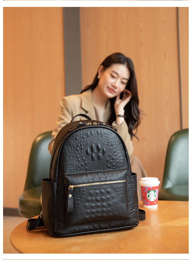英伦学院风双肩包港风通勤鳄鱼纹双肩包大学生书包大容量旅行背包