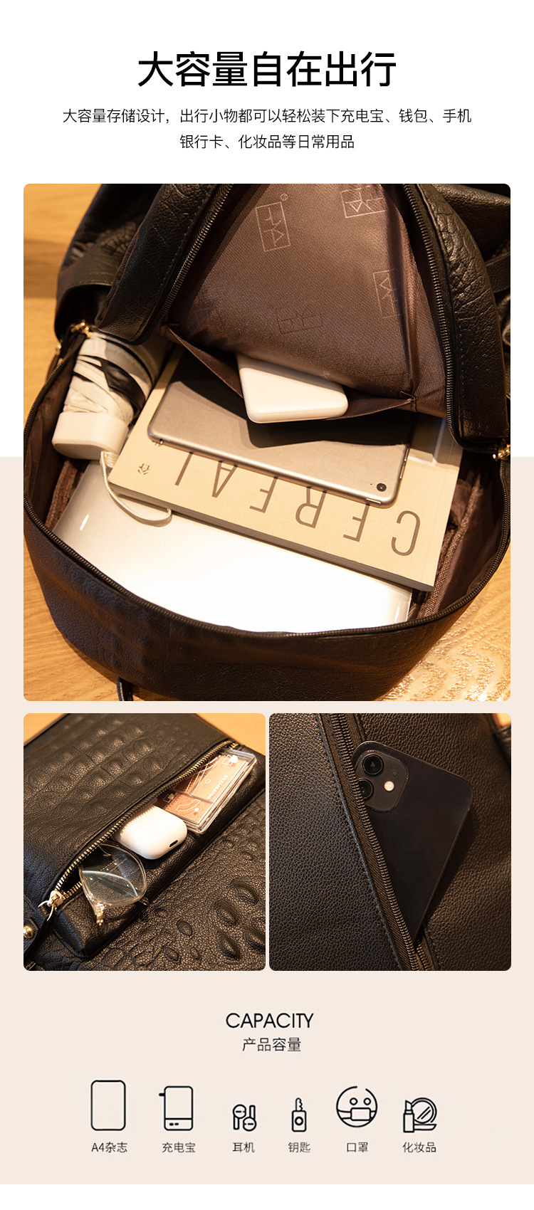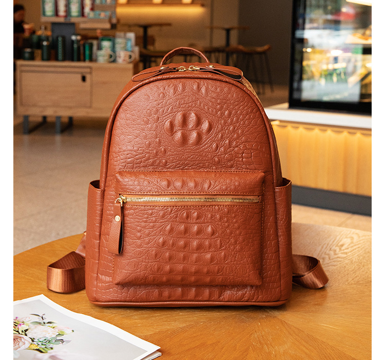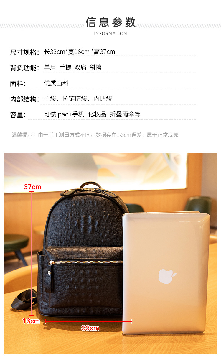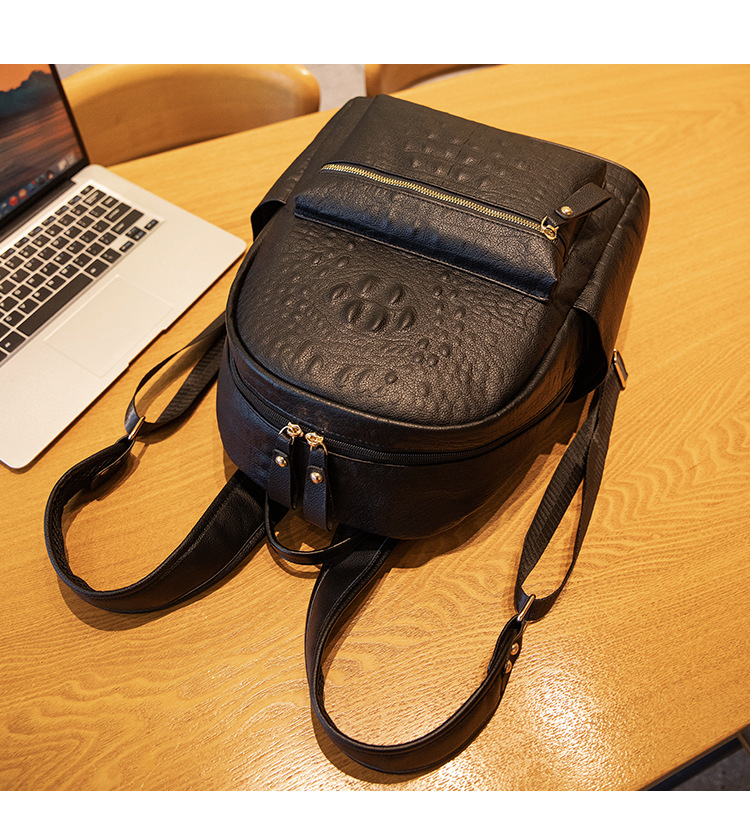 英伦学院风双肩包港风通勤鳄鱼纹双肩包大学生书包大容量旅行背包