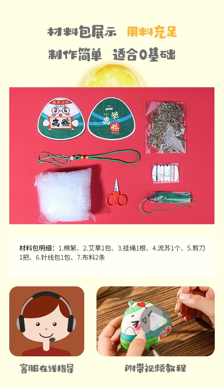 端午节卡通粽子香包香囊驱蚊艾草手工diy材料包随身挂饰高考礼物
