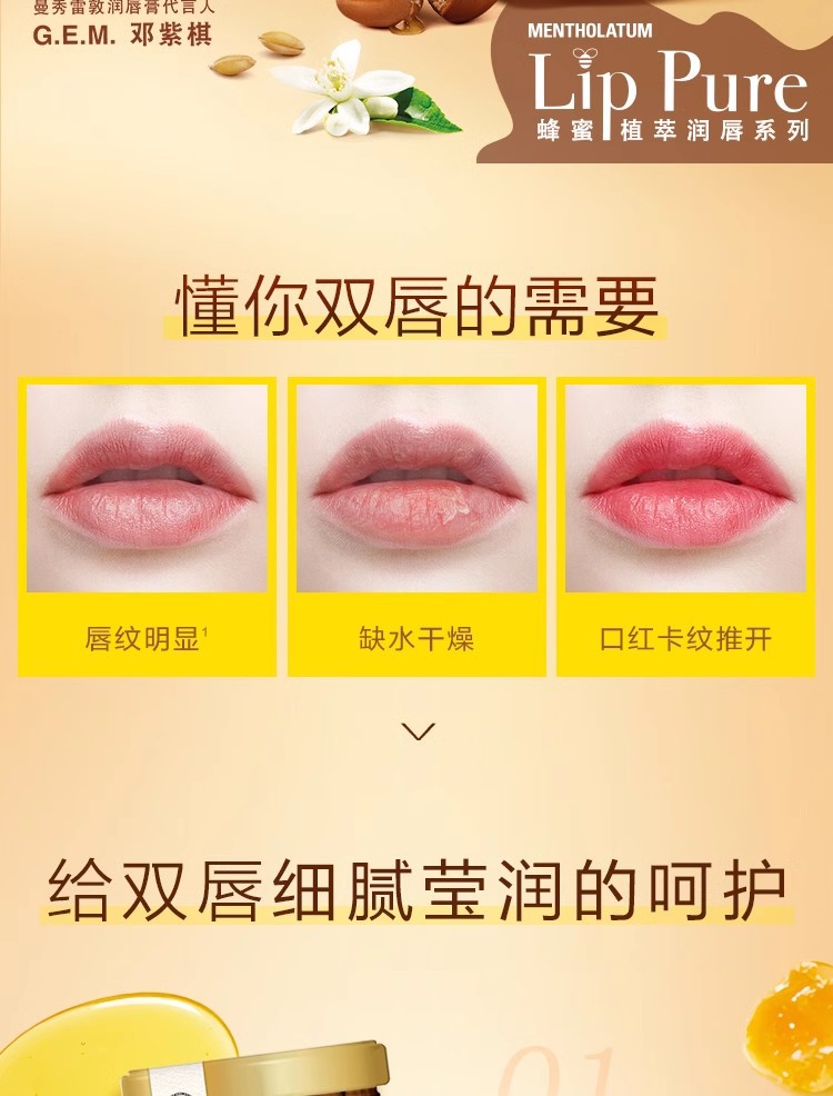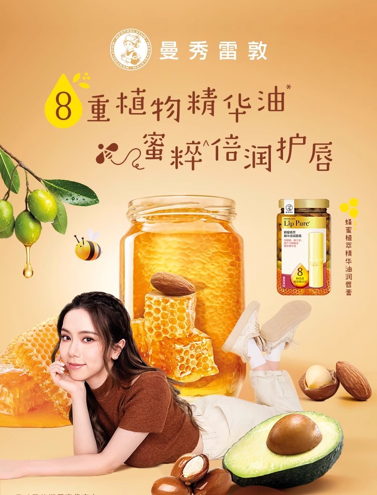 曼秀雷敦蜂蜜植萃润唇膏秋冬保湿滋润补水无色男女士防干裂护唇