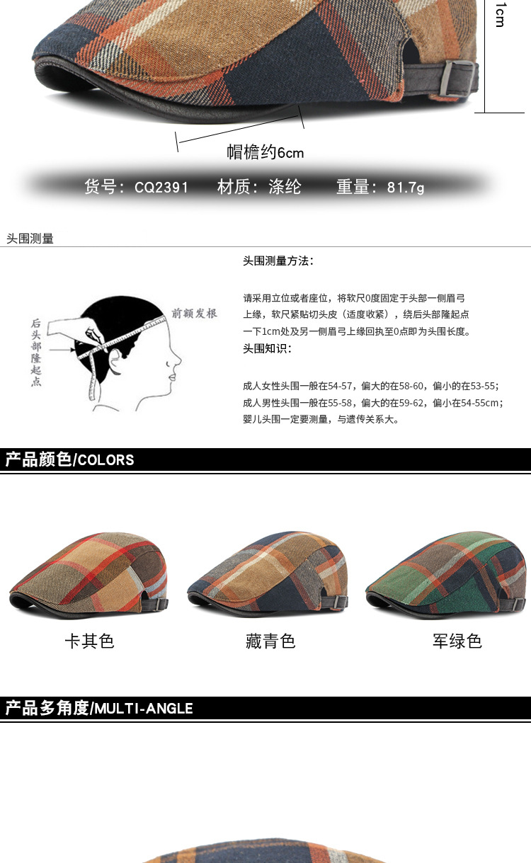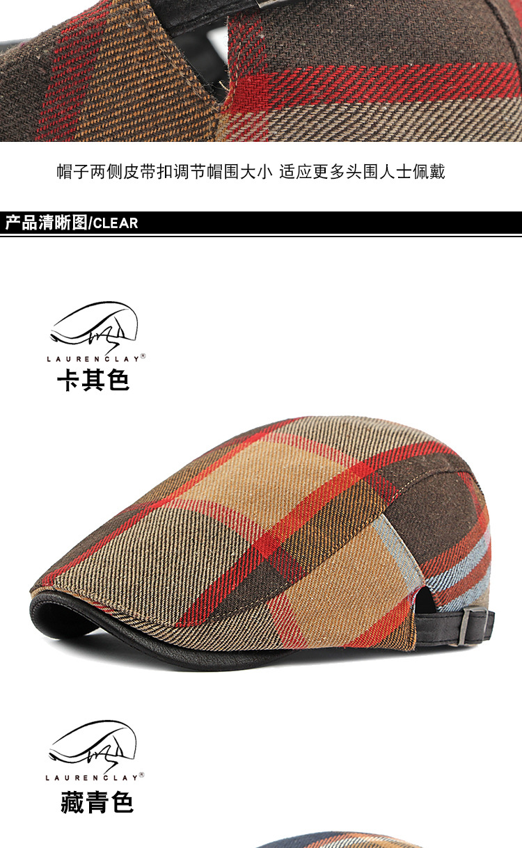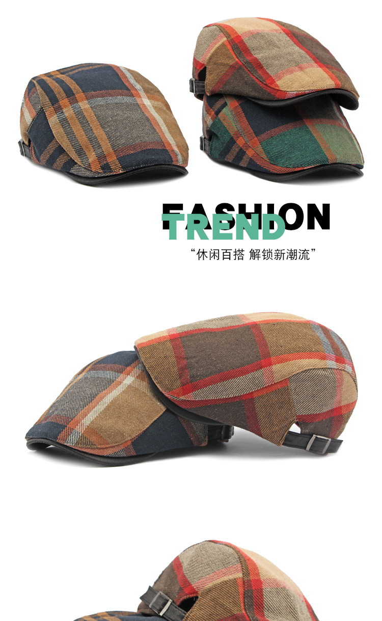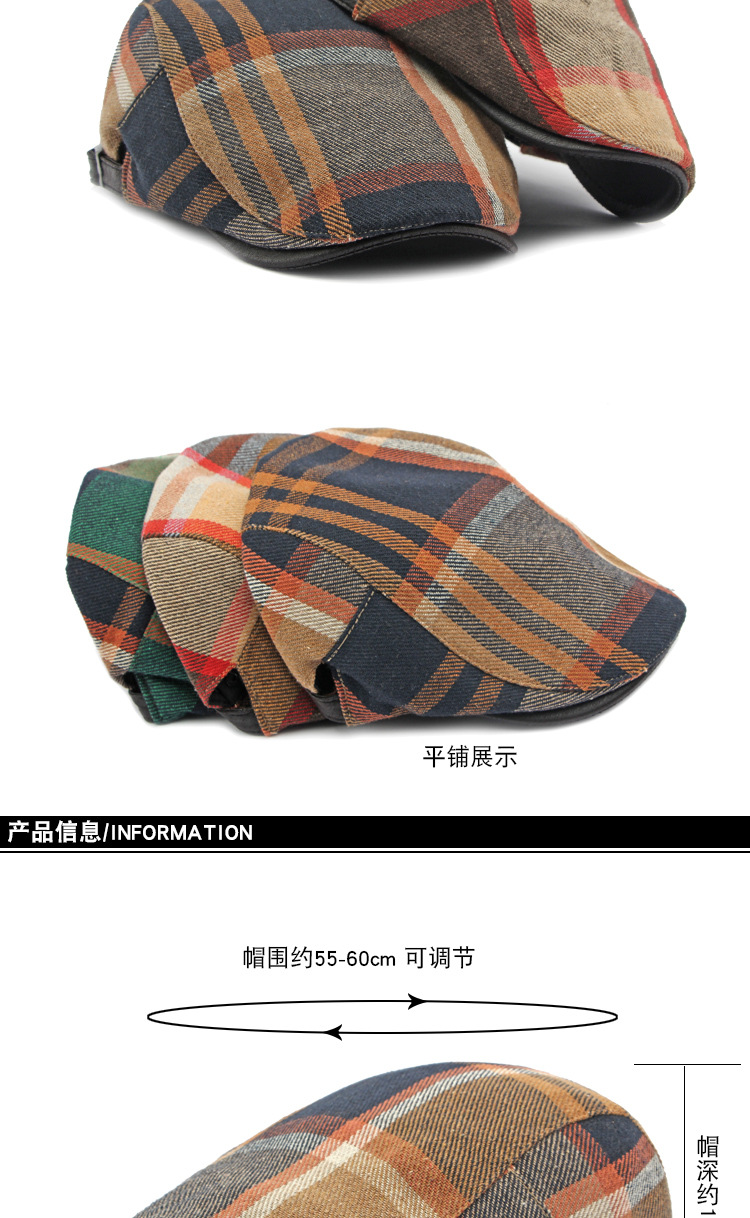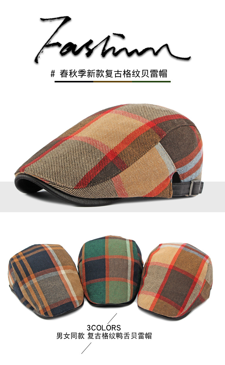 男士鸭舌帽2023新款帽子女春秋季英伦复古格纹贝雷帽休闲前进帽潮