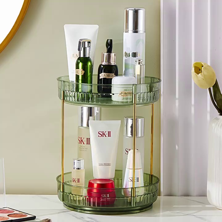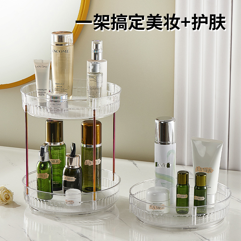 家用厨房旋转小圆盘化妆品轻奢收纳盒梳妆台护肤品桌面收纳架批发