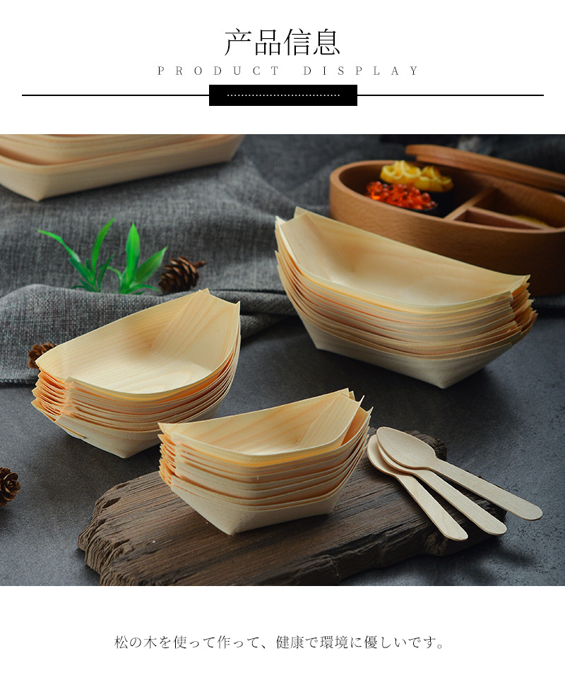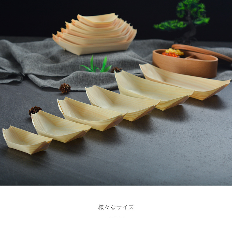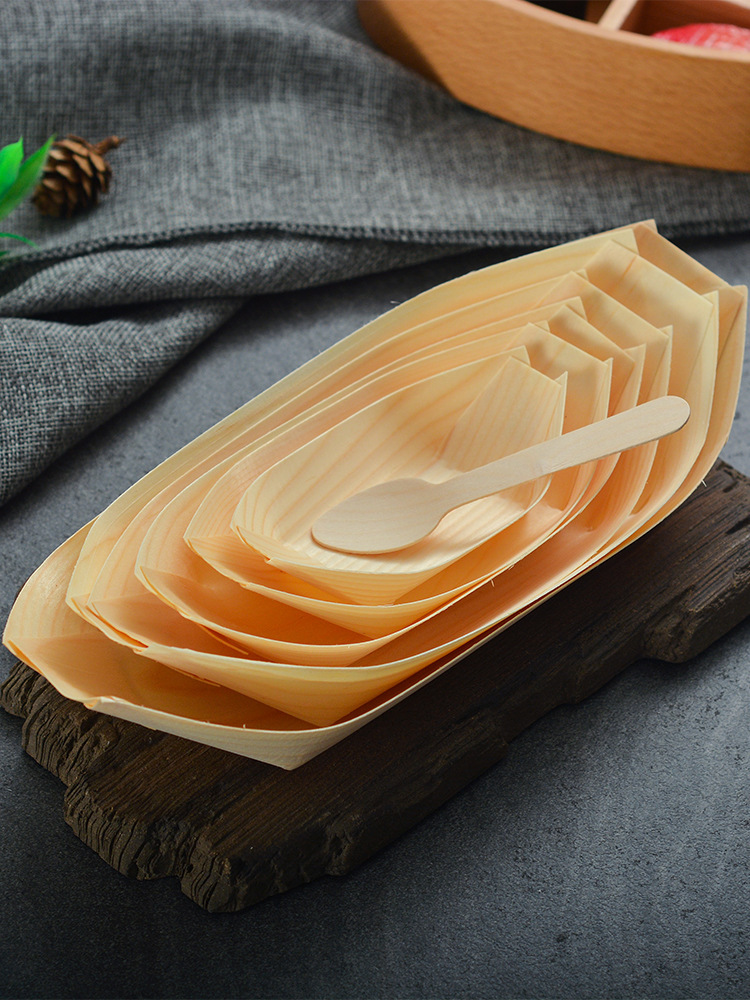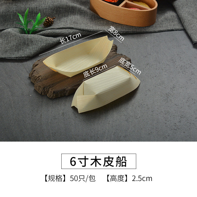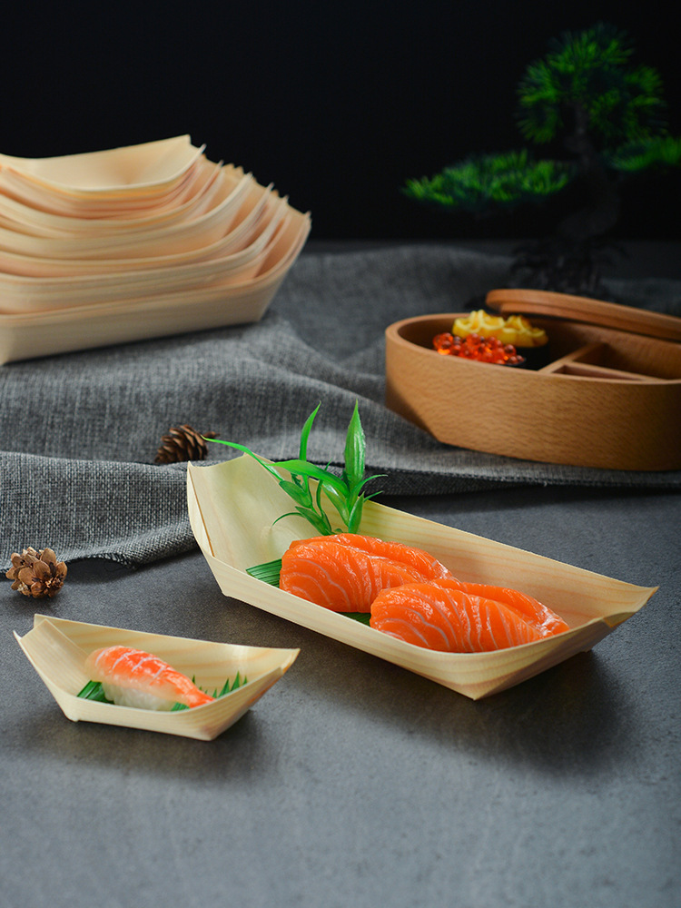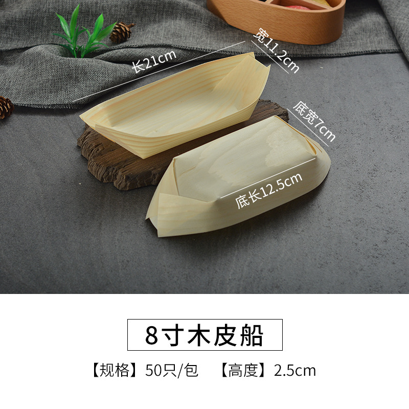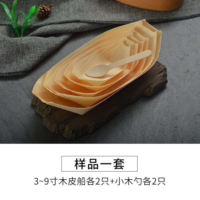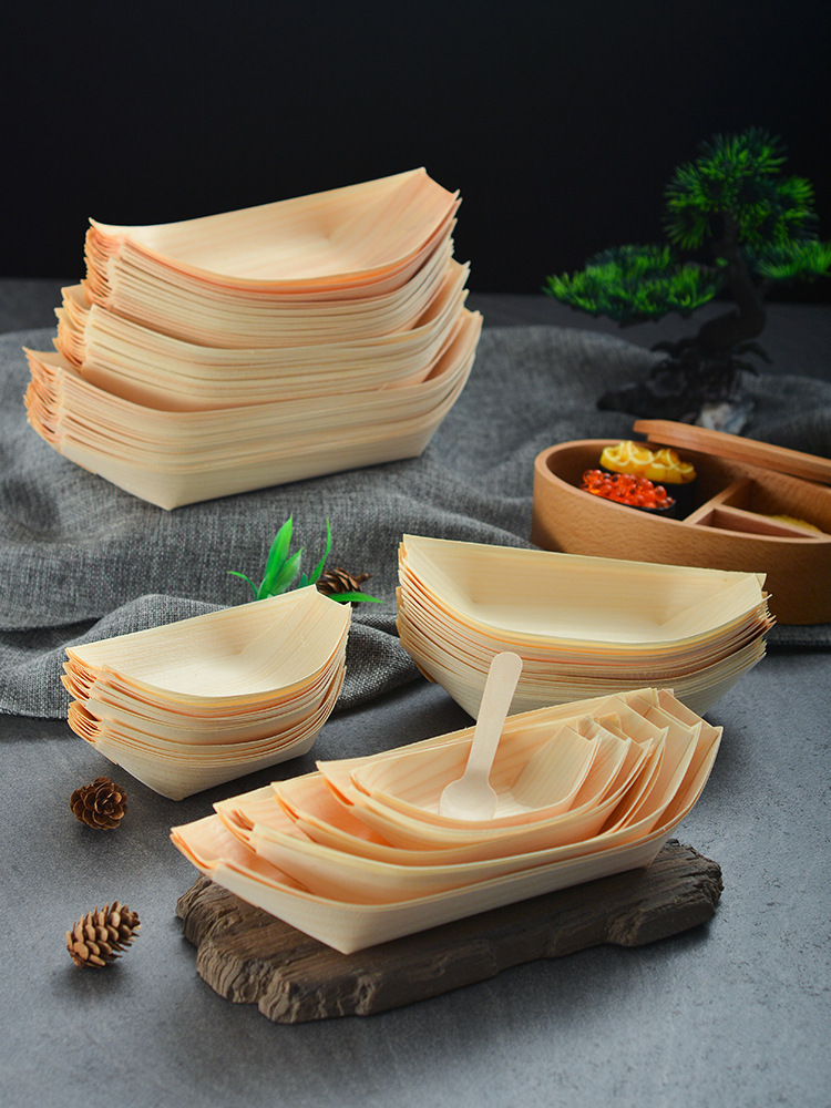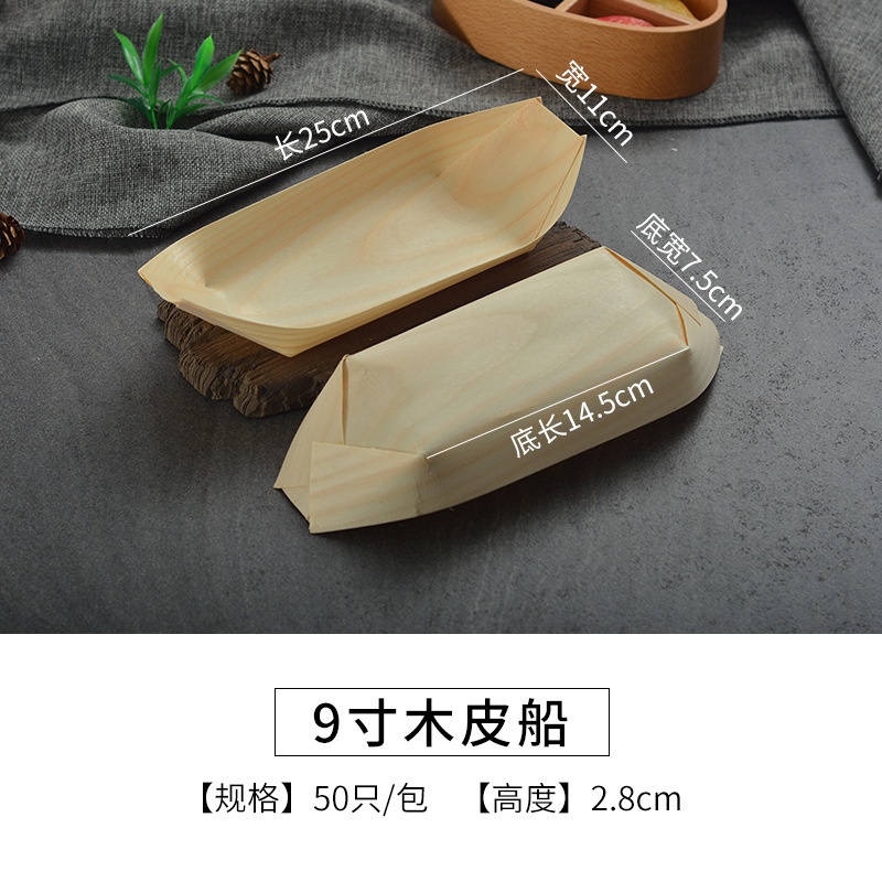 一次性纸船盒木皮船日式小船水信玄饼船寿司盒木舟船形点心打包盒