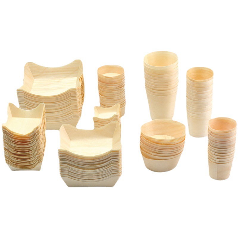 一次性木皮打包盒自助餐盘装饰盘点缀围边意境菜盘装饰餐具