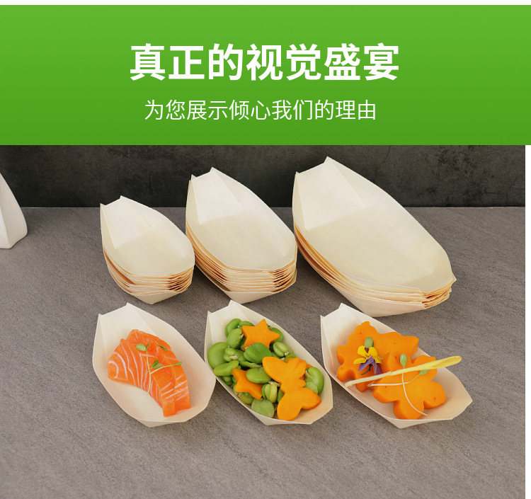 创意冷菜摆盘装饰船形盘子木皮小船寿司刺身凉菜餐具盘饰点缀围边