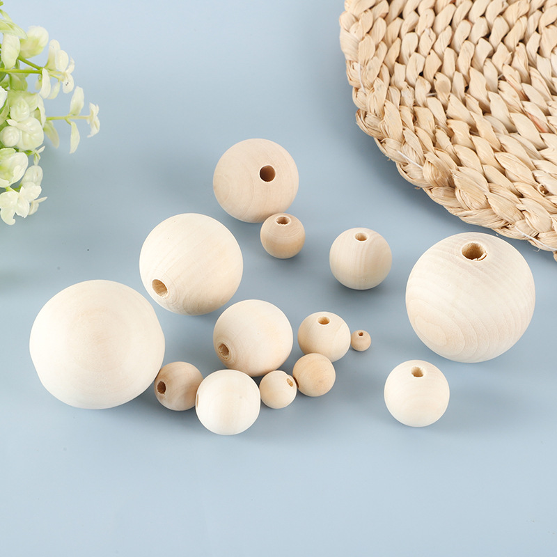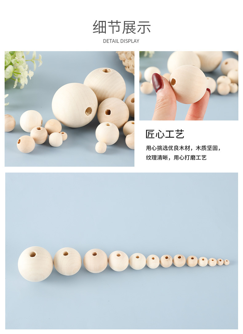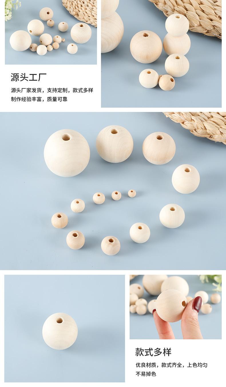 带孔木珠6-50mm手工串珠原木散珠荷木圆珠diy荷木饰品配件批发