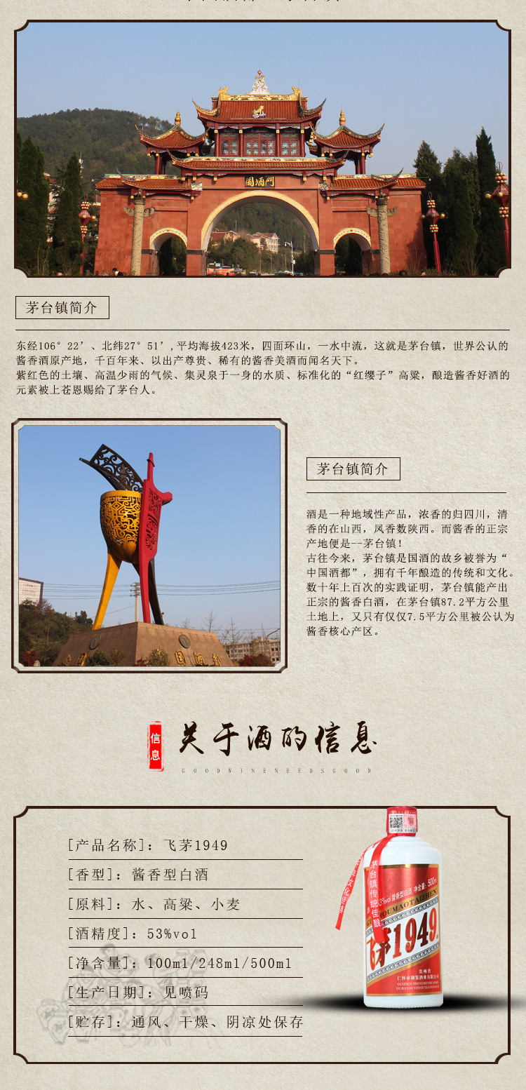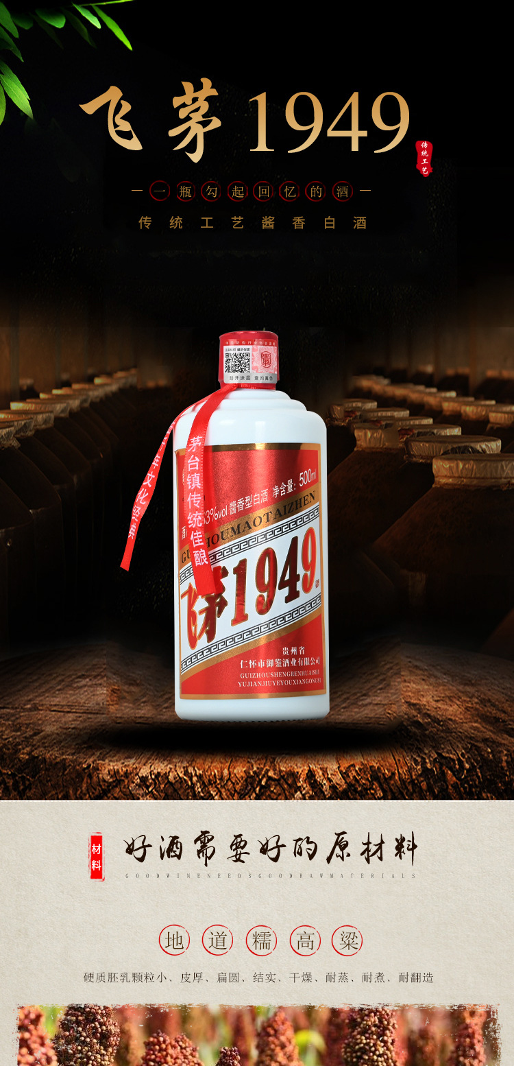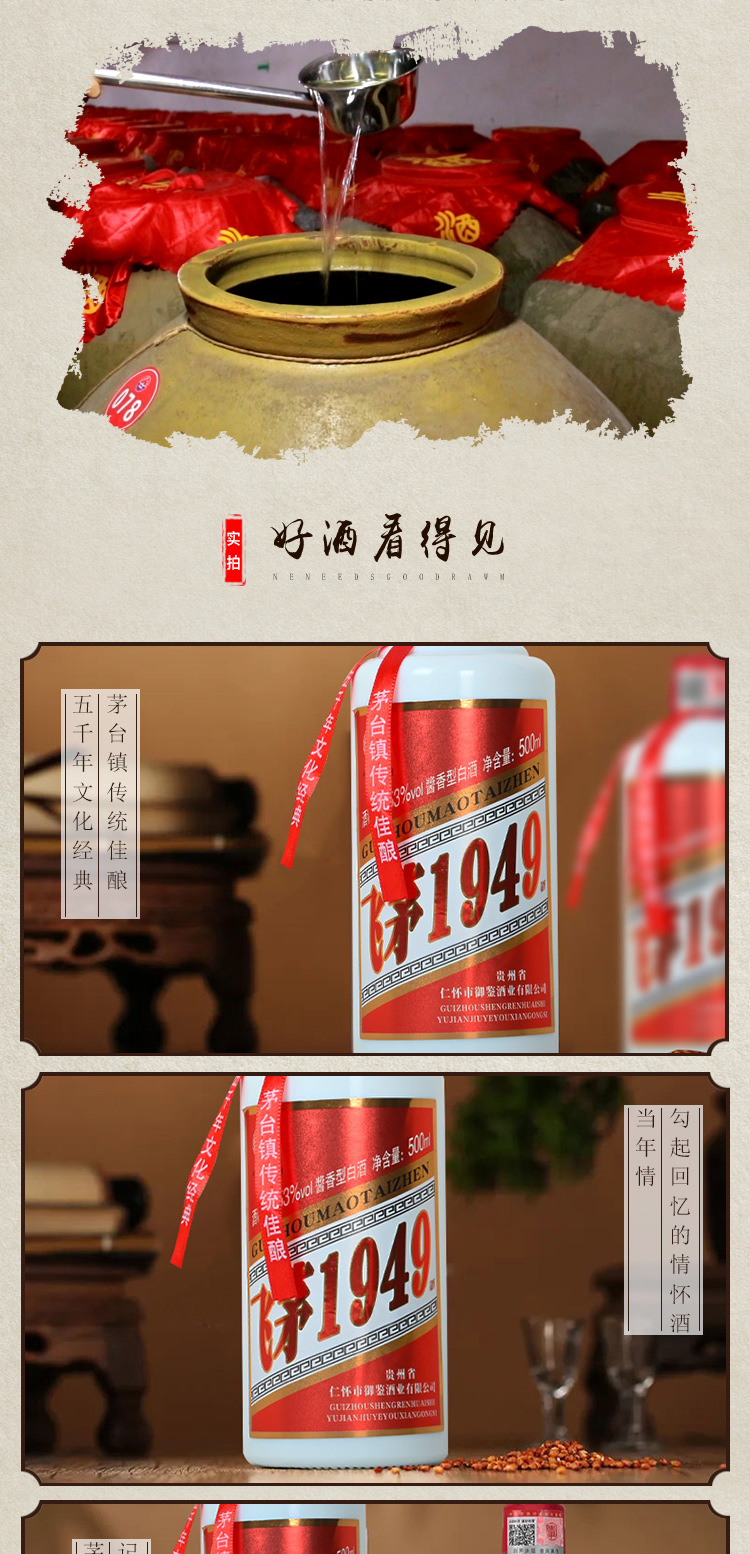 飞茅1949酒酱香型粮食白酒整箱裸瓶装酒水批发53度酒厂直发酒水