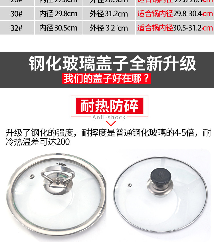 锅盖钢化玻璃锅盖加厚家用1430cm防爆耐高温奶锅蒸锅炒菜锅盖子