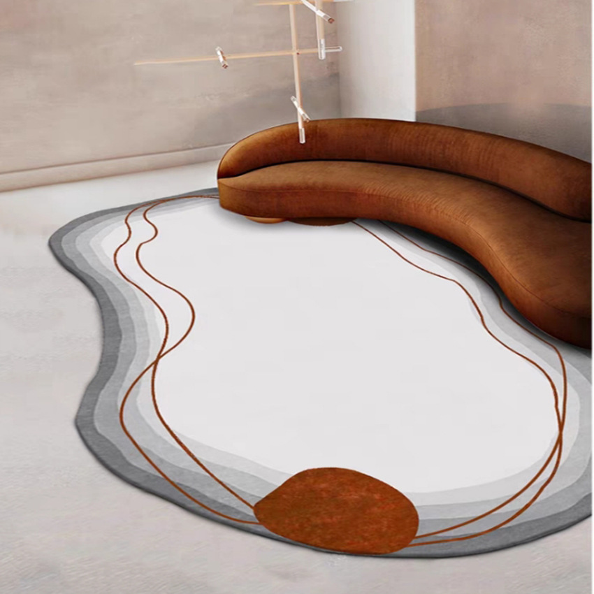 加绒加厚家用客厅地毯 不规则异形满铺地毯 时尚日式侘寂简约地垫