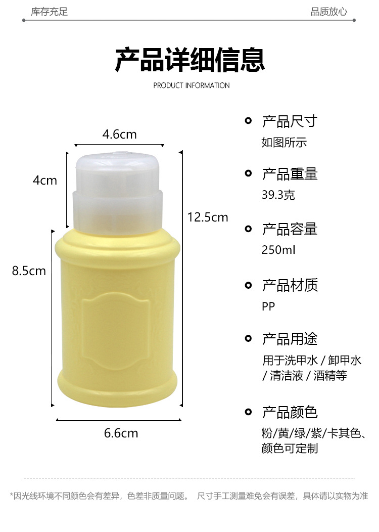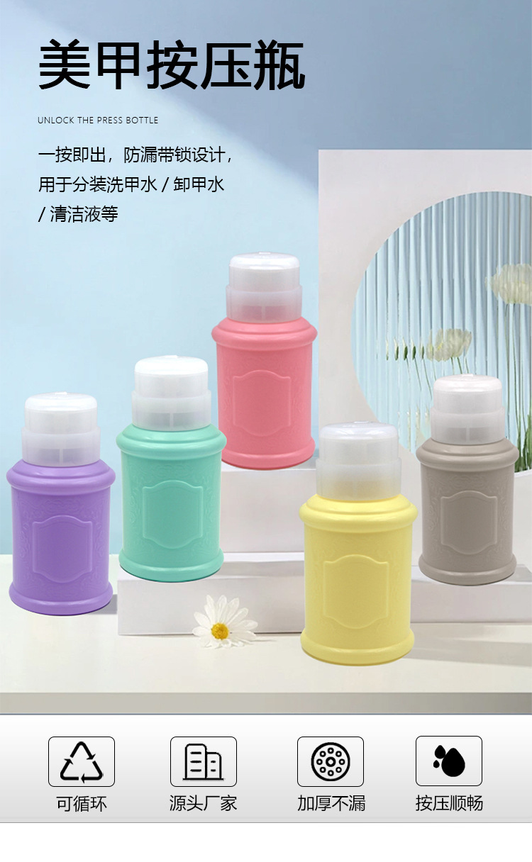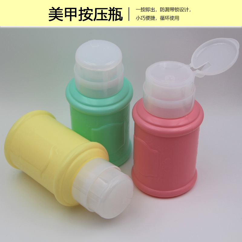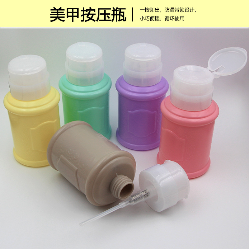 彩色压瓶2美甲压瓶带锁大罐分装卸甲水酒精按压空瓶马卡龙色压瓶